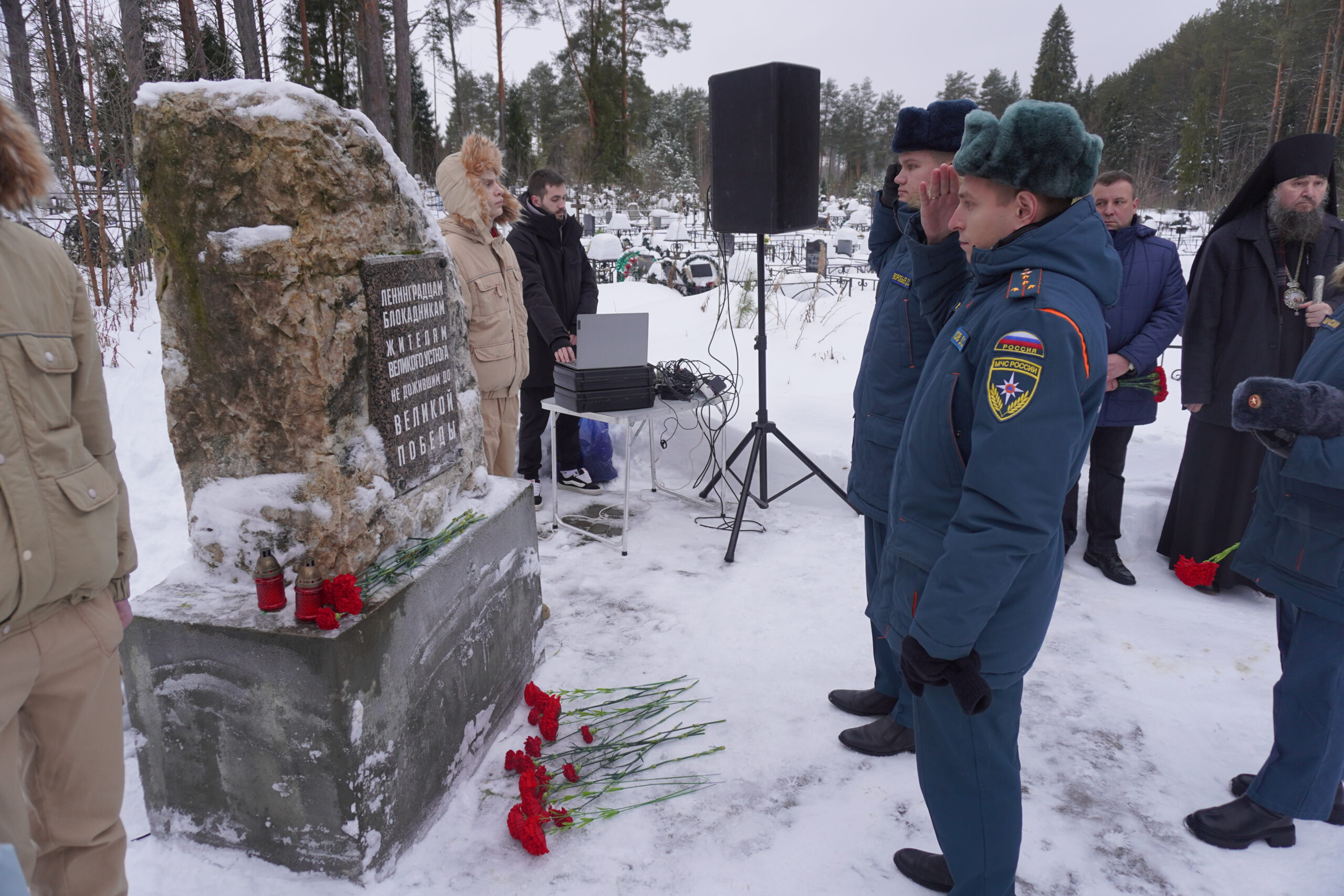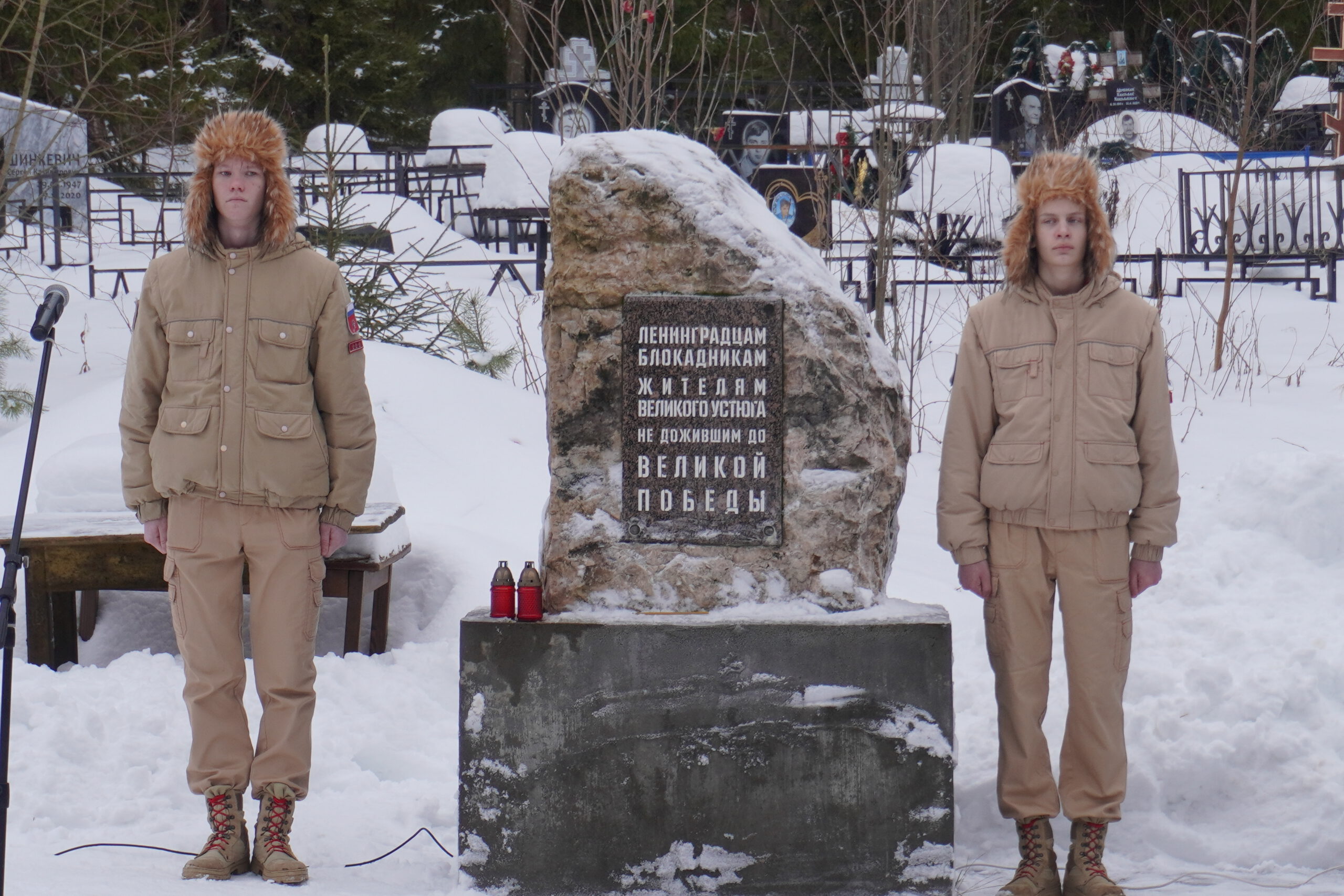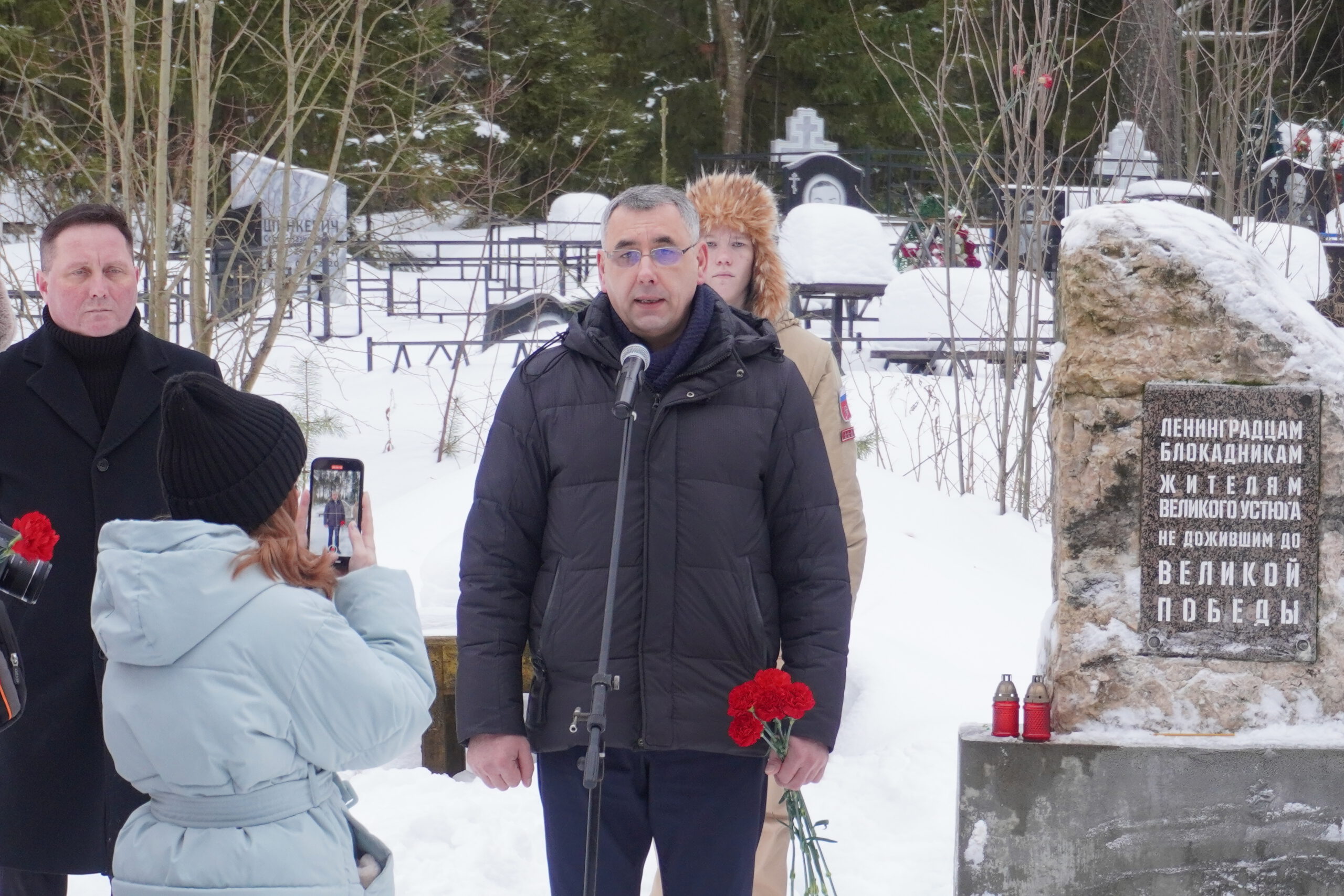 27 января в России в день снятия блокады Ленинграда вспоминают всех жертв этой катастрофы. Во время Великой Отечественной Войны 872 дня с 1941 по 1944 год жители Ленинграда боролись за свои жизни. Многие из них погибли от голода, холода и артобстрелов, другие были эвакуированы и расселены по всей России. Часть блокадников оказалась и в Великом Устюге, но, к сожалению, не все из эвакуированных дожили до Победы и смогли вернуться домой в Ленинград. В их честь на воинском кладбище Великого Устюга был установлен мемориал где ежегодно проходят памятные мероприятия. В понедельник, 27 января у монумента почтить память жертв блокады Ленинграда собрались представители местных властей, молодёжных и воинских организаций. Великоустюжскую епархию представил епископ Великоустюжский и Тотемский Фотий. У памятника архиерей произнёс слово и вместе с собравшимися возложил к его подножию цветы.