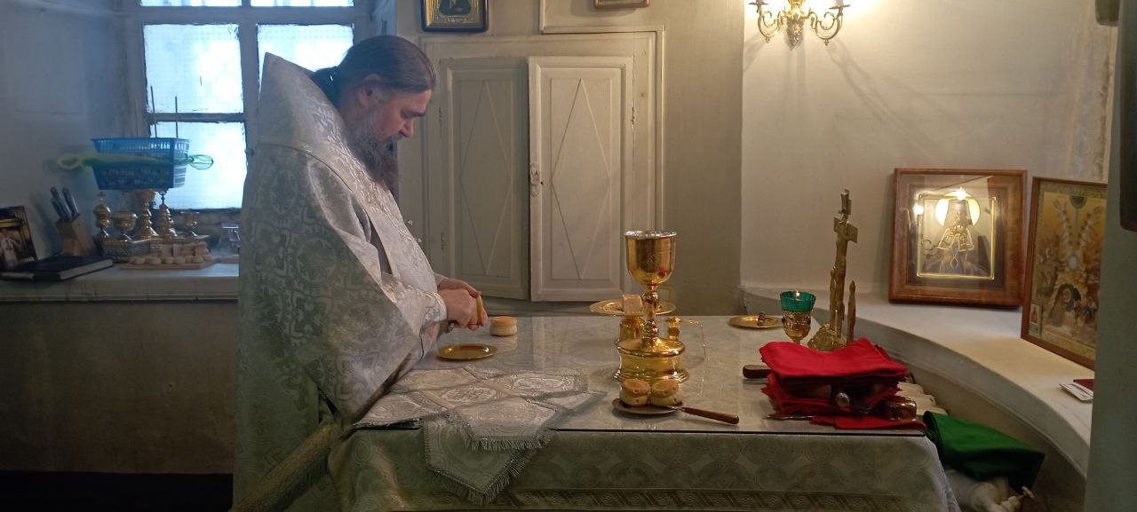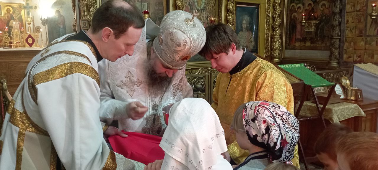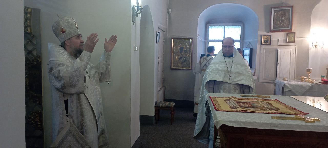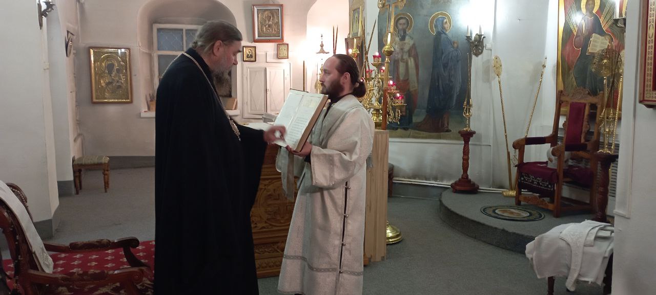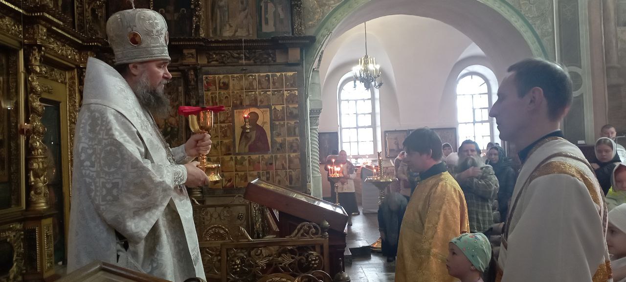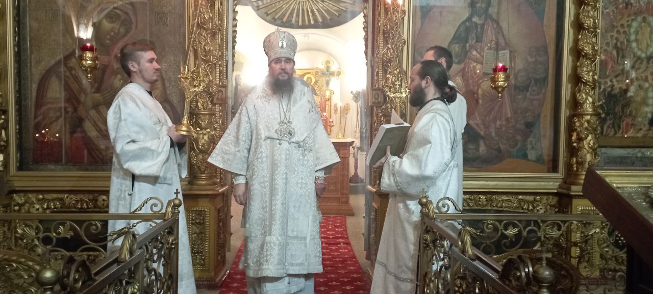 Владыке сослужили: ключарь Прокопьевского собора иерей Вячеслав Бураков, а также клирик Прокопьевского собора иерей Андрей Игнатьев.