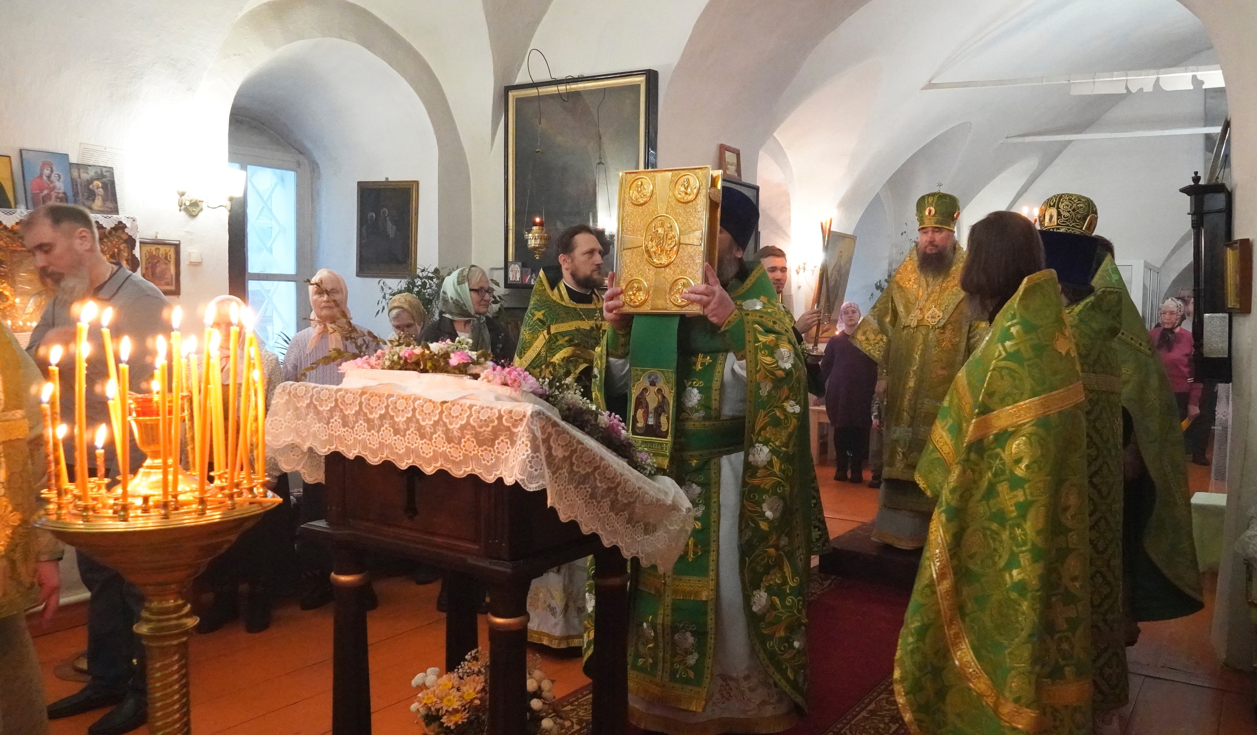 По окончании Литургии владыка Фотий вознес молитву небесному покровителю града Тотьмы — святому блаженному Максиму Христа ради юродивому. Архипастырь, духовенство и молящиеся пропели величание святому праведному Максиму.