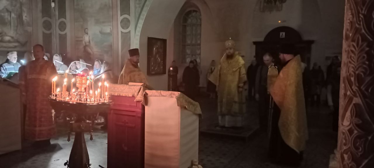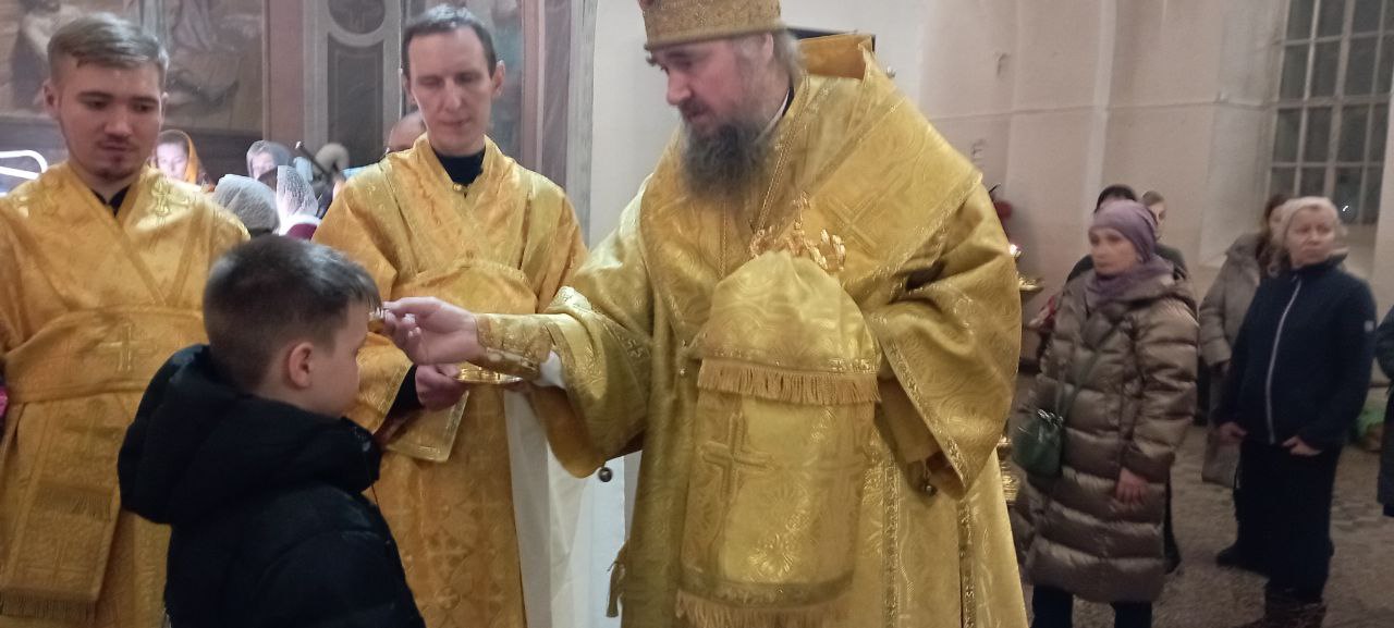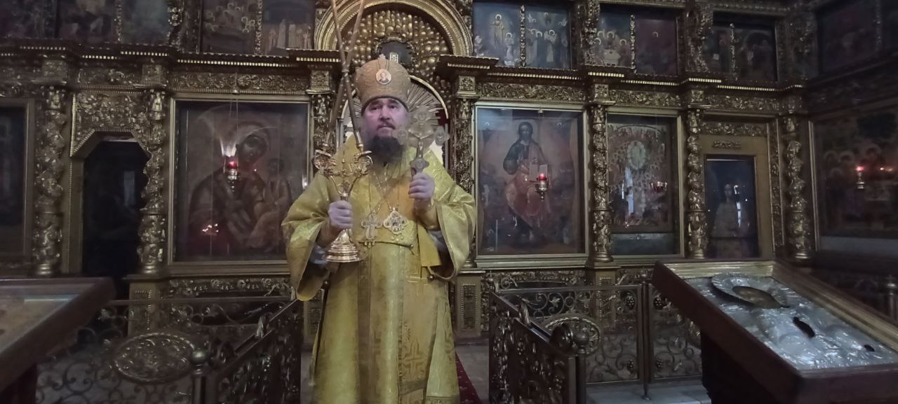 За Литургией Преосвященный Фотий произнёс проповедь: «Во имя Отца и Сына и Святаго Духа! Возлюбленные отцы, братья и сестры, начались подготовительные недели к Великому Посту. Эта неделя именуется Неделей о мытаре и фарисее. Вчера на Всенощном бдении впервые в этом году прозвучало песнопение о покаянии: «Покаяние отверзи мне двери Жизнодавче…». За три недели до Великого Поста Святая Церковь подготавливает нас к этому подвигу постному. В эти недели человеку даются ориентиры, как проводить Великий Пост. Сегодня речь шла о молитве в храме и дома, такой молитве, которая должна быть в нашей жизни. Всем понятен смысл этой евангельской притчи, каждый возвышающий себя смирится, а всякий смиряющийся возвысится. Очень ценная и важная добродетель — смирение. Проявлять терпение к ближнему непросто, но именно через это Господь даёт человеку свою божественную силу. Сегодня особый день для верующих — собор новомучеников и исповедников Церкви Русской. Мы совершаем поминовение всех усопших, пострадавших в годину гонений за веру Христову. XX век стал особо трагичным для России, потерявшей миллионы своих сыновей и дочерей не только от рук внешних врагов, но и от собственных гонителей-богоборцев. Многие прошли ссылки, находились в заключениях и в тюрьмах, пострадало немало военных, учёных, интеллигенции, неисчислимое множество православных мирян, монахов, священников, архиереев, единственной виной которых оказалась твердая вера в Бога. Вспоминая об этом мы внутренне содрогаемся от тех событий, происходивших на нашей земле. Многие священнослужители Церкви прославлены, например Патриарх Московский и всея Руси святитель Тихон, священномученик и исповедник. Этот человек стоял у истоков восстановления патриаршества на Руси и руководил Русской Православной Церковью в революционное время. Своим подвигом он чётко показал, чем живёт святая Церковь, что самое важное в жизни, что мы должны сохранить. А это наша вера и традиции Русской Православной Церкви. Это император Николай II и члены его семьи, претерпевшие истязания за веру, и невинно убиенные в Екатеринбурге в 1918 году. Это патриарший местоблюститель святитель митрополит Петр (Полянский), после смерти Патриарха Тихона возглавивший Русскую Церковь, и умерший в тюрьме. В бытность свою епископом Югорским мне удалось побывать в суровом северном крае — Обской Губе, куда был сослан митрополит Пётр. Священномученик святитель Серафим (Чичагов), митрополит Петербуржский, и многие многие другие, кто скончался в гонениях и насильственной смертью. Многие из них были прославлены на юбилейном Поместном Соборе в 2000 году. Это прославление открыло миру величие их подвига. Но осталось много православных христиан, пострадавших в годы гонений, чьи имена нам неизвестны, неизвестен их подвиг. Мы никогда не должны забывать о их подвиге, братья и сестры. Наблюдая за происходящим на СВО, мы должны понимать, что наши воины защищают нас в том числе и от того, чтобы снова не начались на Руси гонения за веру, подобные тем, что происходили в революционные годы. Нам важно сохранить веру, потому что Россия без веры не может существовать. Милостью Божьей мы осознаём, какие испытания прошла Святая Русь, но Она выстояла, и выстояла, я уверен, благодаря возрождению Православной веры. Прошли семьдесят с лишним лет безбожия — четыр