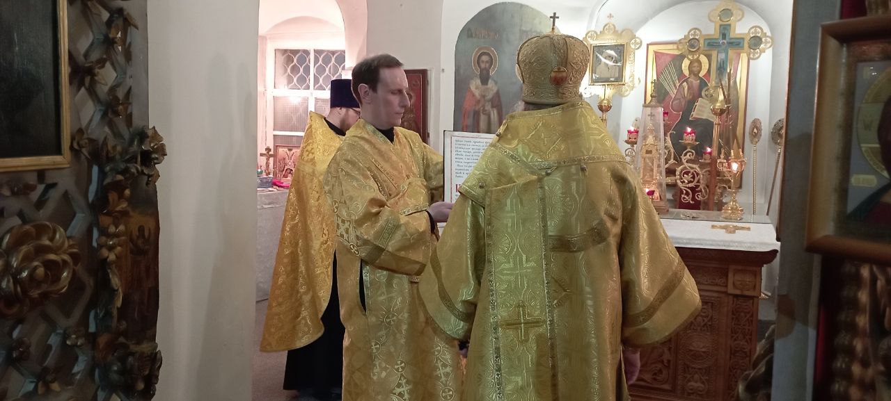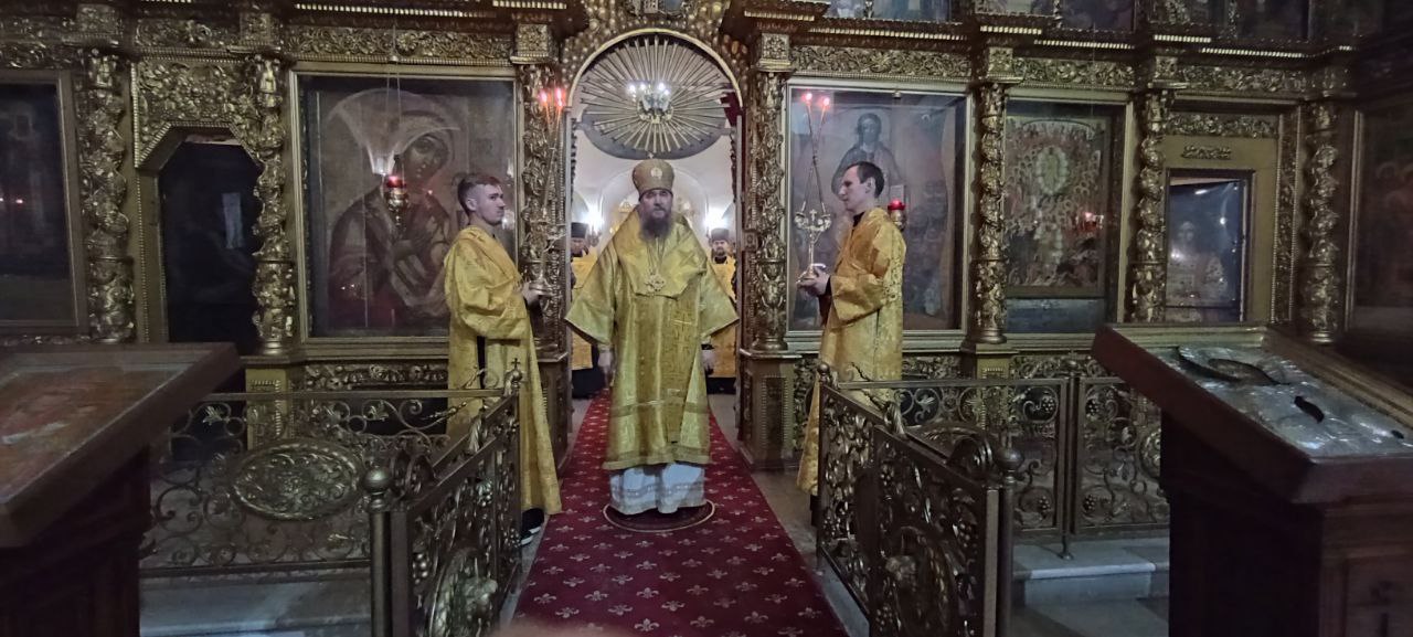 Владыке сослужили: ключарь Прокопьевского собора иерей Вячеслав Бураков, а также клирик Прокопьевского собора иерей Андрей Игнатьев.