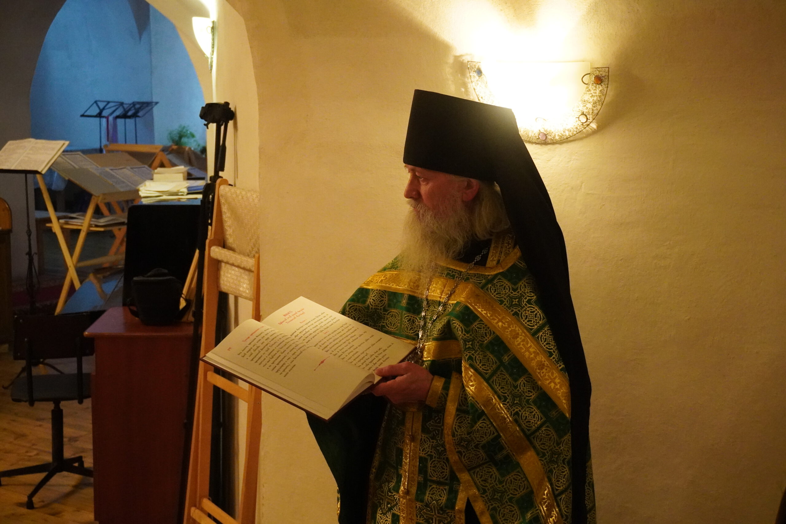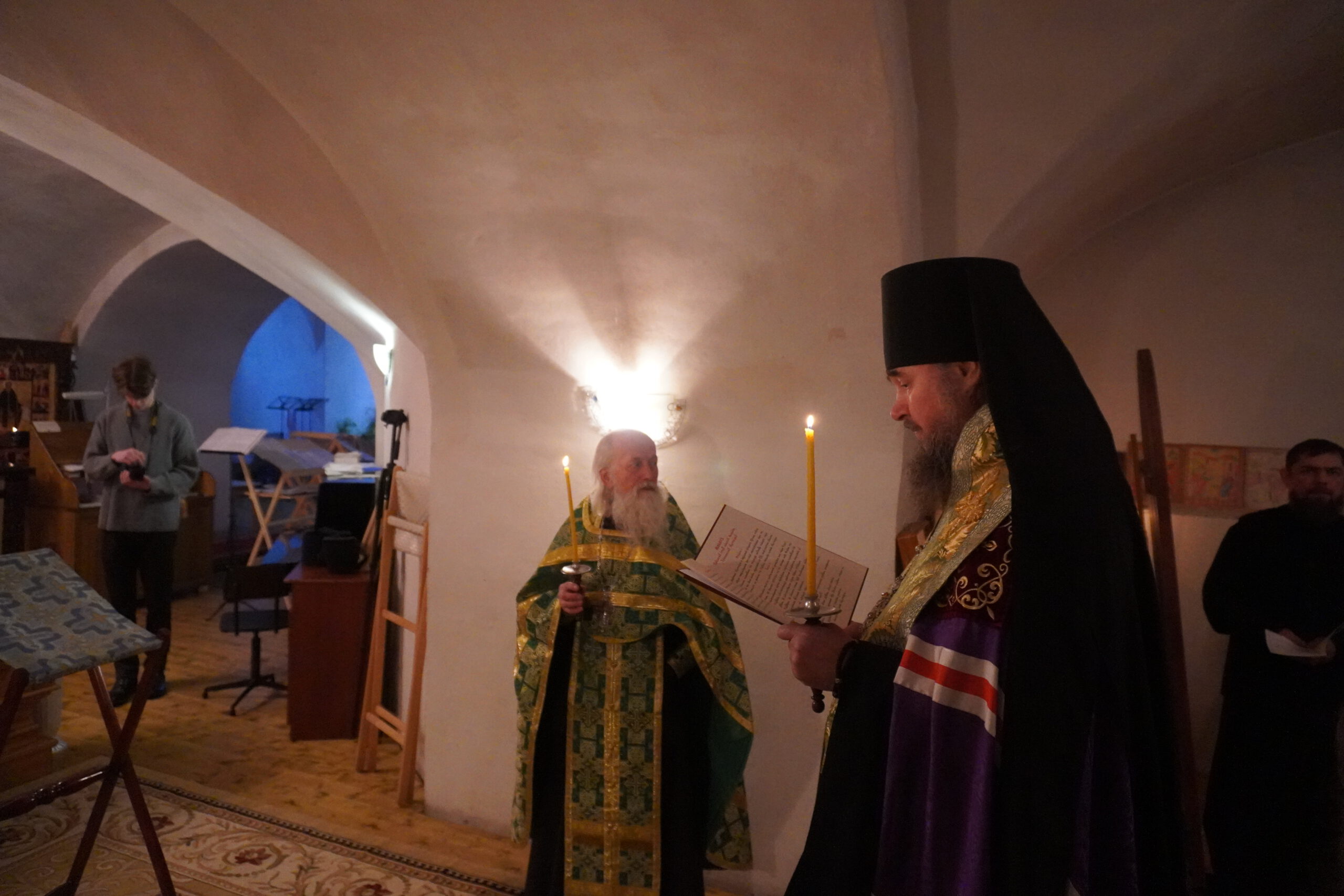 9 февраля епископ Великоустюжский и Тотемский Фотий молился за малой вечерней и возглавил акафистное пение преподобному Феодосию Тотемскому в храме Вознесения Христова в Спасо-Суморином монастыре.