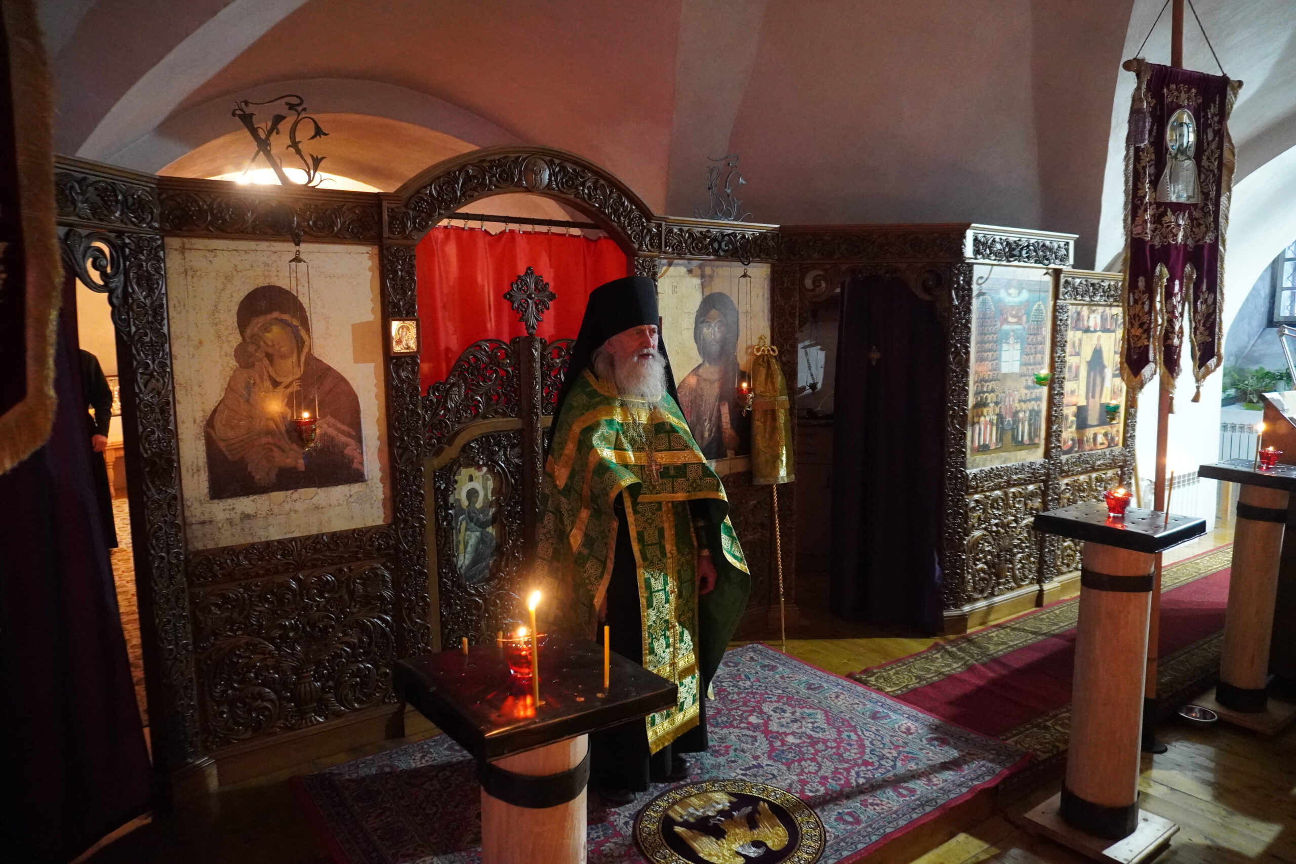 Владыке сослужили: настоятель Спасо-Суморина монастыря иеромонах Феодосий