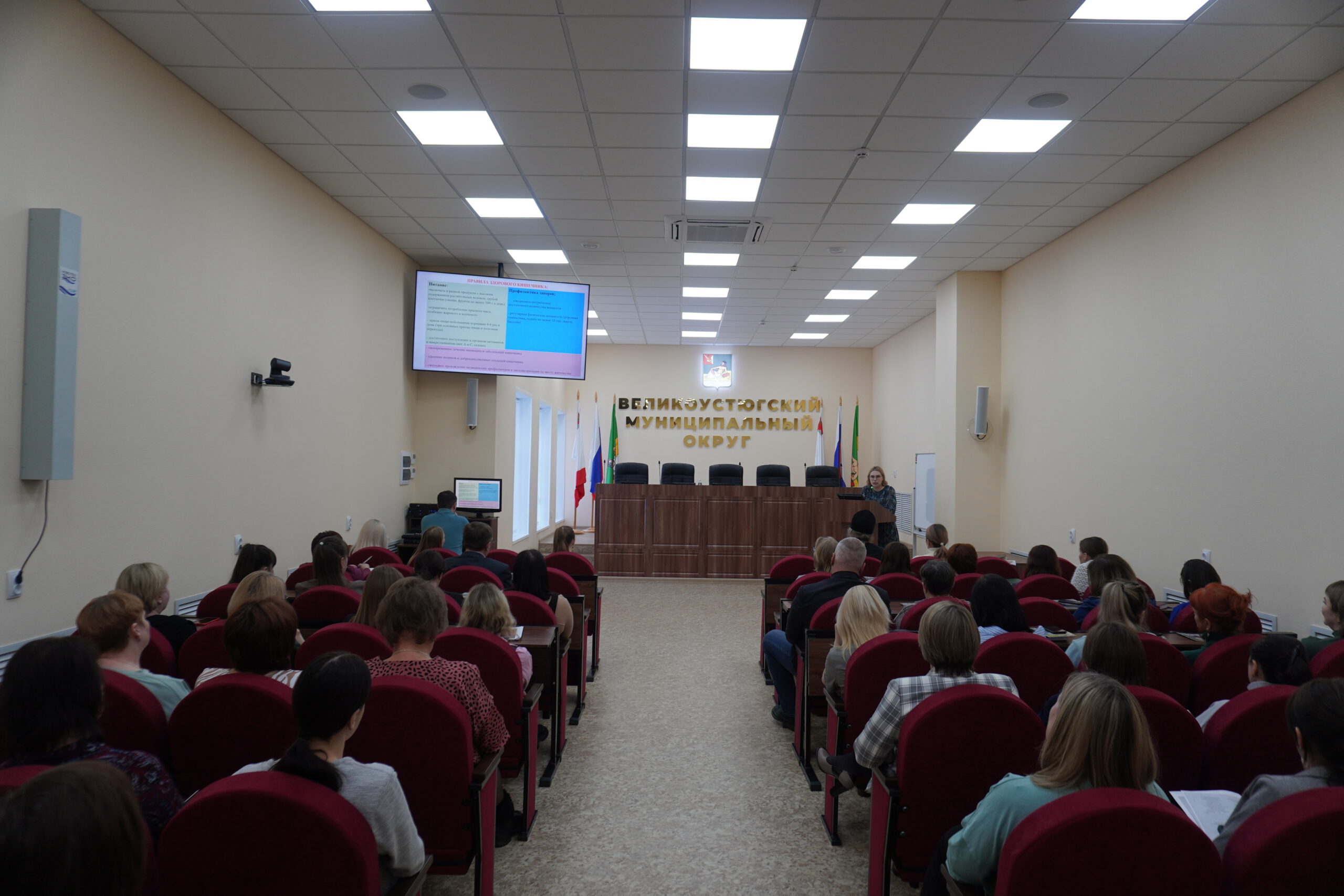 26 февраля в здании окружной администрации было организовано обучение сотрудников организации. Перед служащими выступили: заведующий поликлиникой Елена Петрыгина, с докладом о профилактических осмотрах и диспансеризации, а также епископ Великоустюжский и Тотемский Фотий с докладом о значении духовной жизни в деле общественного служения.