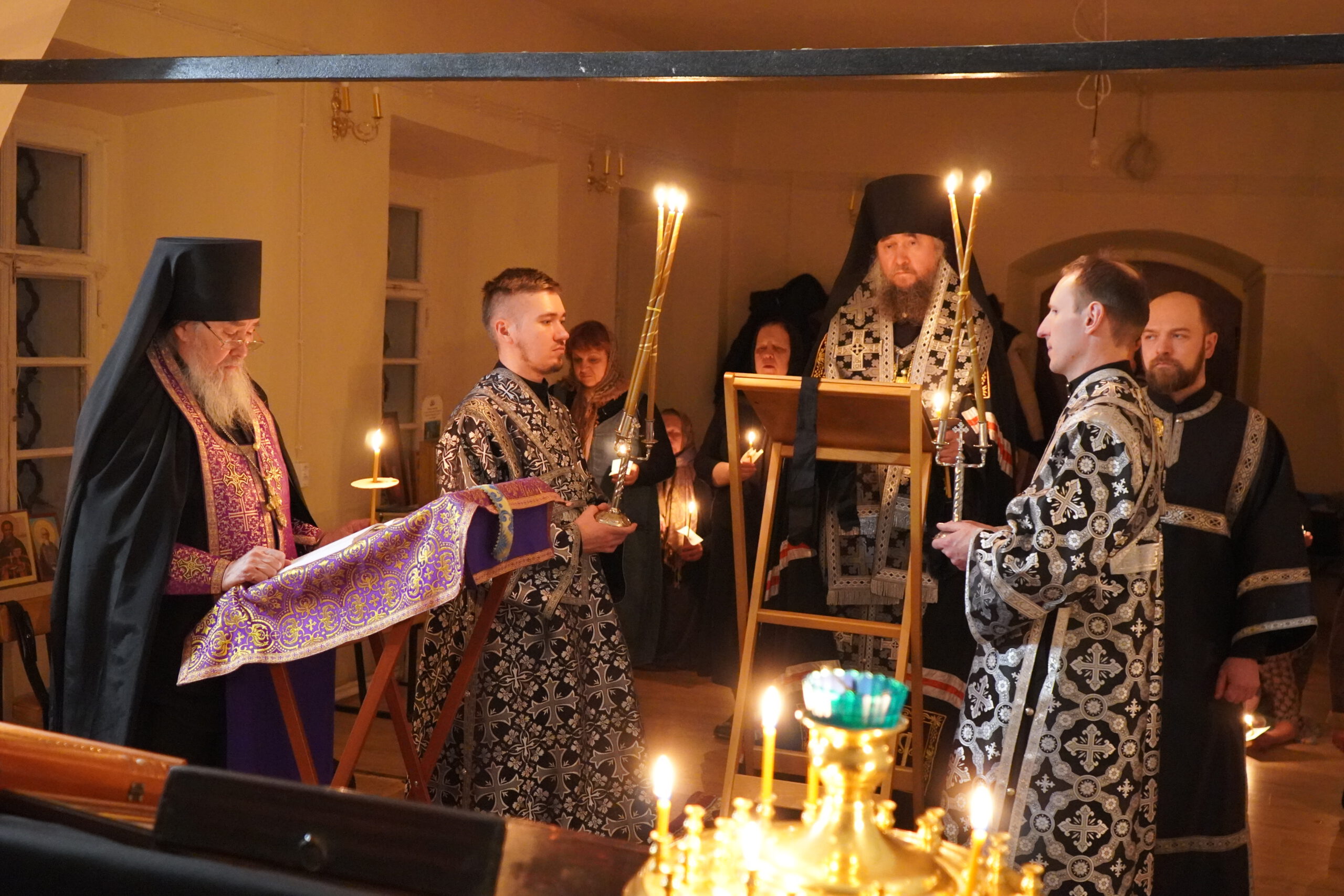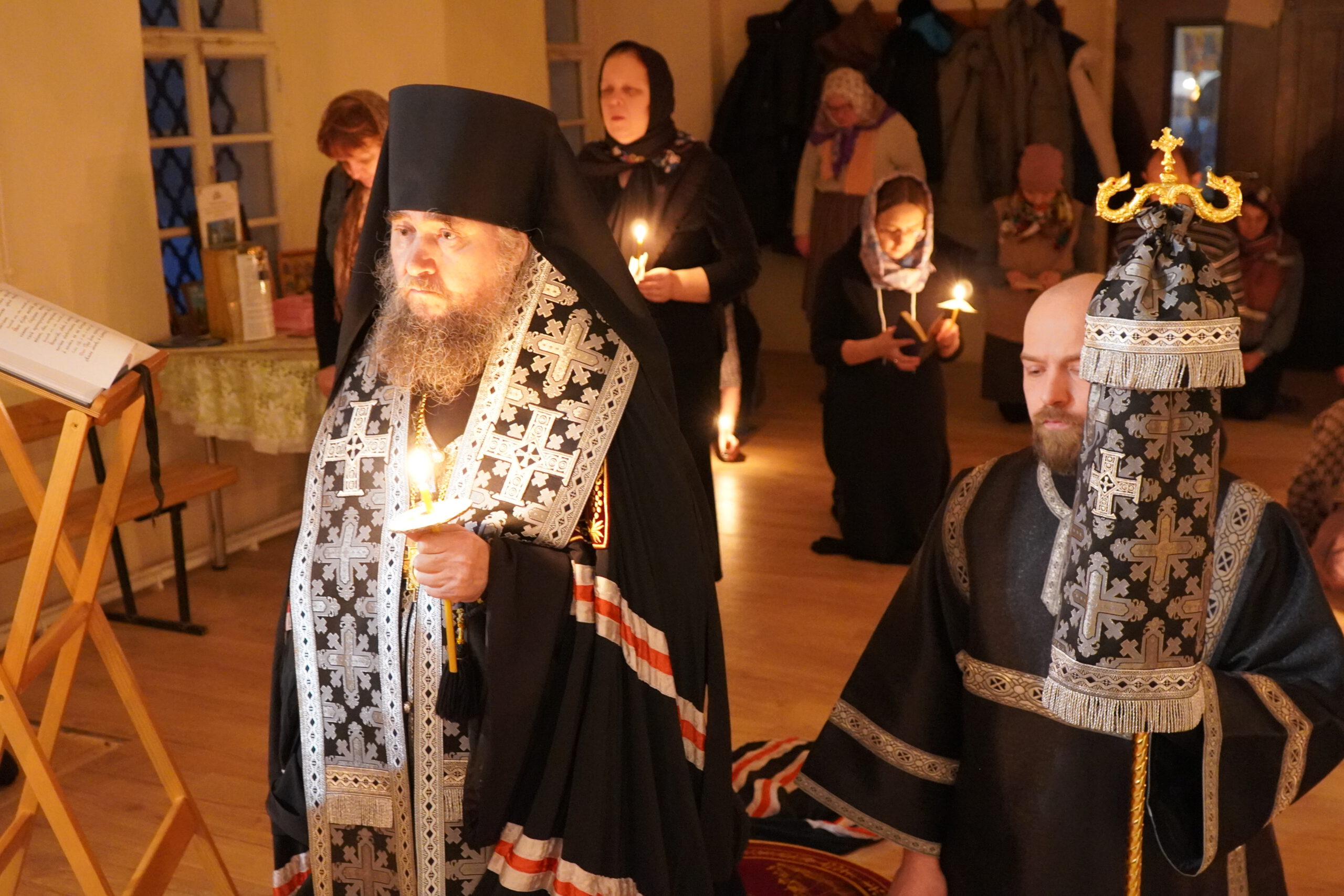 Во вторник 4 марта епископ Великоустюжский и Тотемский Фотий молился за Великим повечерием и возглавил чтение покаянного канона преп. Андрея Критского в храме Преполовения Господня в Михайло-Архангельском монастыре Великого Устюга.