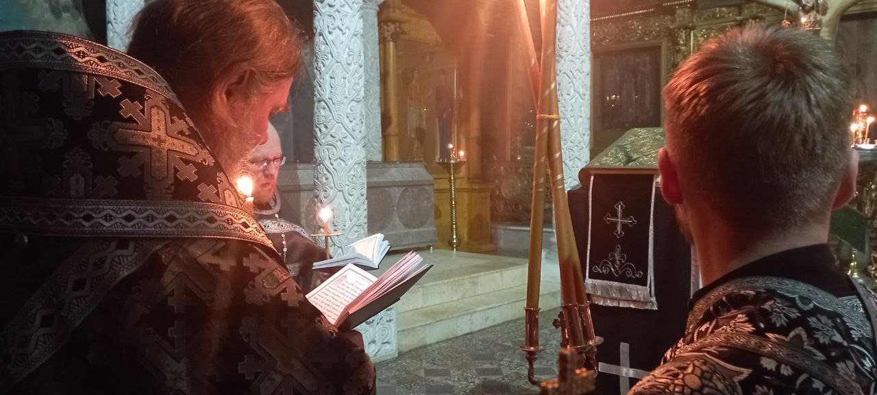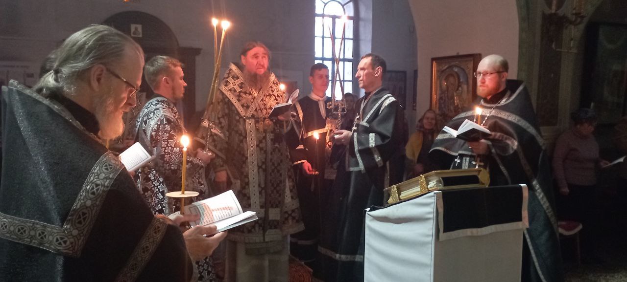 Владыке сослужил ключарь Прокопьевского собора иерей Вячеслав Бураков и штатный клирик Кафедрального собора иерей Андрей Игнатьев.