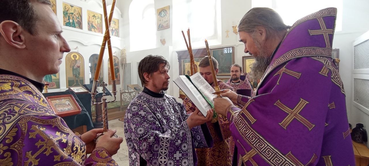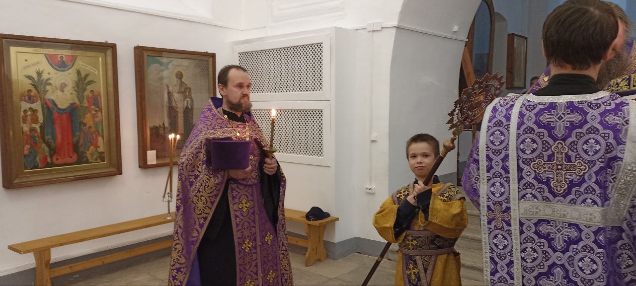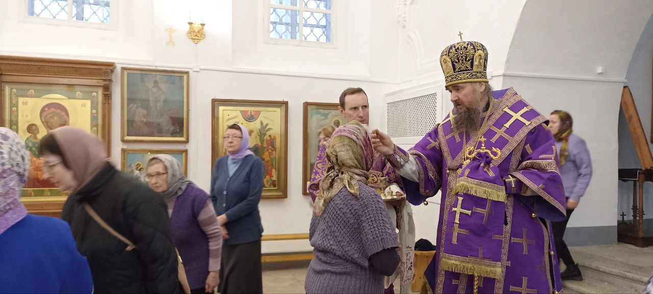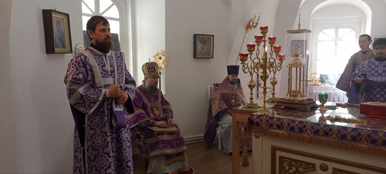 Владыке сослужили: ключарь Прокопьевского собора иерей Вячеслав Бураков, клирик Прокопьевского собора иерей Андрей Игнатьев, а также диакон Иван Холодилов.