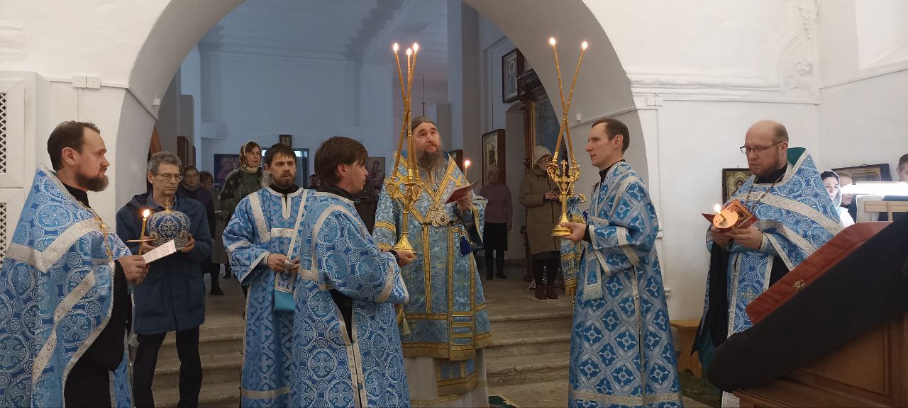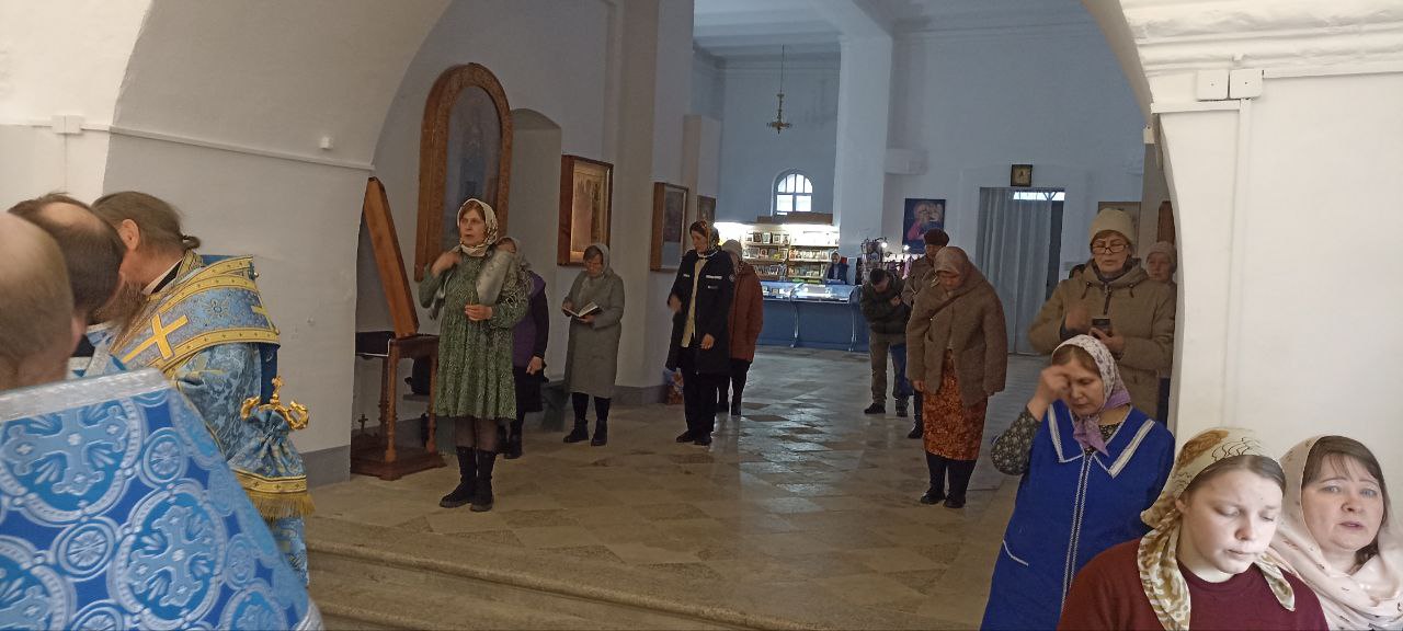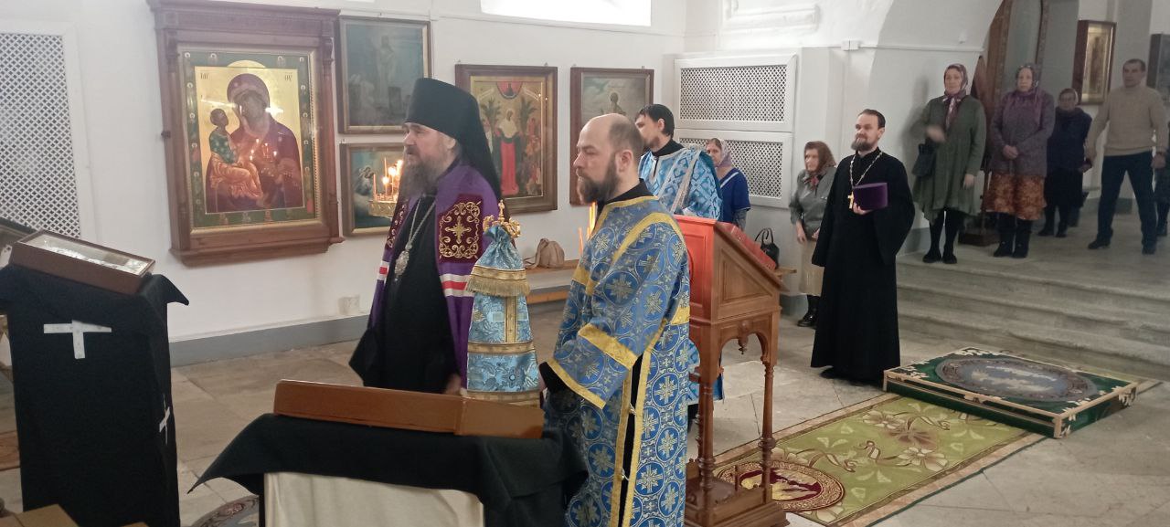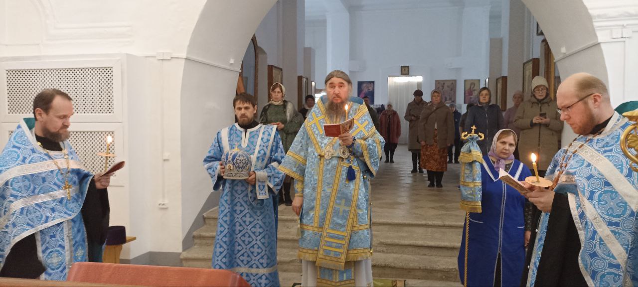 В субботу 5 апреля на Похвалу Пресвятой Богородицы (Суббота Акафиста) епископ Великоустюжский и Тотемский Фотий совершил Божественную Литургию в храме Иоанна Устюжского. Накануне архиерей возглавил славословную утреню с пением акафиста Пресвятой Богородице.