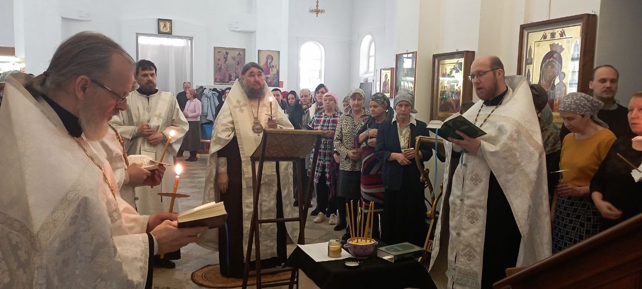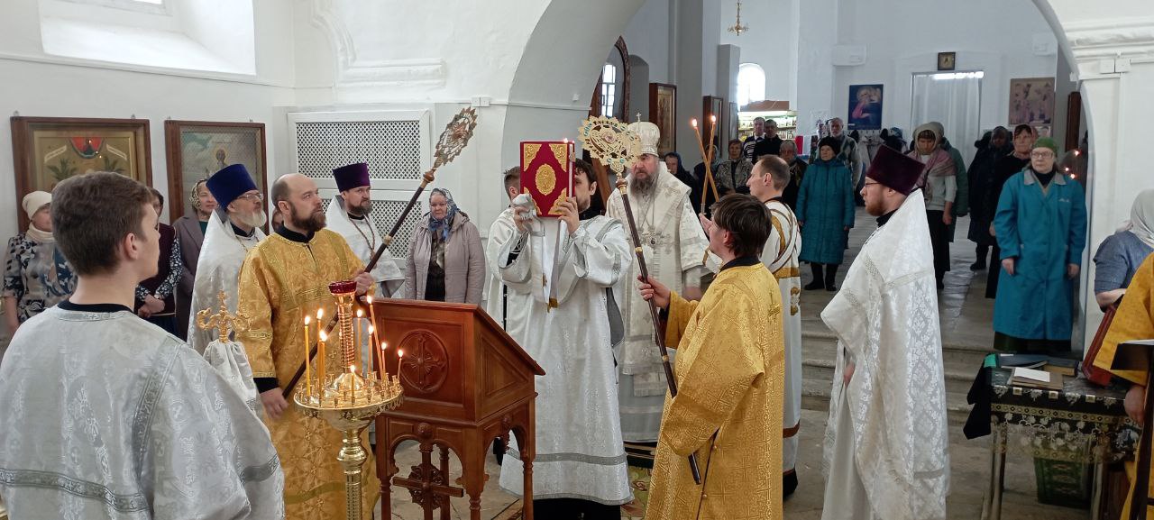 12 апреля в Лазареву субботу епископ Великоустюжский и Тотемский совершил Божественную Литургию в храме Иоанна Устюжского. Накануне архиерей возглавил славословную утреню с таинством Соборования.