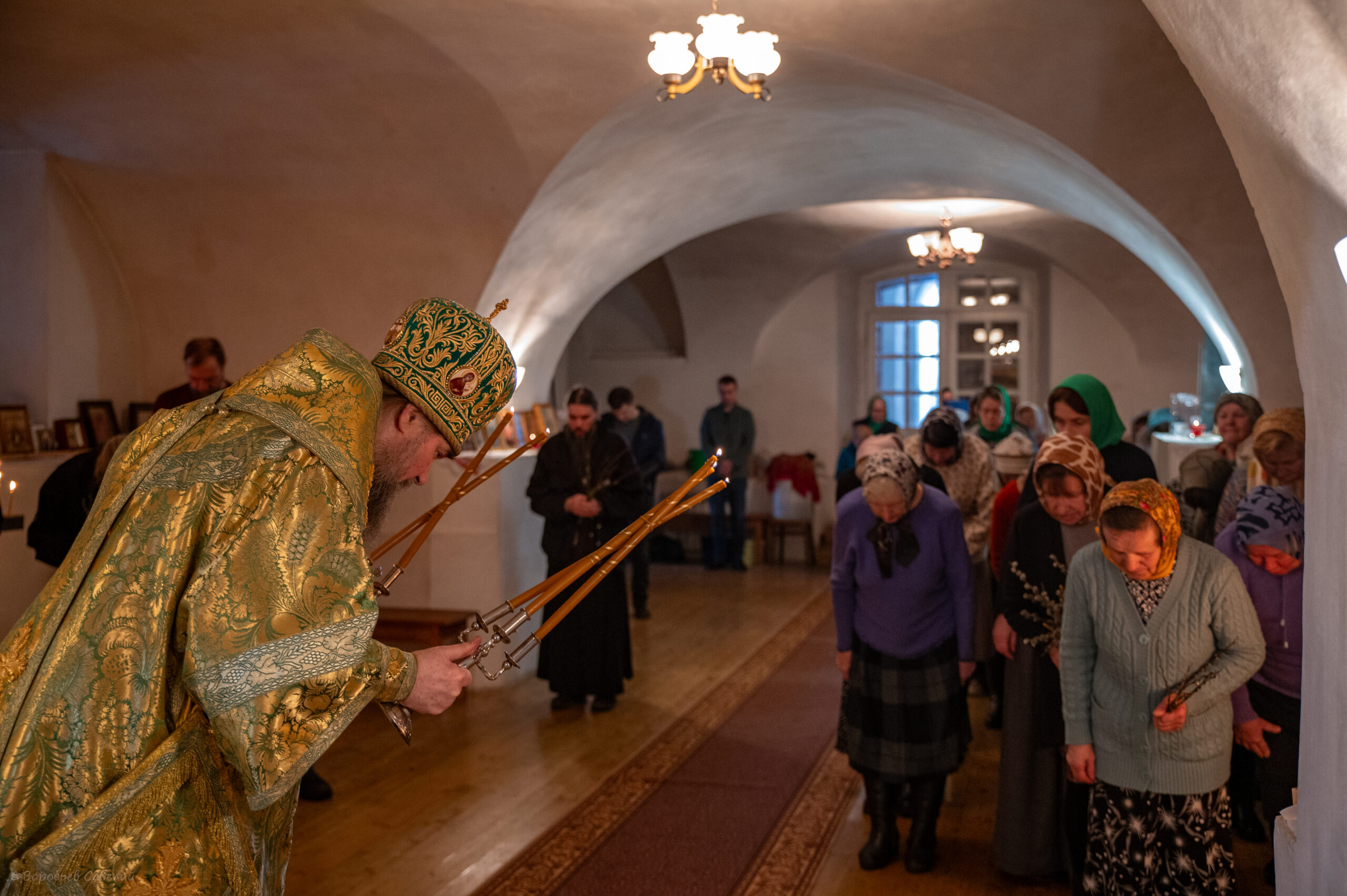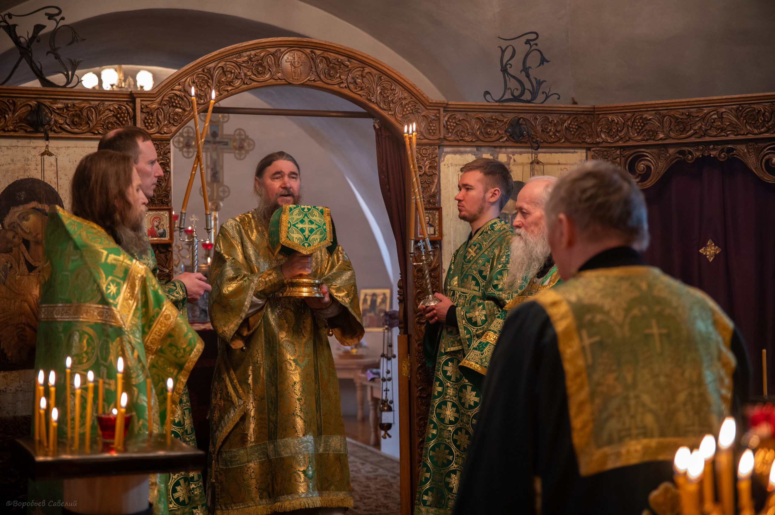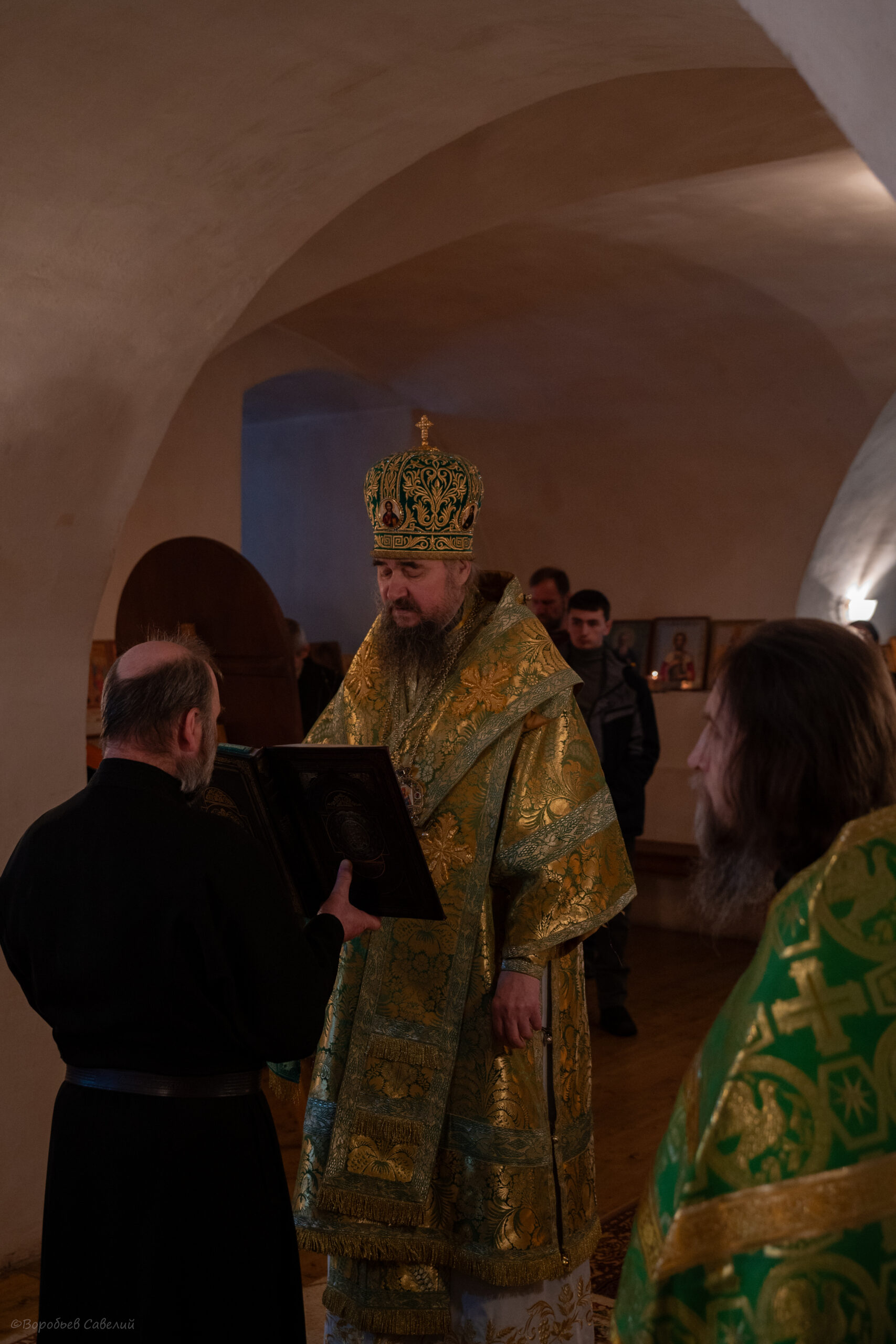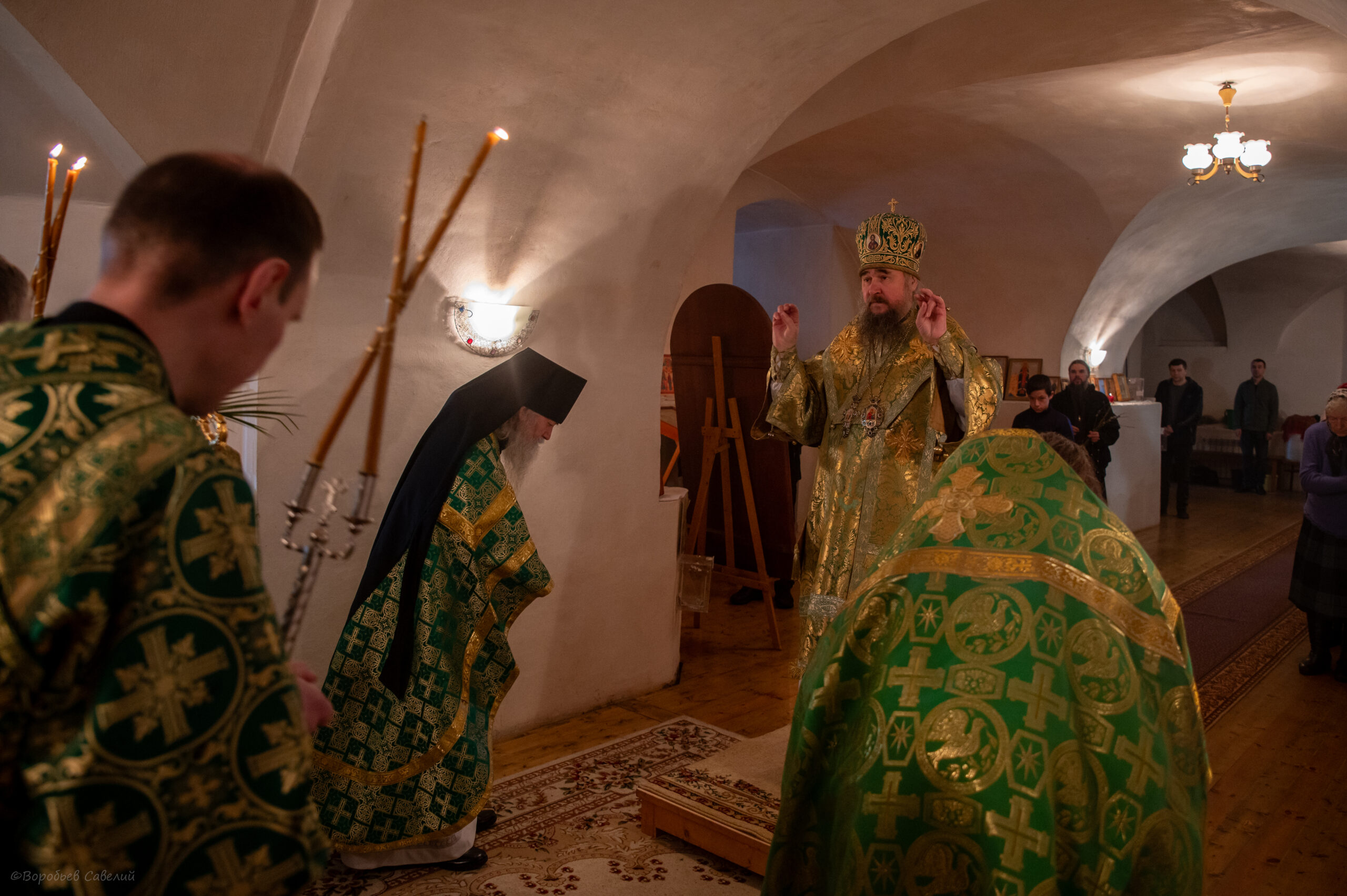 Владыке сослужили: настоятель Спасо-Суморина монастыря иеромонах Феодосий(Писарев), а также штатный клирик монастыря иерей Николай Денисов.