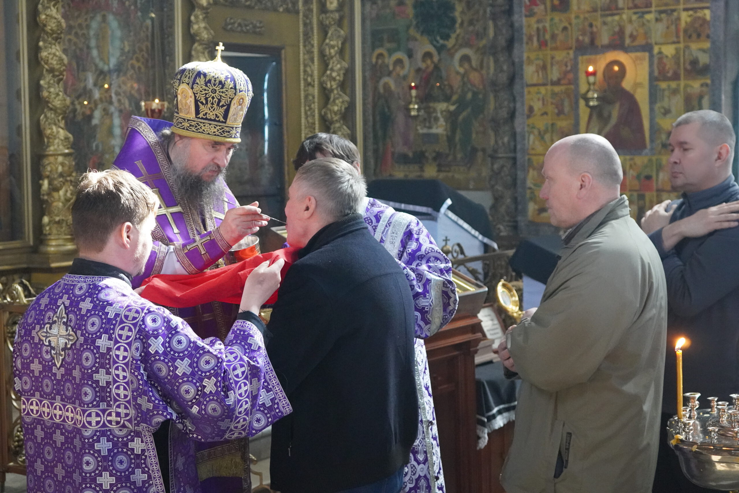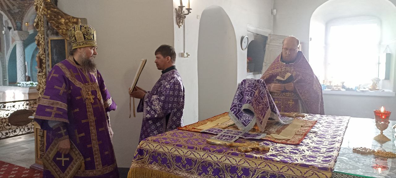 Владыке сослужили: ключарь Прокопьевского собора иерей Вячеслав Бураков, клирик Прокопьевского собора иерей Андрей Игнатьев, а также диакон Иван Холодилов.