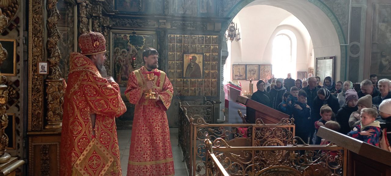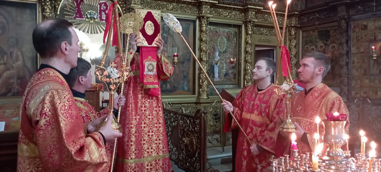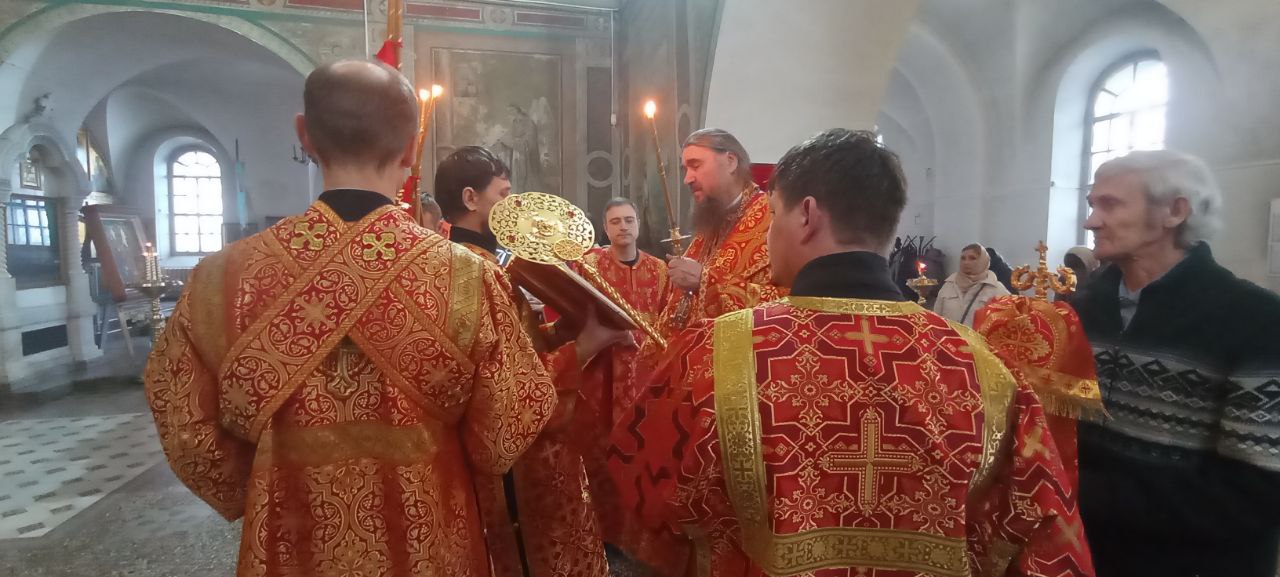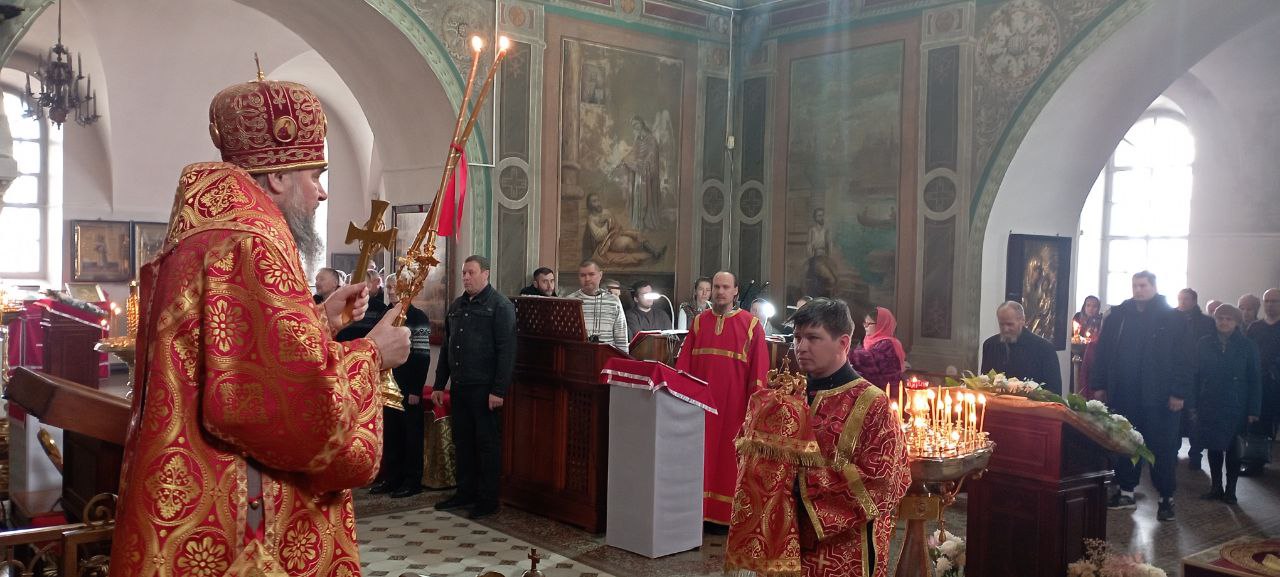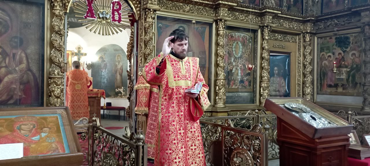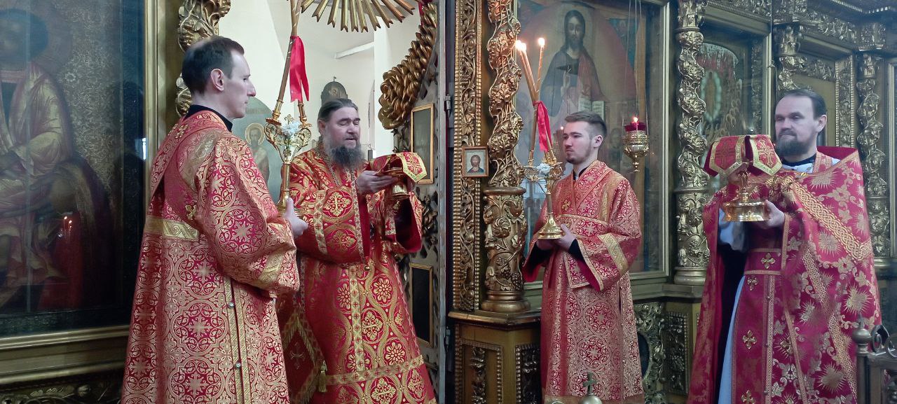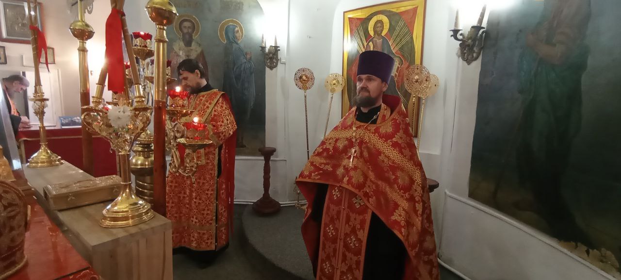 Владыке сослужили: ключарь Прокопьевского собора иерей Вячеслав Бураков, а также диакон Иван Холодилов.