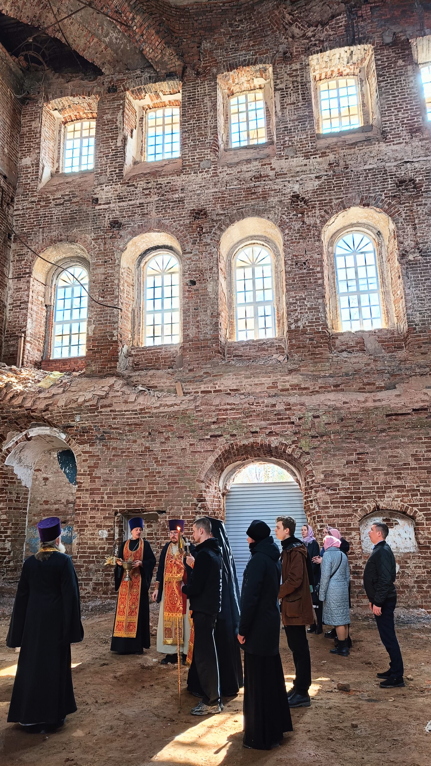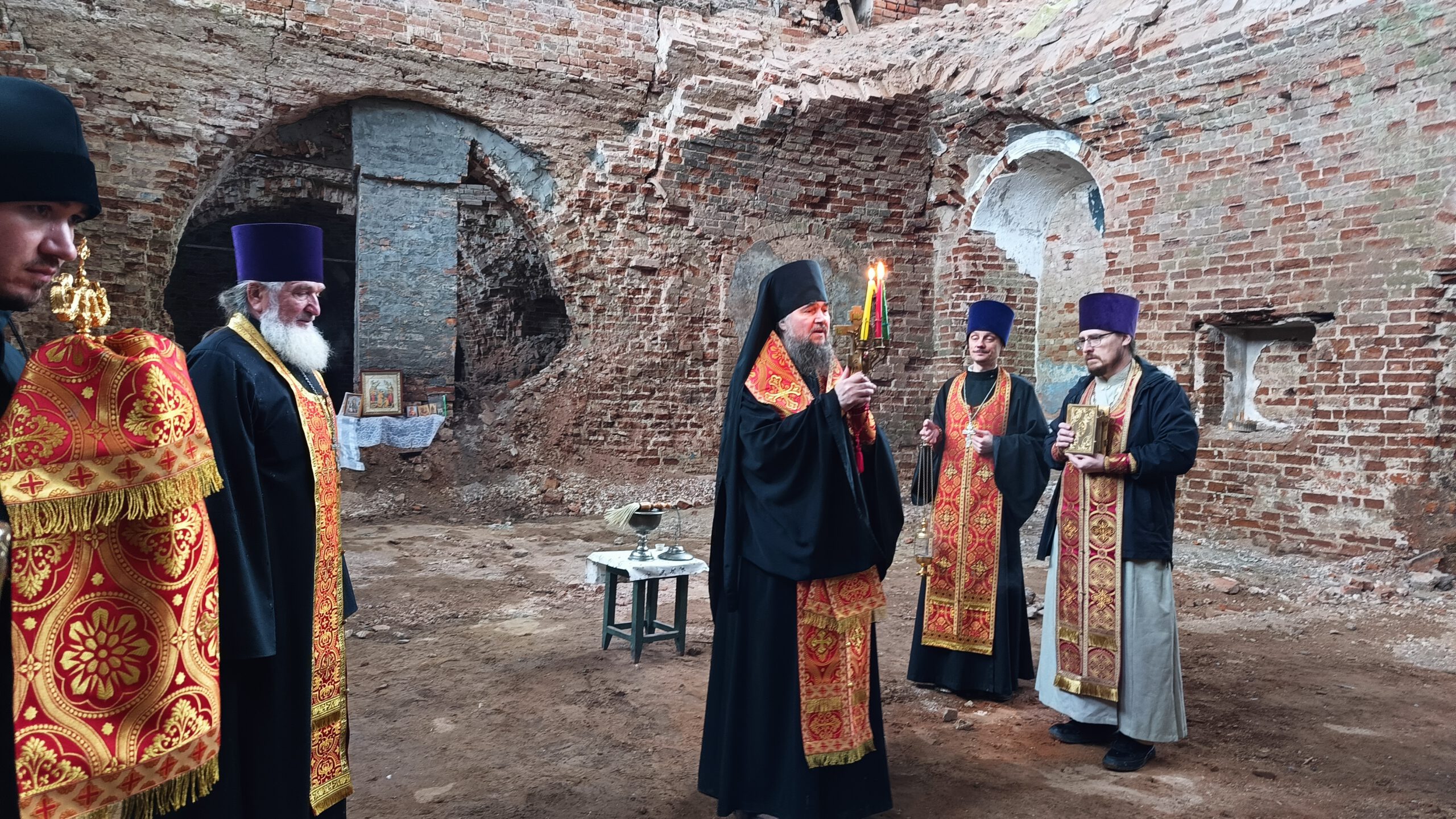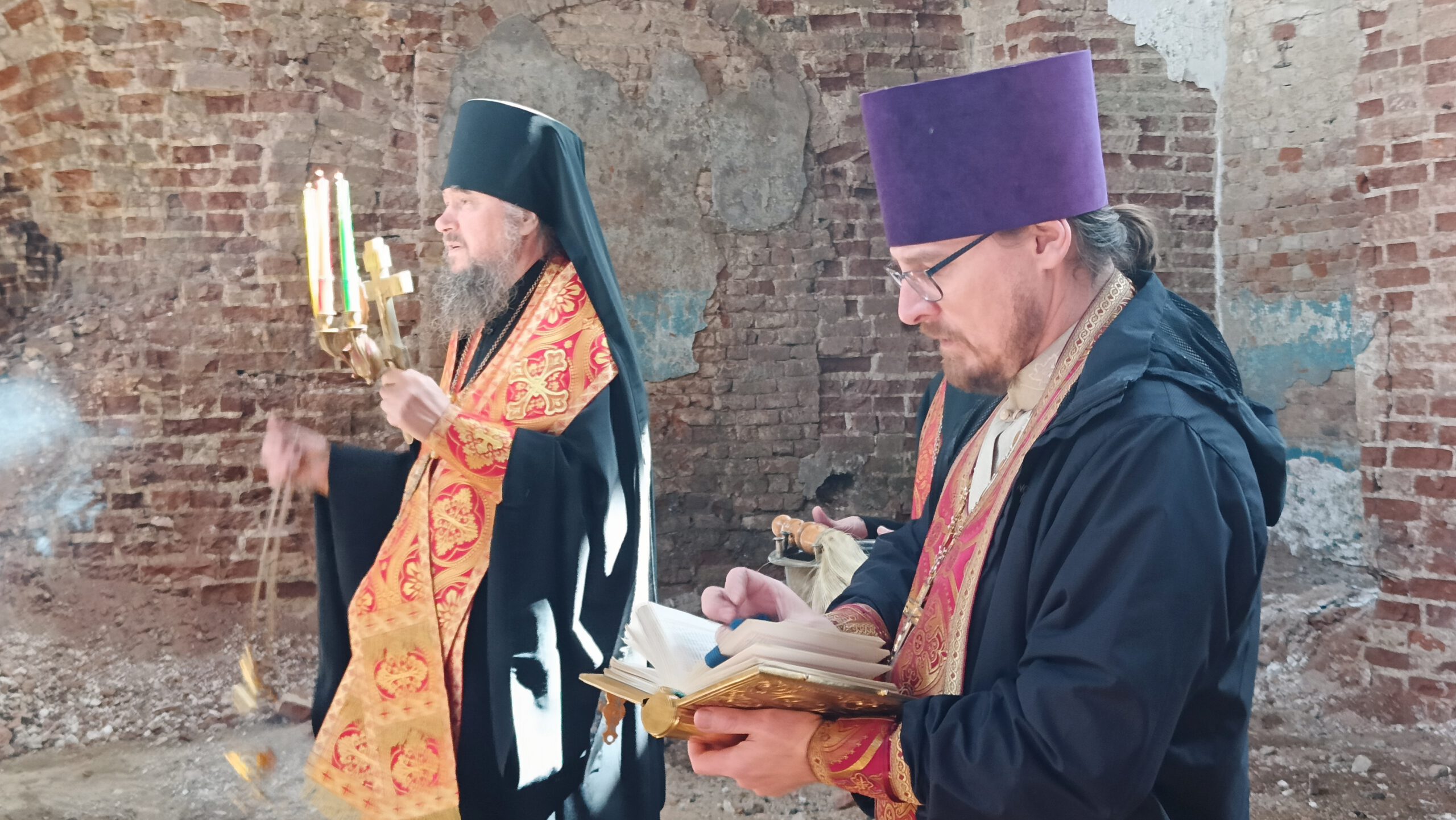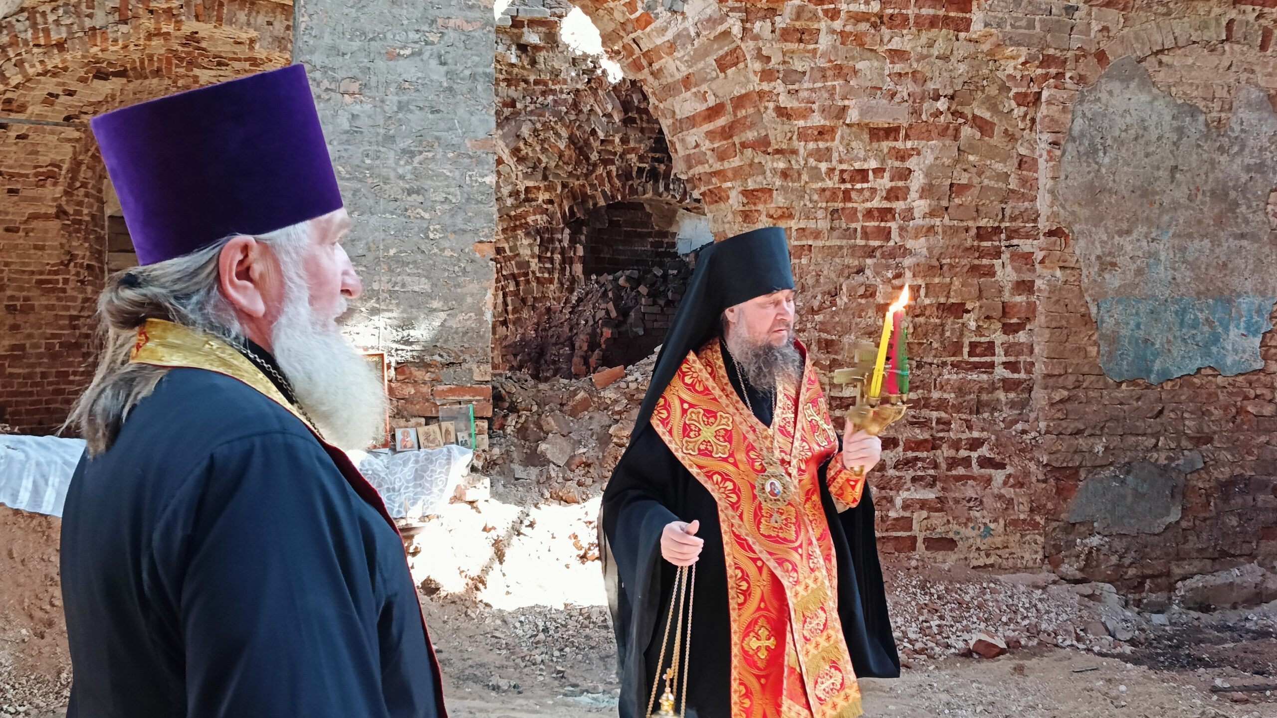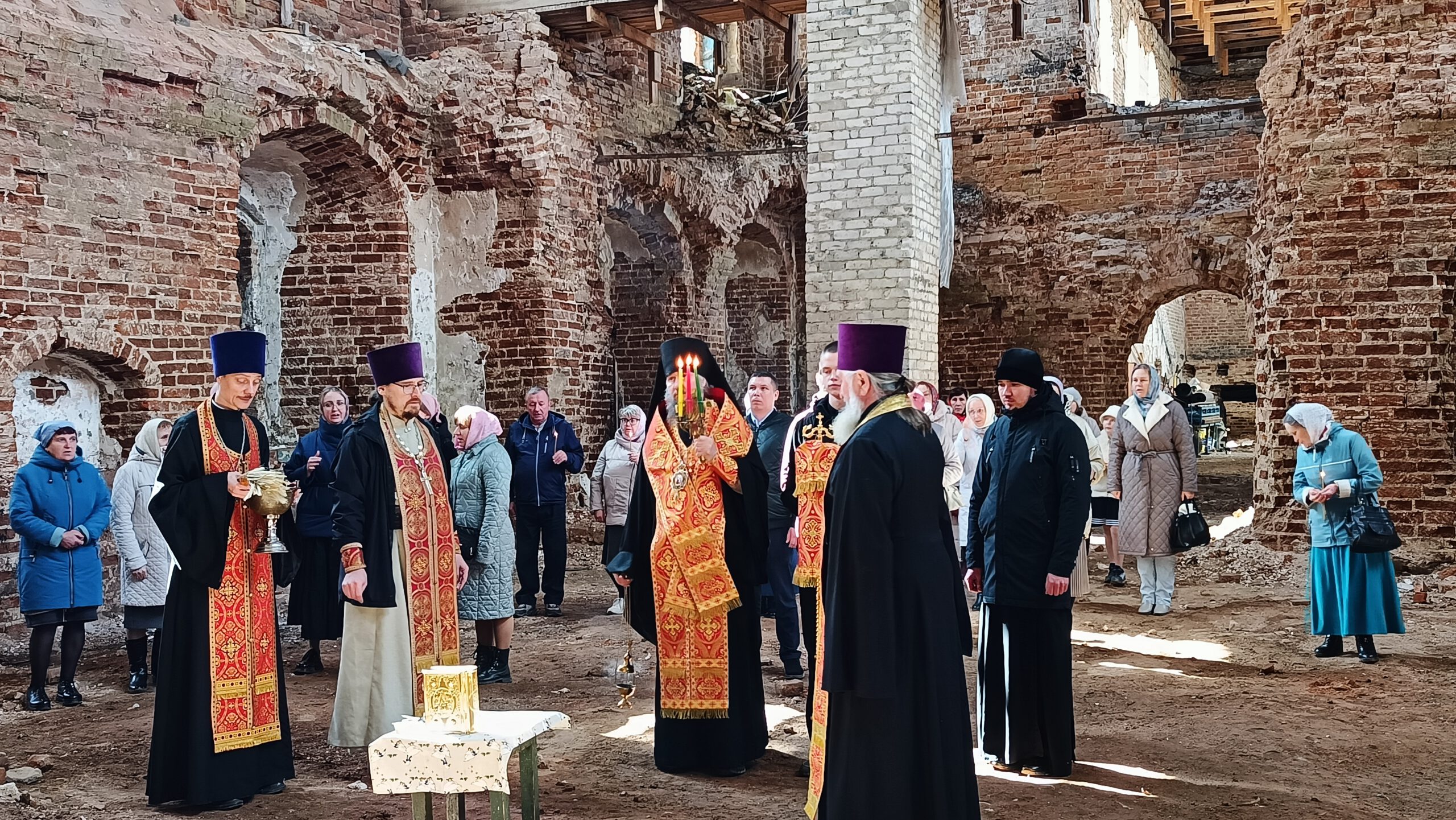 В субботу Светлой Седмицы Епископ Великоустюжский и Тотемский Фотий совершил молебен по пасхальному чину в реставрируемом Сретенском соборе в Никольске.