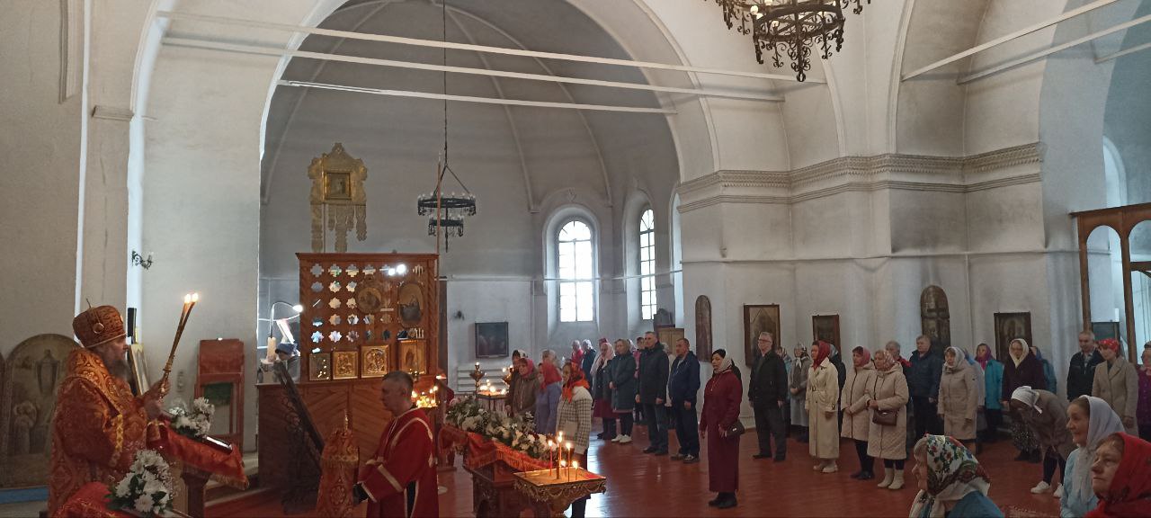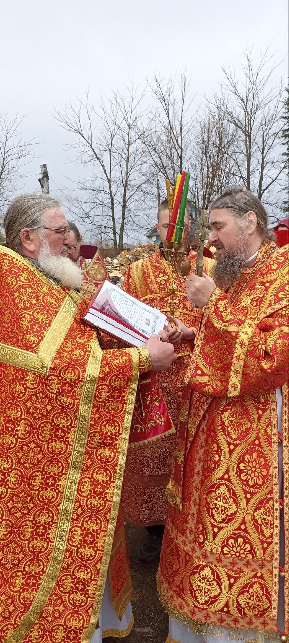 За Литургией Преосвященный Фотий, поздравил настоятеля и верующих с Пасхой, наградил местных жителей Епархиальными наградами. Владыка приветствовал нового врио. главы Никольского Округа Мишенева Дмитрия Николаевича, благословил его на предстоящие труды иконой Пресвятой Богородицы. Также Его Преосвященство произнёс проповедь: