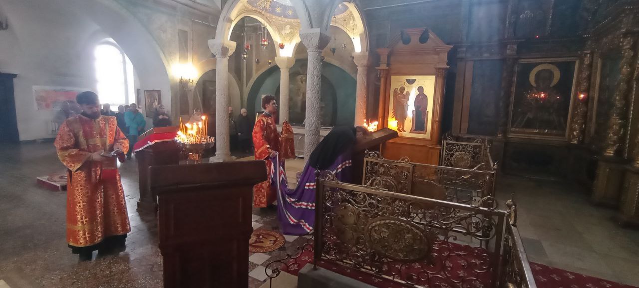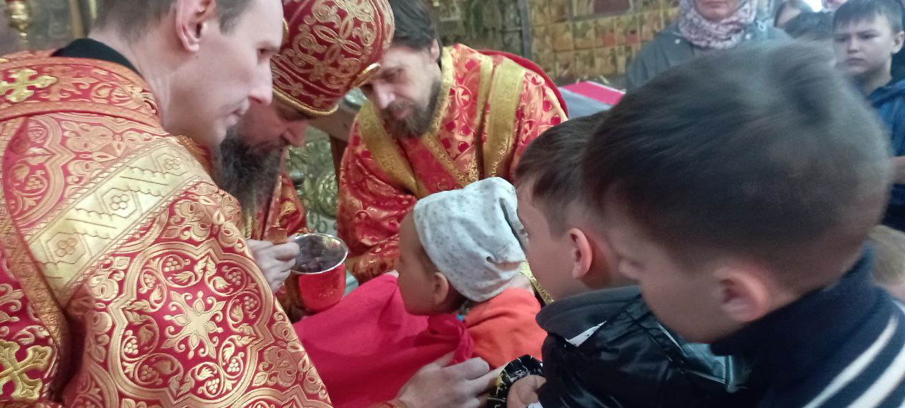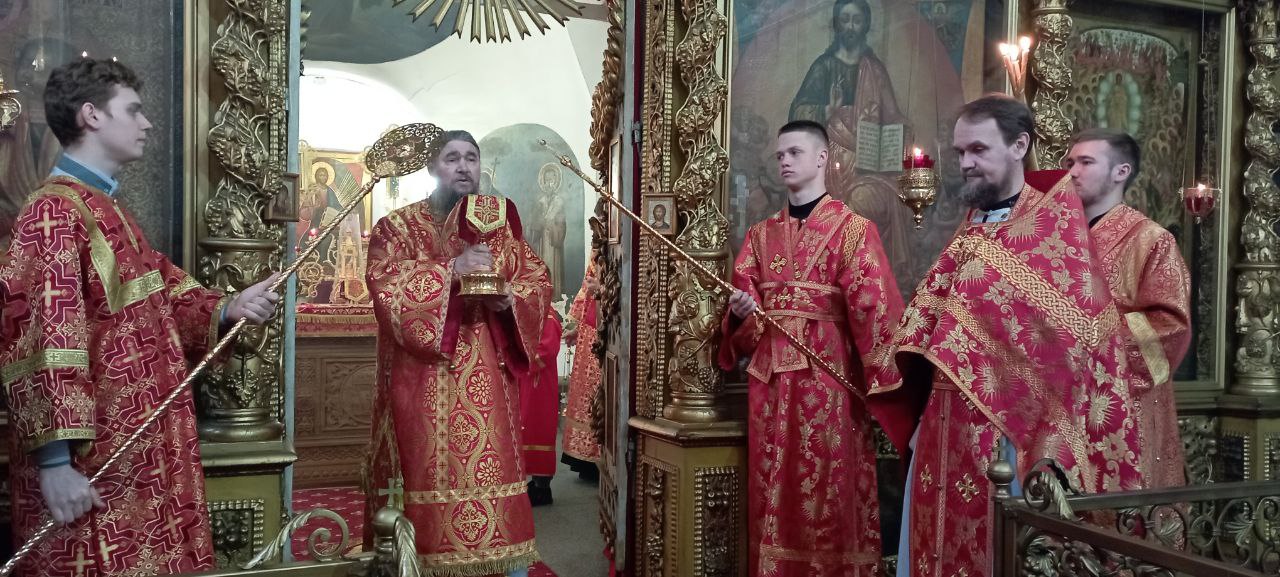 Владыке сослужили: ключарь Прокопьевского собора иерей Вячеслав Бураков, а также диакон Иван Холодилов.