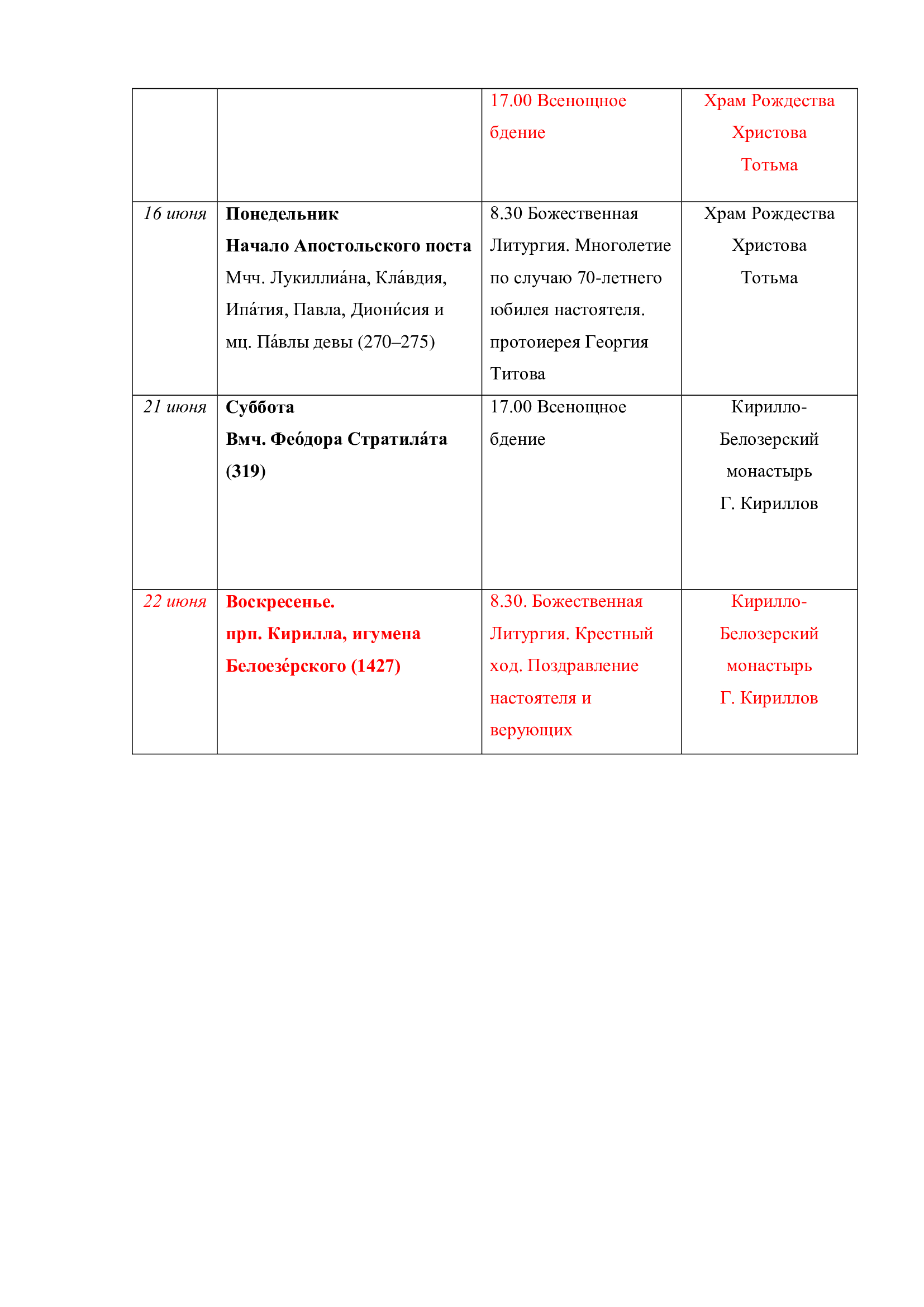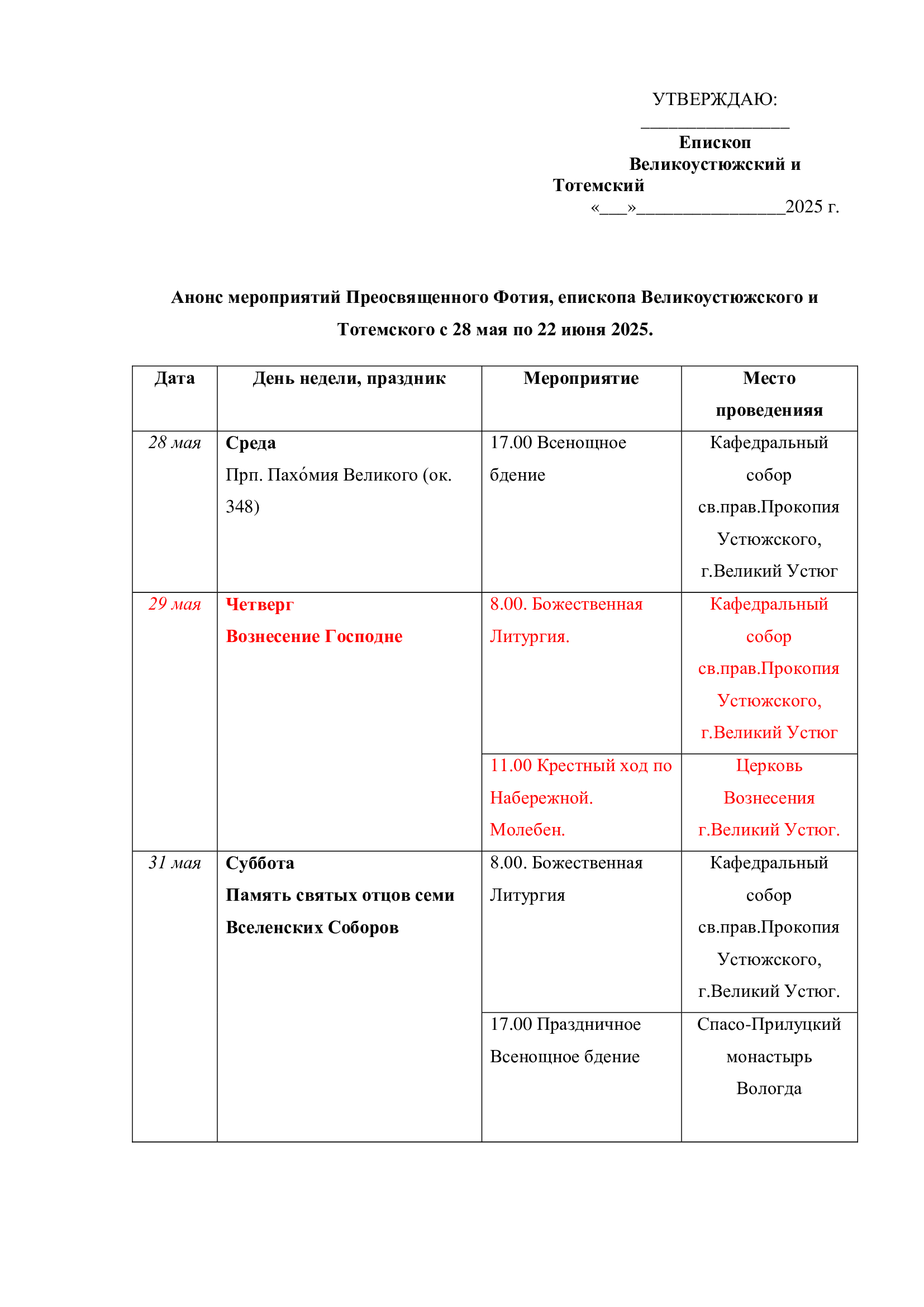 С 20 по 22 марта в Великом Устюге, по благословению
