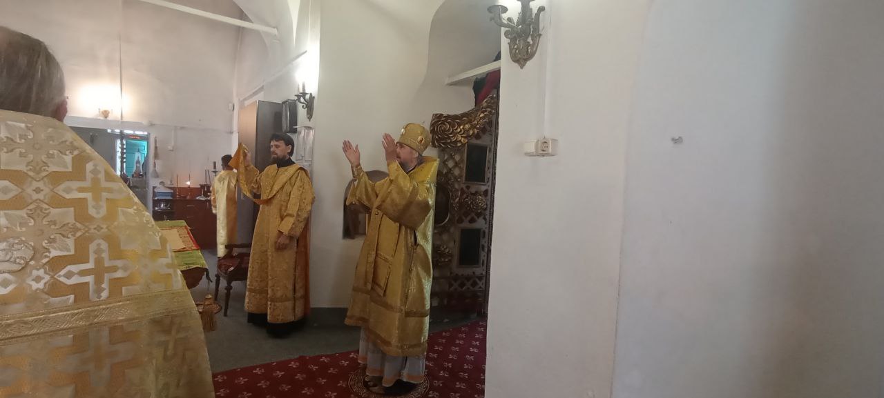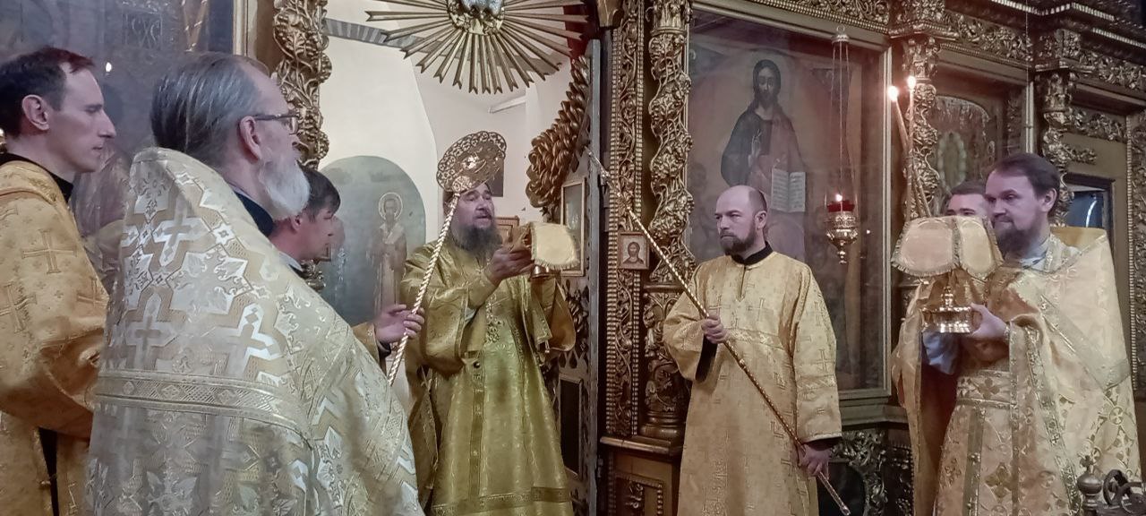 Владыке сослужили: ключарь Прокопьевского собора иерей Вячеслав Бураков, клирик Прокопьевского собора иерей Андрей Игнатьев, настоятель храма Симона Воломского в Полдарсе иерей Дмитрий Живаев, а также диакон Иван Холодилов.