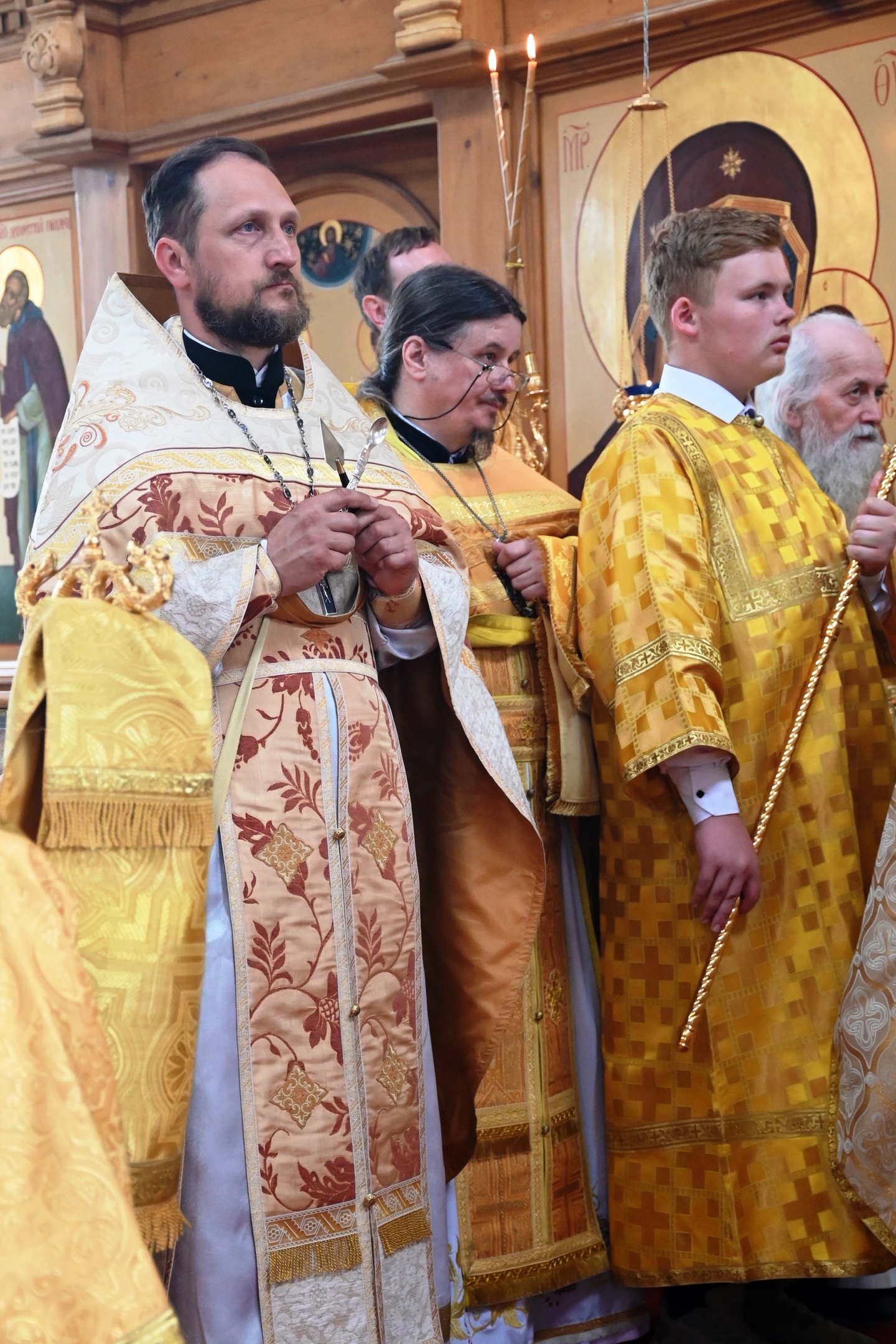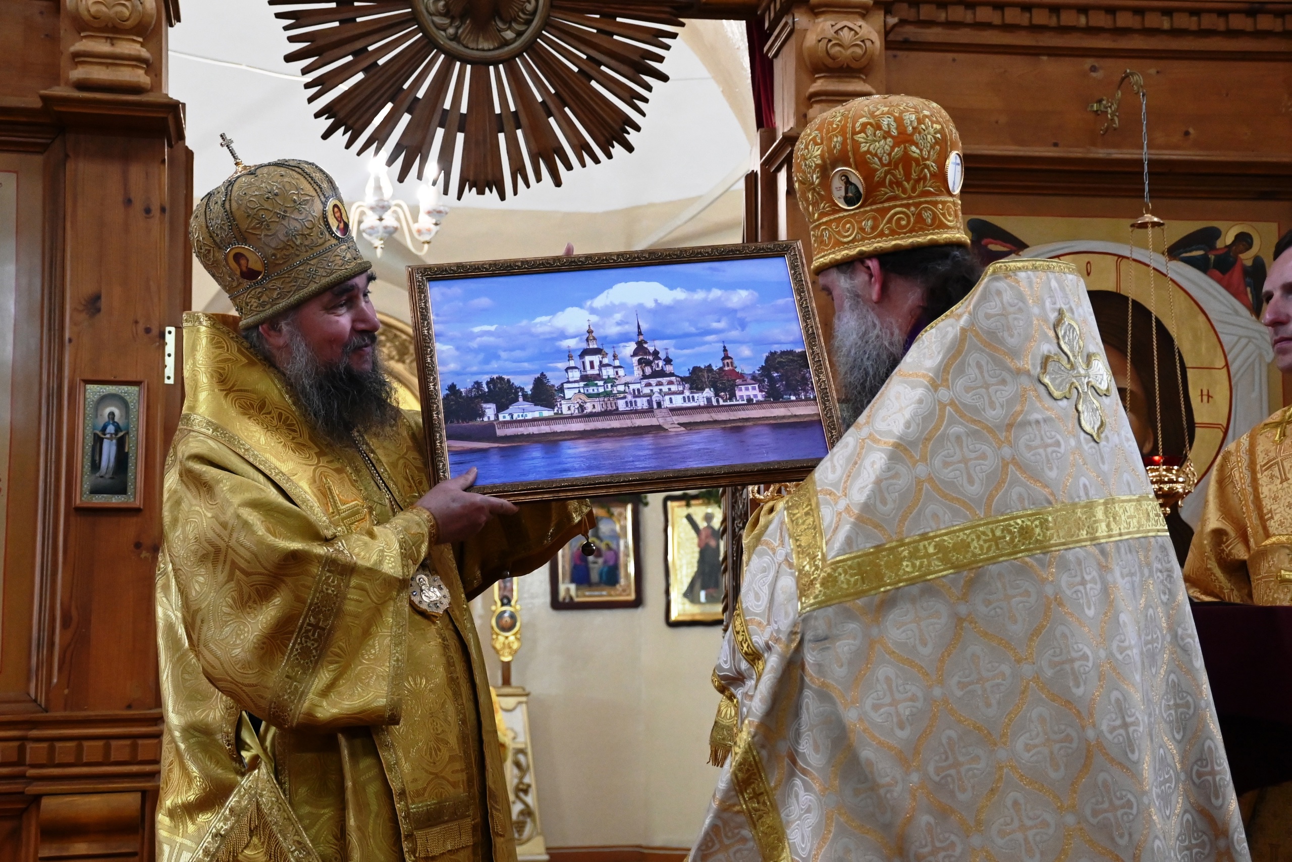 Владыке сослужили: благочинный Тотемского округа иерей Серафим Розин, благочинный Тарногского округа протоиерей Николай Крученых, настоятель храма Рождества Христова протоиерей Георгий Титов, иеромонах Феодосий настоятель Спасо-Суморина монастыря, иерей Иоанн Алешин, настоятель храма происхождения честных древ Животворящего Креста Господня в Бабушкино, иерей Михаил Мелентьев, настоятель храма Святой Троицы в Тотьме, иерей Максим Кривошанов, настоятель храма Агапита Маркушевского в Нюксенице, иерей Александр Мелков, настоятель храма в честь Казанской иконы Божией Матери, а также иерей Николай Денисов.
