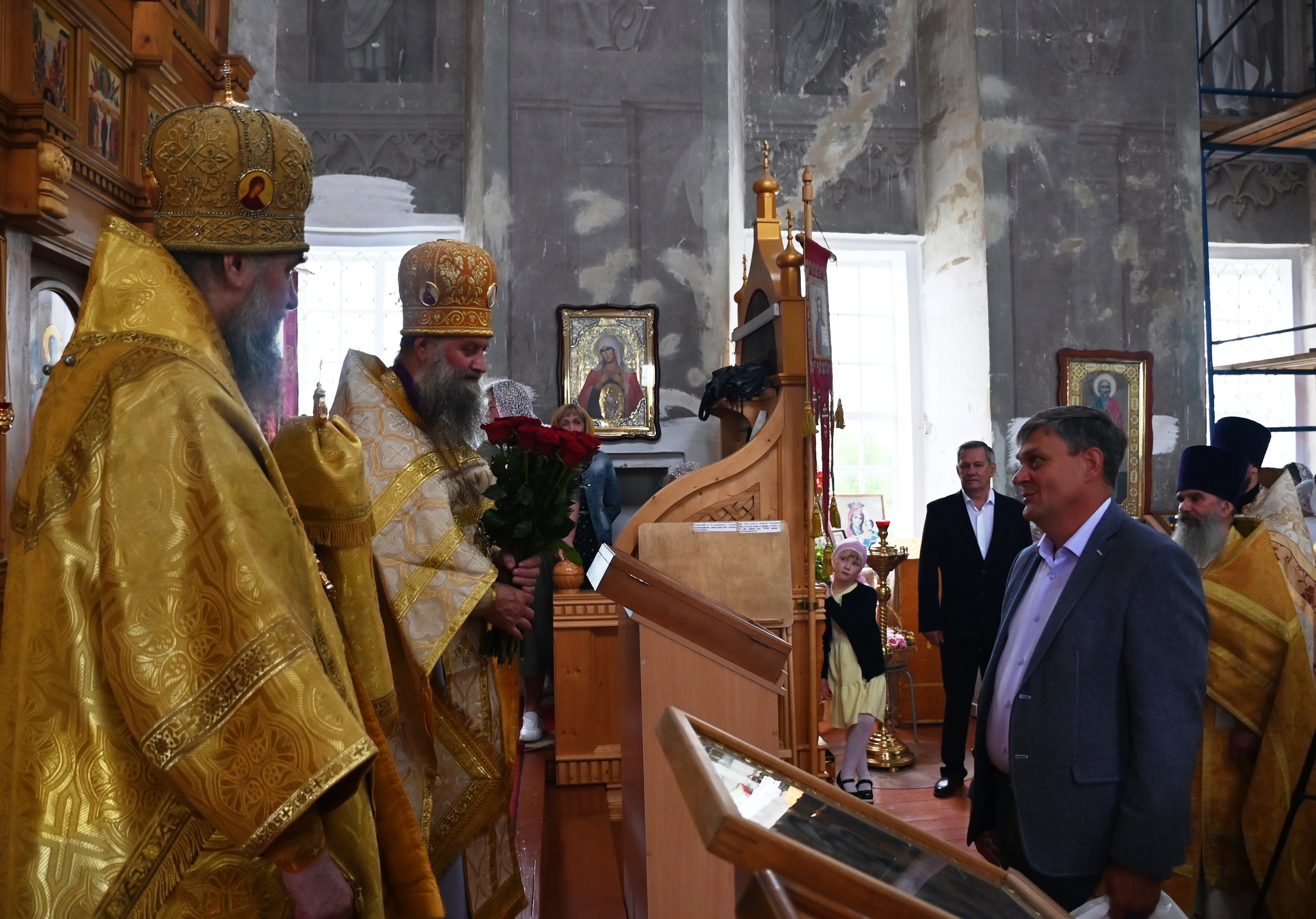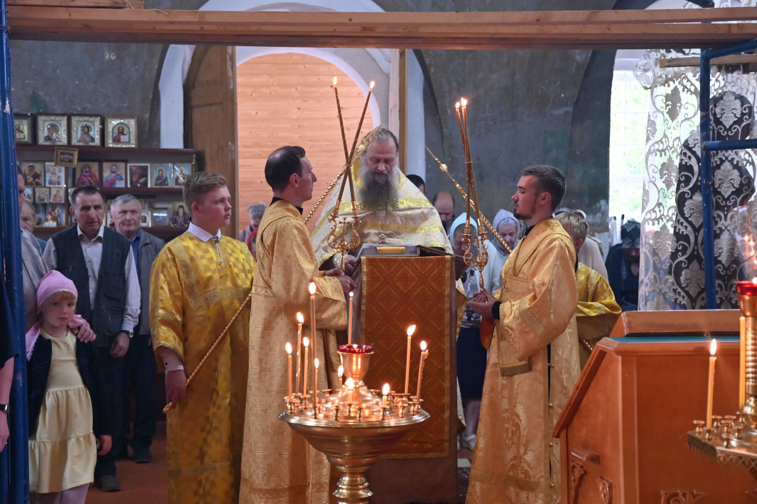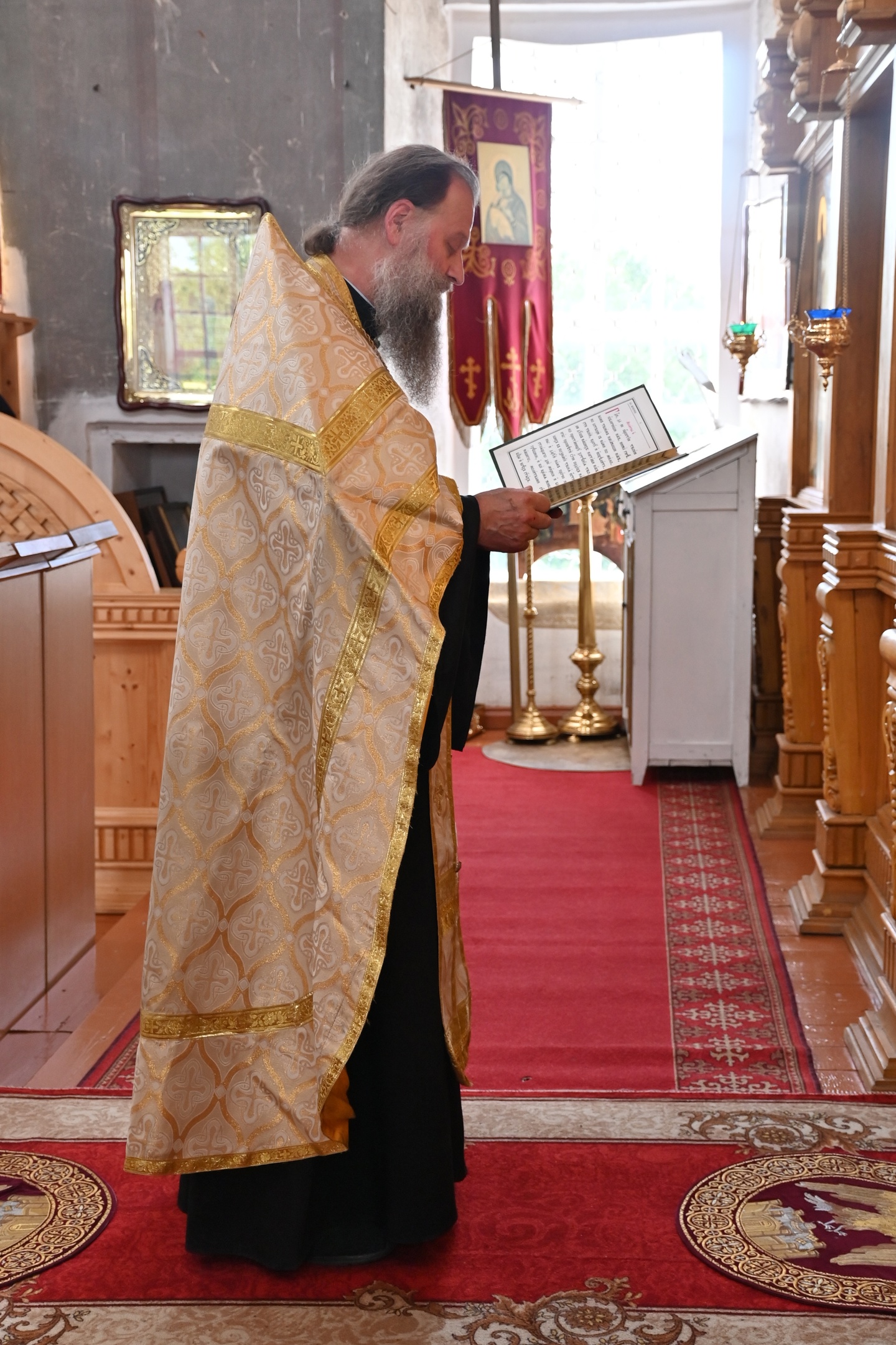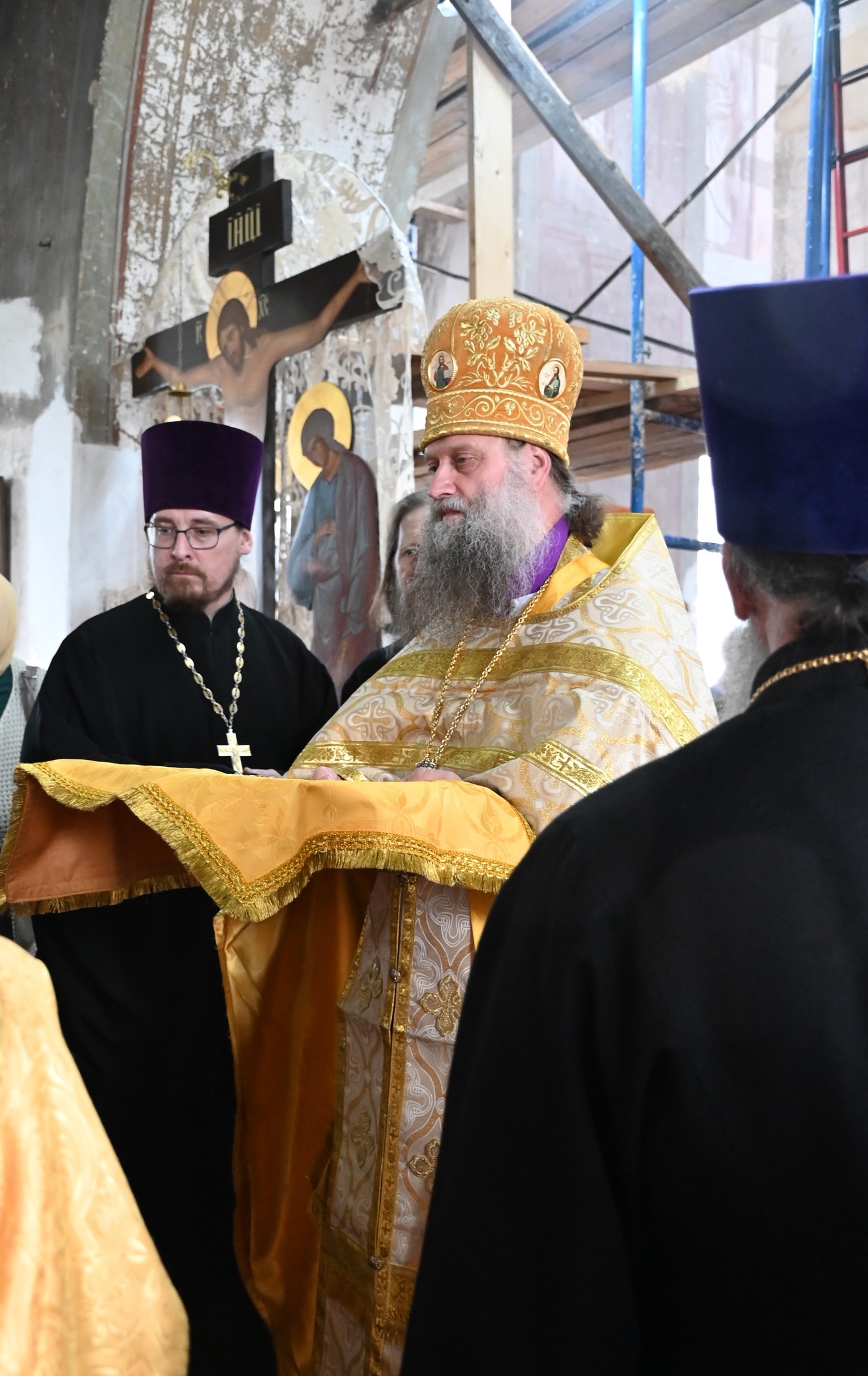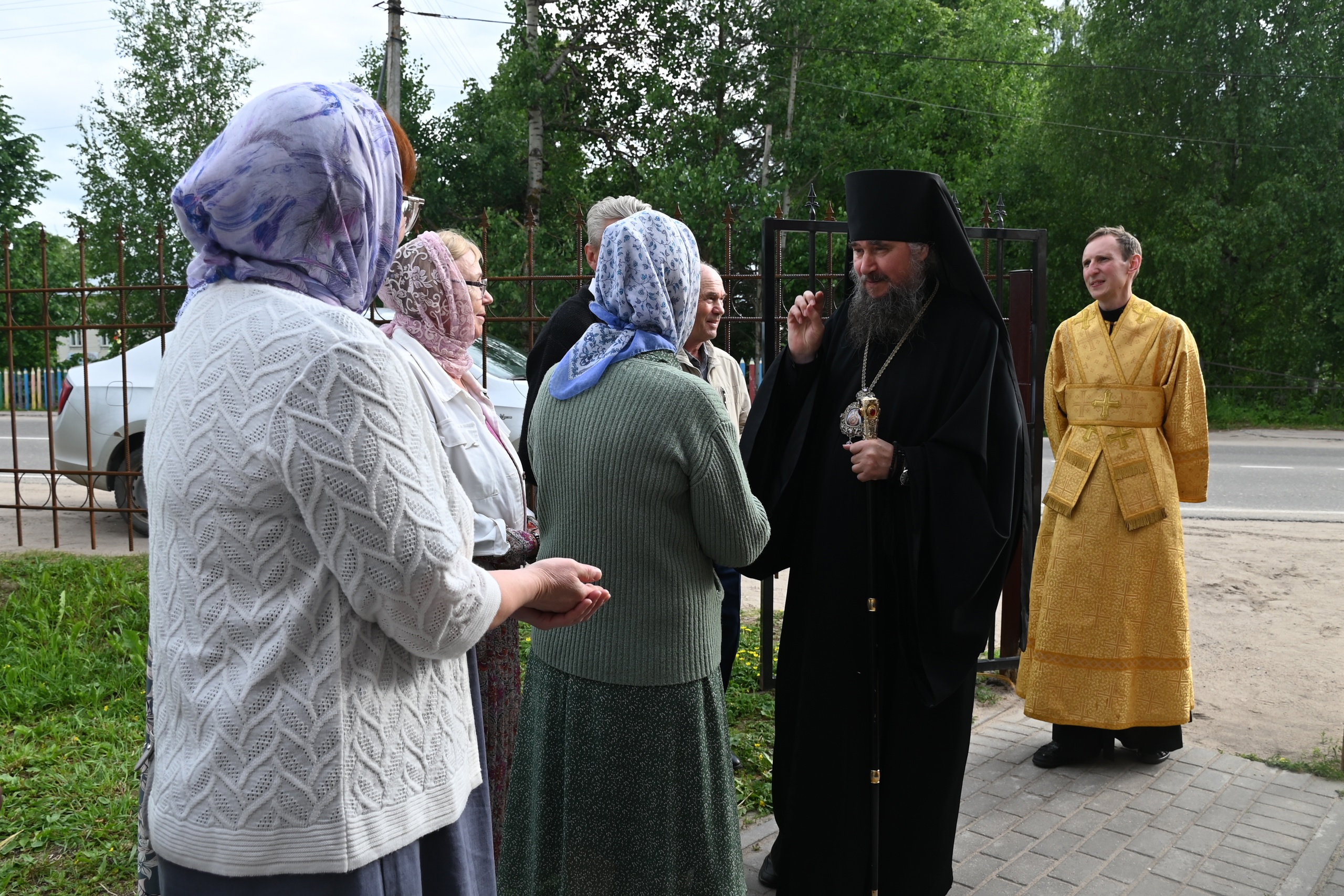 За Литургией Преосвященный Фотий произнёс проповедь, а также вместе с духовенством, главой Тотемского округа Сергеем Селяниным и прихожанами поздравил протоиерея Георгия Титова с юбилеем — семидесятилетием, пожелал ему духовных и телесных сил в пастырском служении, доброго здравия и благополучия на долгие годы.