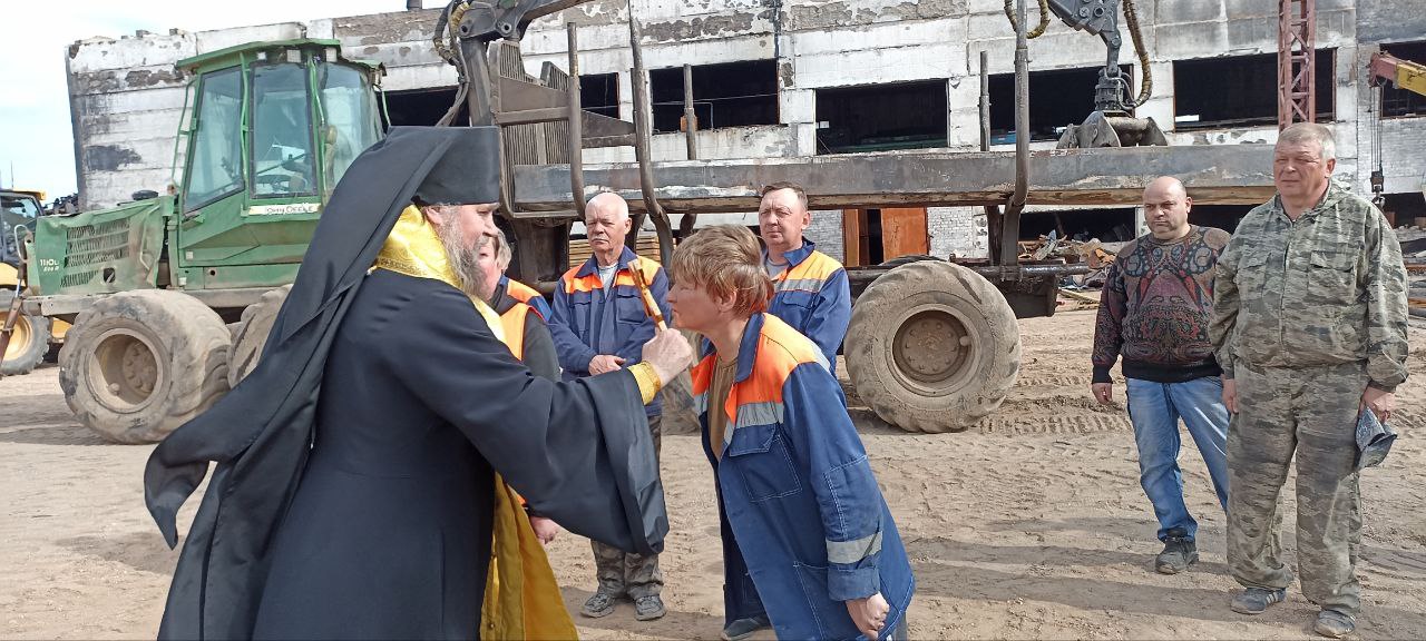 В конце мая в посёлке Новатор произошёл крупный пожар на местном предприятии «Новаторский ЛПК». В пожаре никто не пострадал, но цеха самого предприятия деревообработки огонь не пощадил, и теперь предстоит долгий и непростой этап восстановления производства. Поднимать завод из руин с Божьей помощью легче, потому руководитель предприятия Владимир Викторович Кадомкин пригласил на территорию предприятия епископа Великоустюжского и Тотемского Фотия. Здесь архиерей совершил молебен и обратился к рабочим с речью.