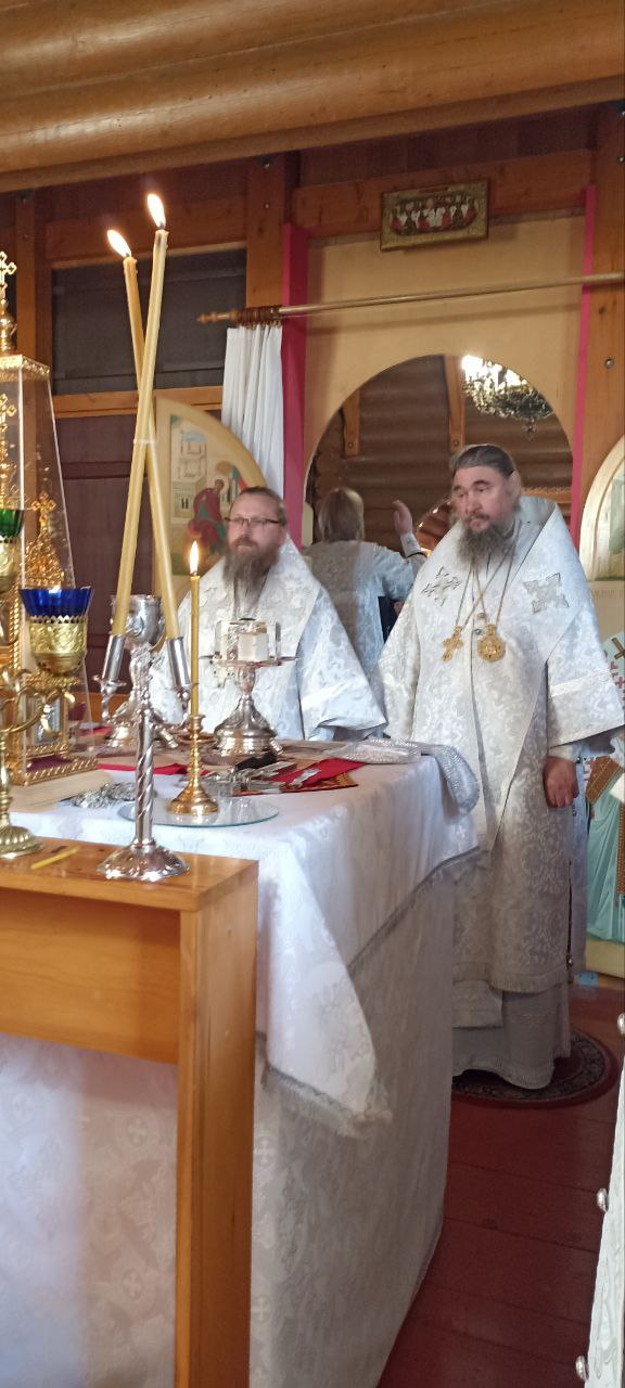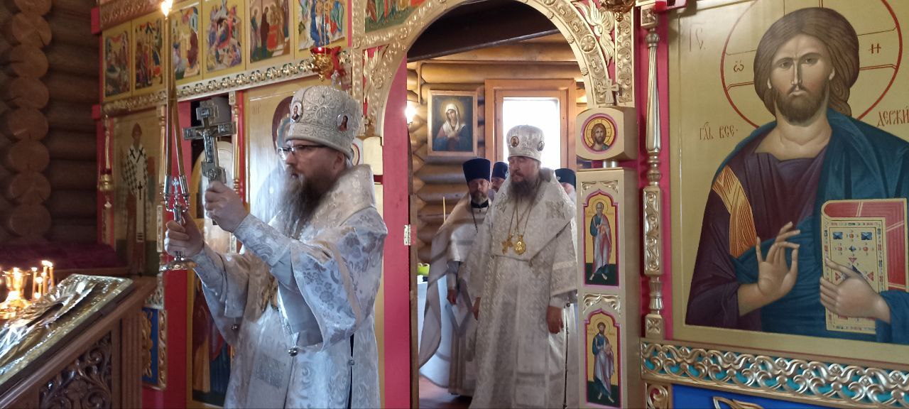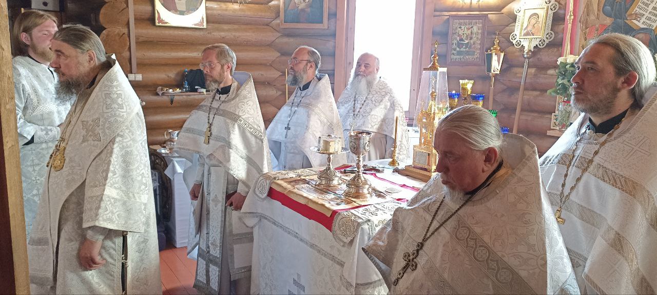 Затем архипастыри совершили позднюю Божественную литургию. Им сослужили: секретарь епархиального управления Череповецкой епархии, почетный настоятель кафедрального собора преподобных Афанасия и Феодосия Череповецких протоиерей Александр Куликов; благочинный Южного округа, настоятель храма Покрова Пресвятой Богородицы деревни Конечное протоиерей Александр Краев; благочинный Устюженского округа, настоятель храма Казанской иконы Божией Матери города Устюжны протоиерей Константин Лобанов; настоятель храма Рождества Христова города Череповца протоиерей Сергий Сергеев; ключарь Архиерейского подворья Воскресенского собора иеромонах Нил (Хоменец); клирик Новолеушинского Иоанно-Предтеченского монастыря иерей Алексий Поповский.