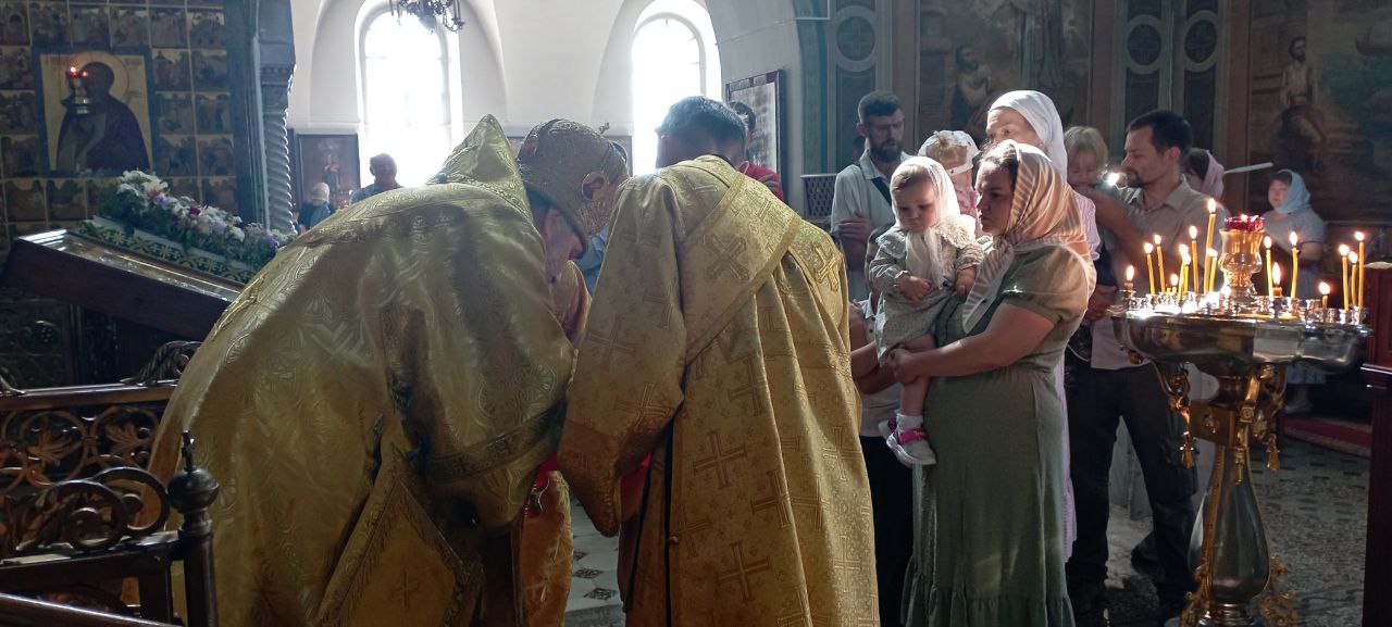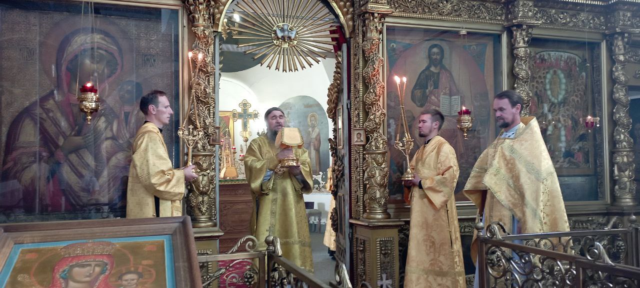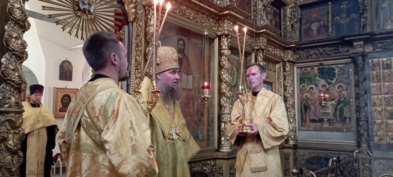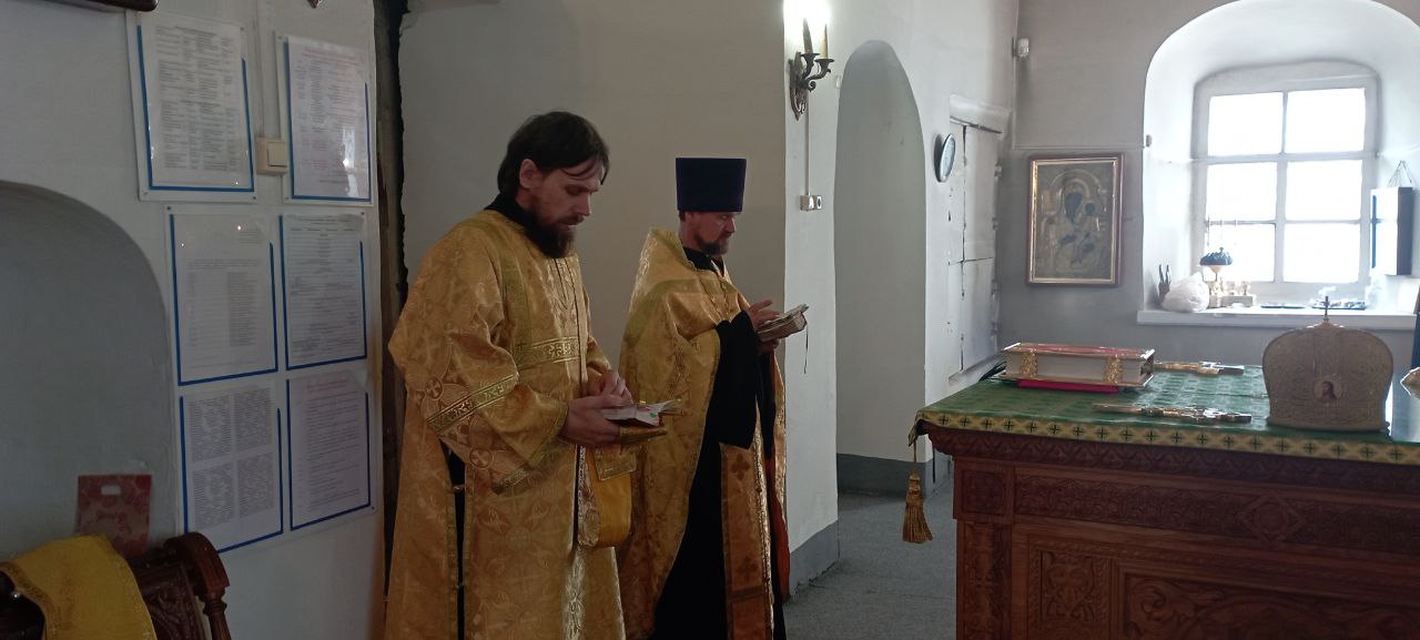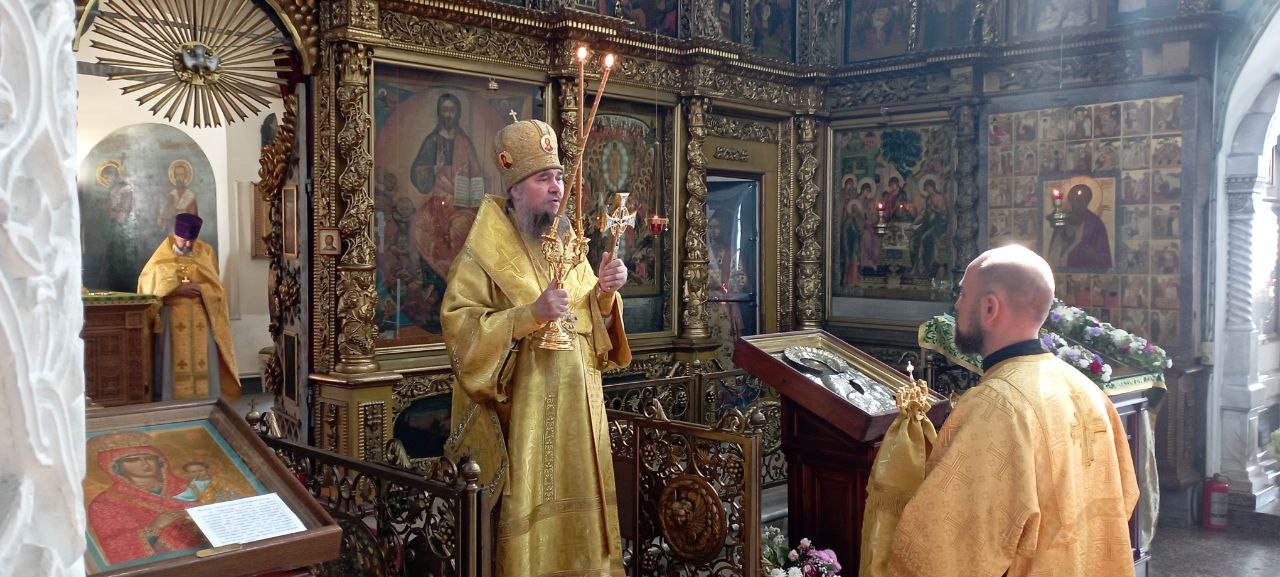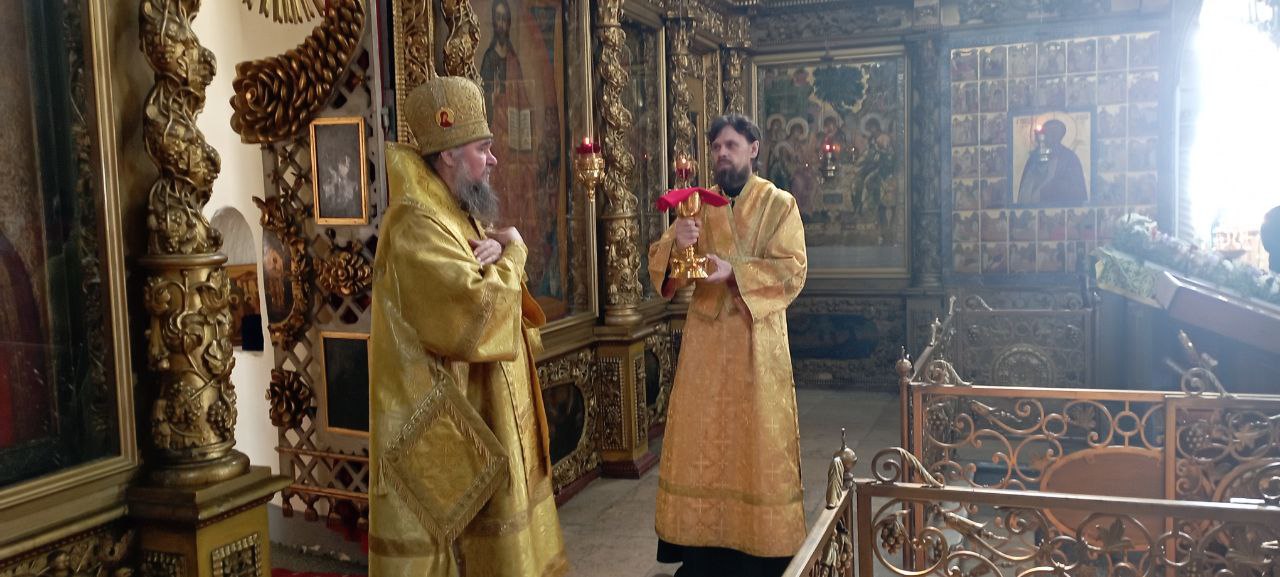 Владыке сослужили: ключарь Прокопьевского собора иерей Вячеслав Бураков, а также диакон Иван Холодилов.
