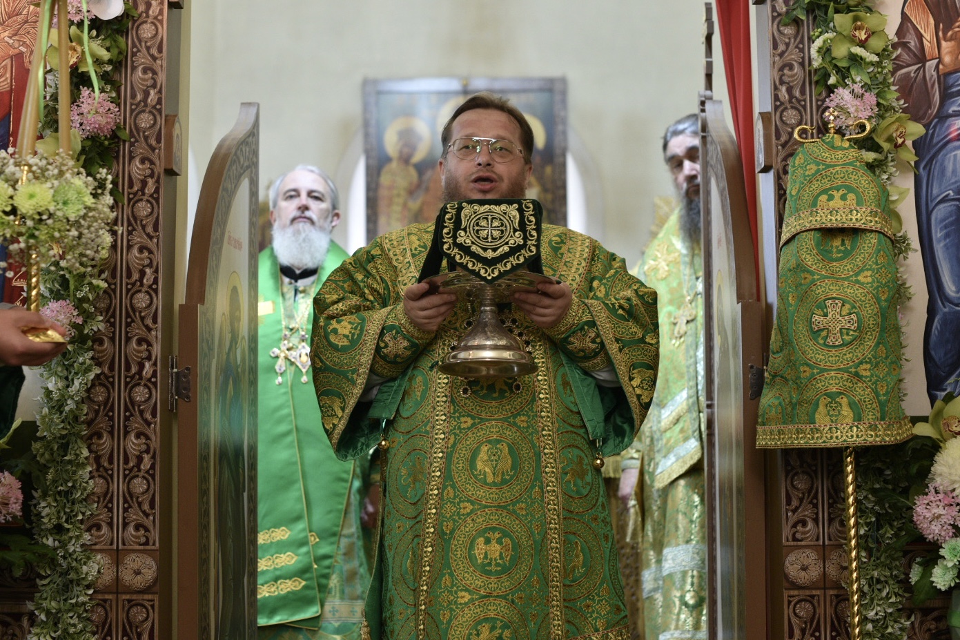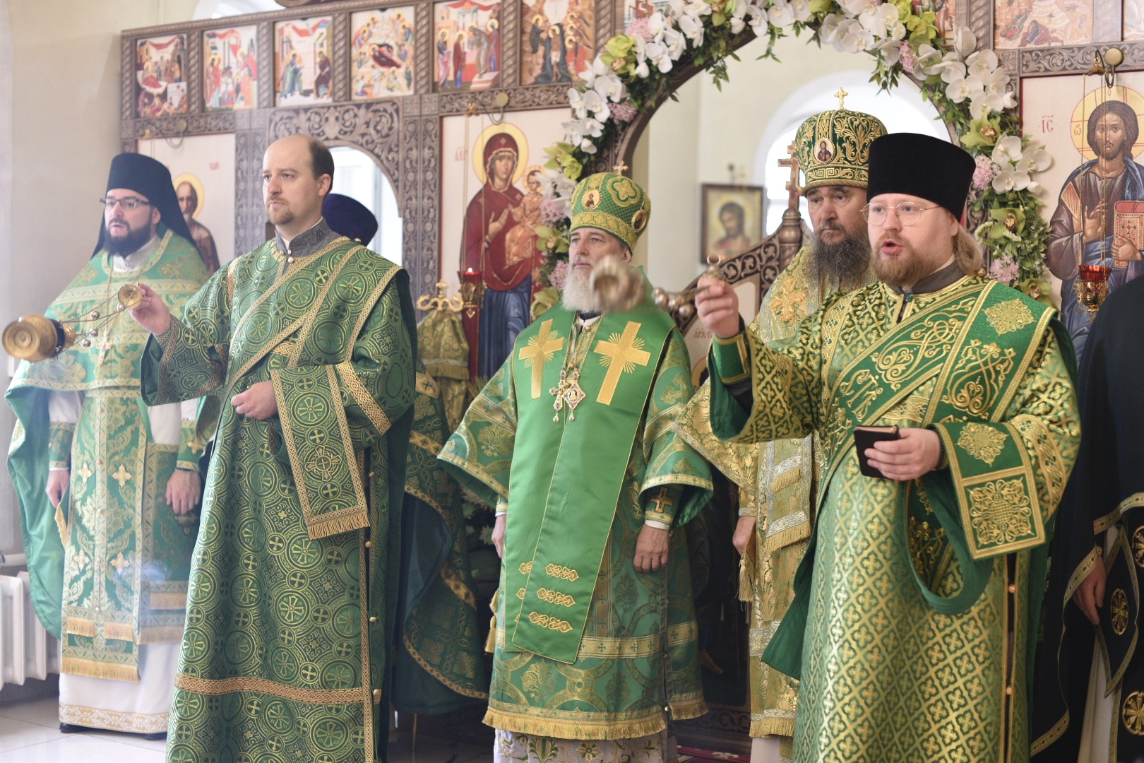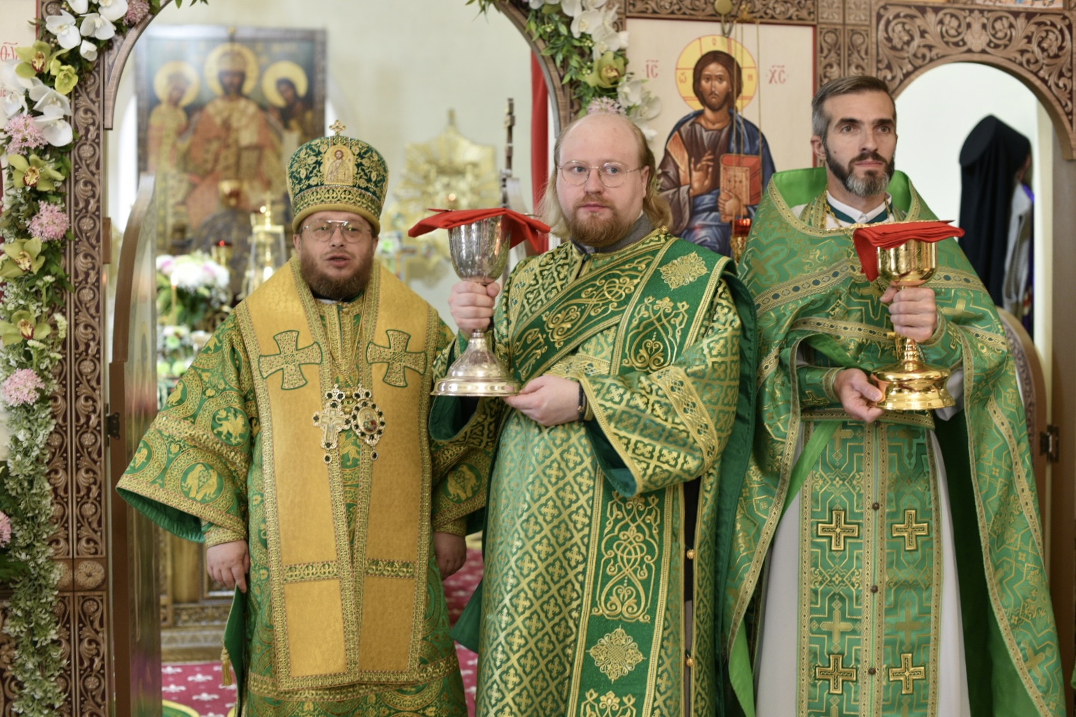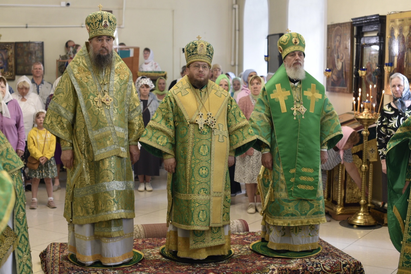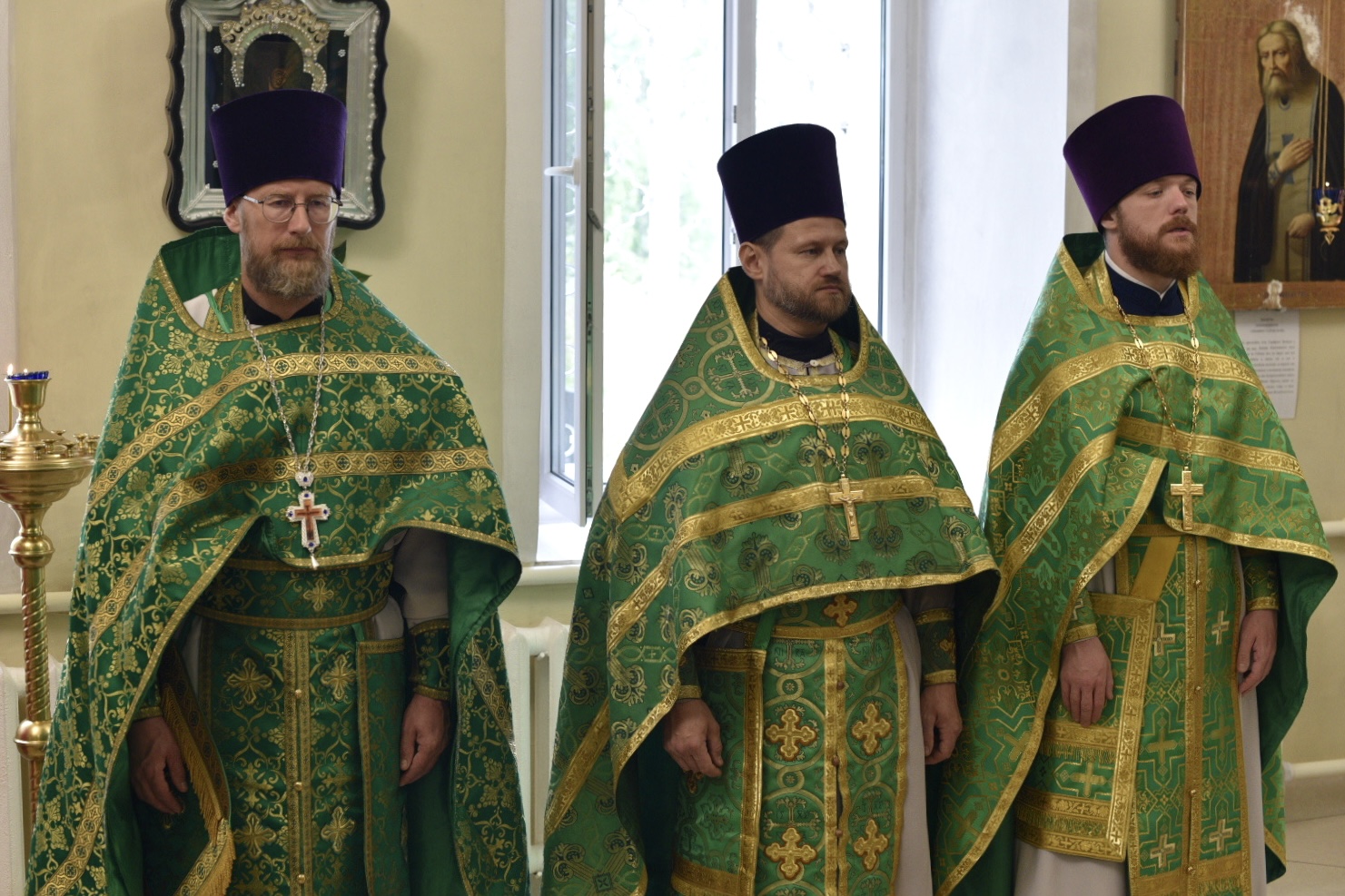 Преосвященным архипастырям сослужили благочинный Северного округа и настоятель Введенского храма архимандрит Владимир (Дяченко), благочинный Южного округа иеромонах Давид (Сивер), духовенство Яранской и Плесецкой епархий.