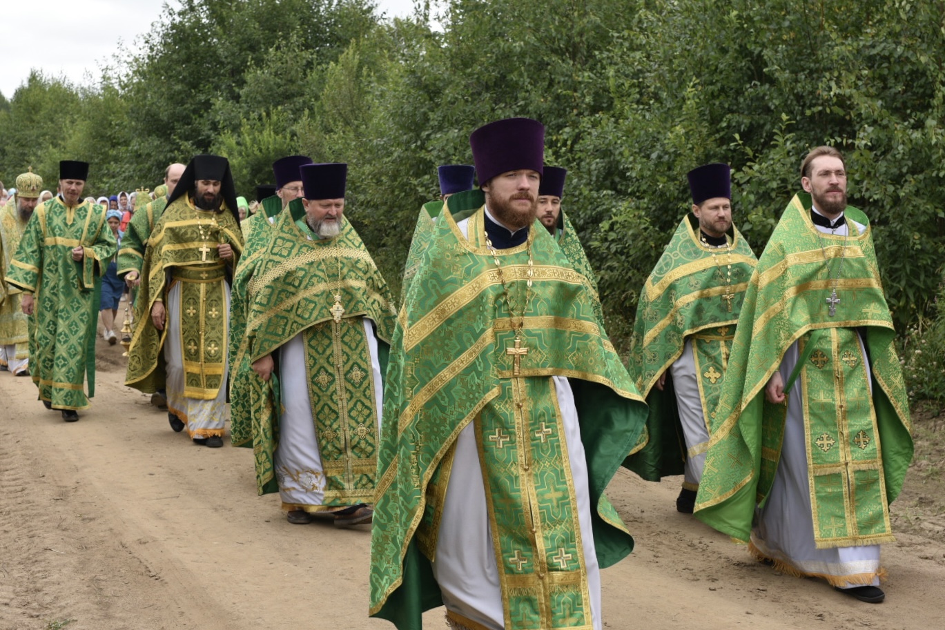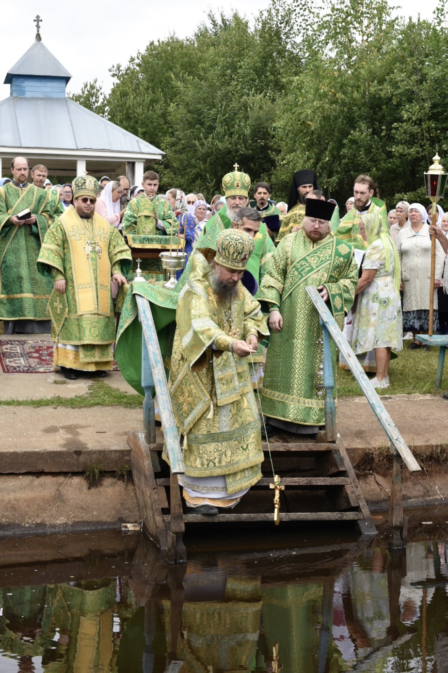 В конце участники богослужения прошли крестным ходом к реке Недуме. Там состоялся водосвятный молебен. По его окончании епископ Паисий окропил всех святой водой. Затем крестный ход вернулся в Введенский храм, где епископ Александр прочитал молитву преподобному Леониду у его святых мощей.
