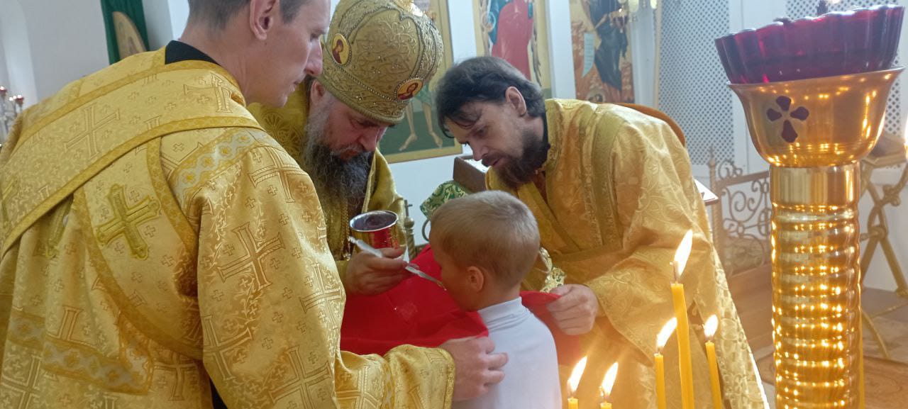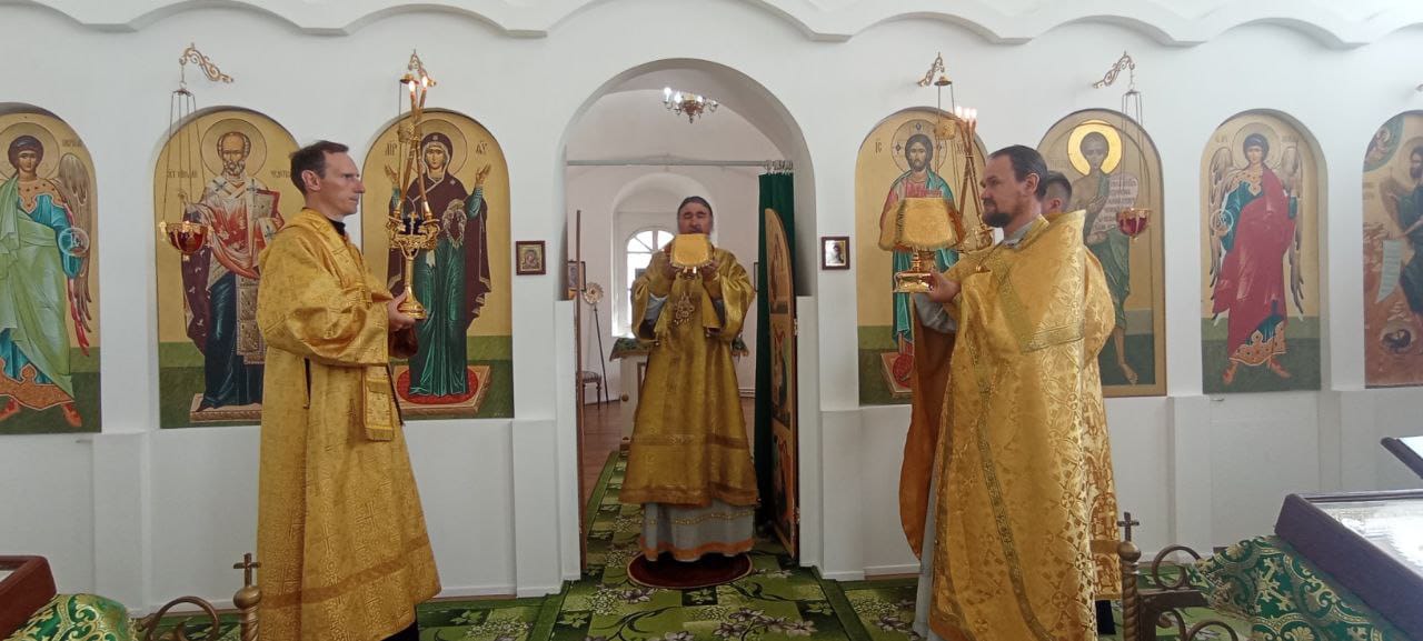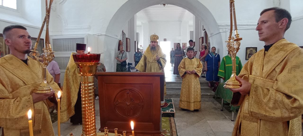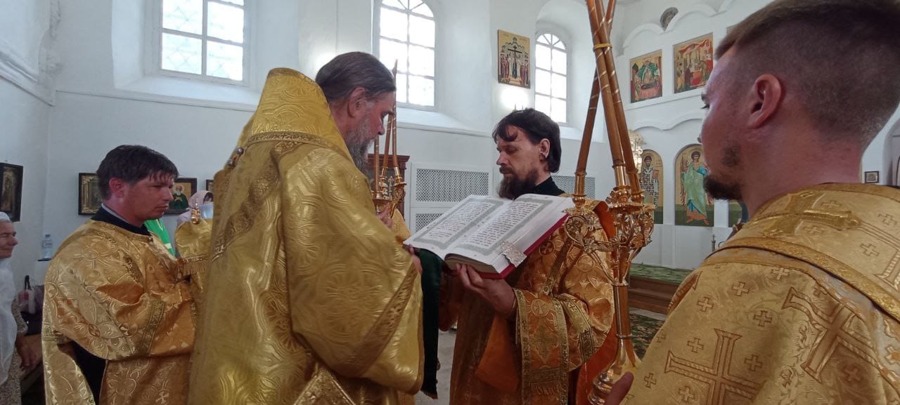 Владыке сослужили: ключарь Прокопьевского собора иерей Вячеслав Бураков, а также диакон Иван Холодилов.