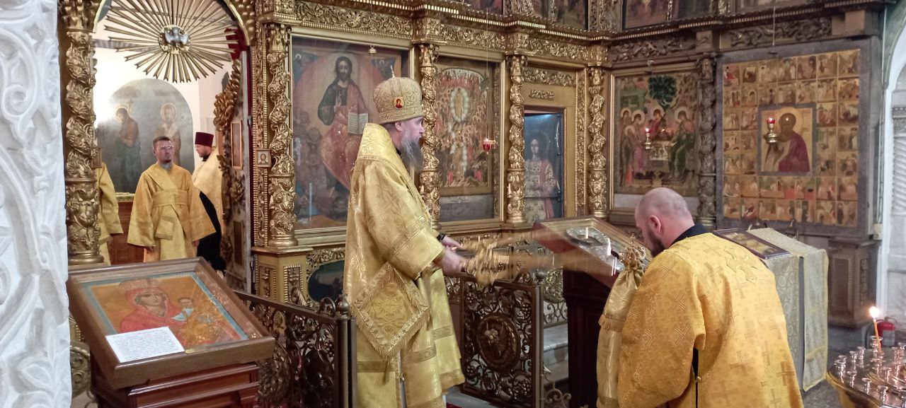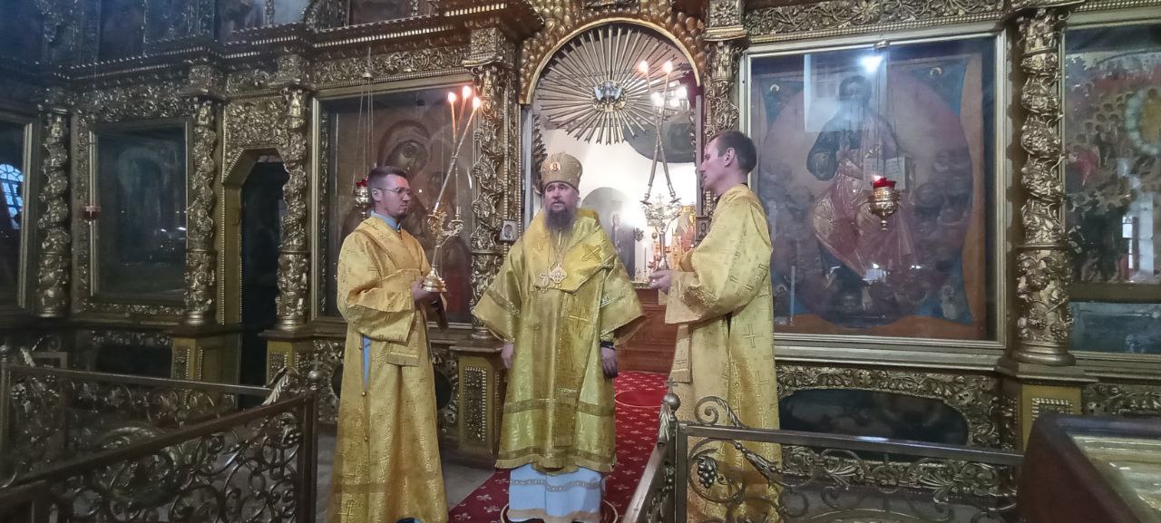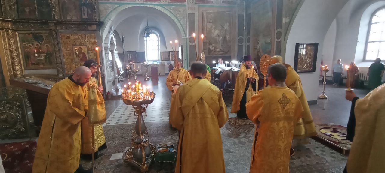 Владыке сослужили: ключарь Прокопьевского собора иерей Вячеслав Бураков, клирик Прокопьевского собора иерей Андрей Игнатьев, а также диакон Иван Холодилов.
