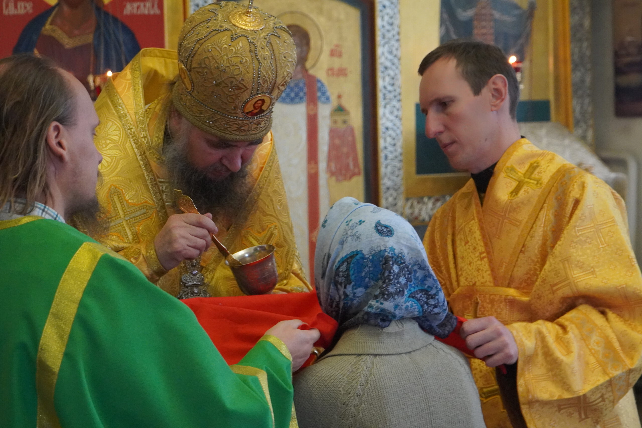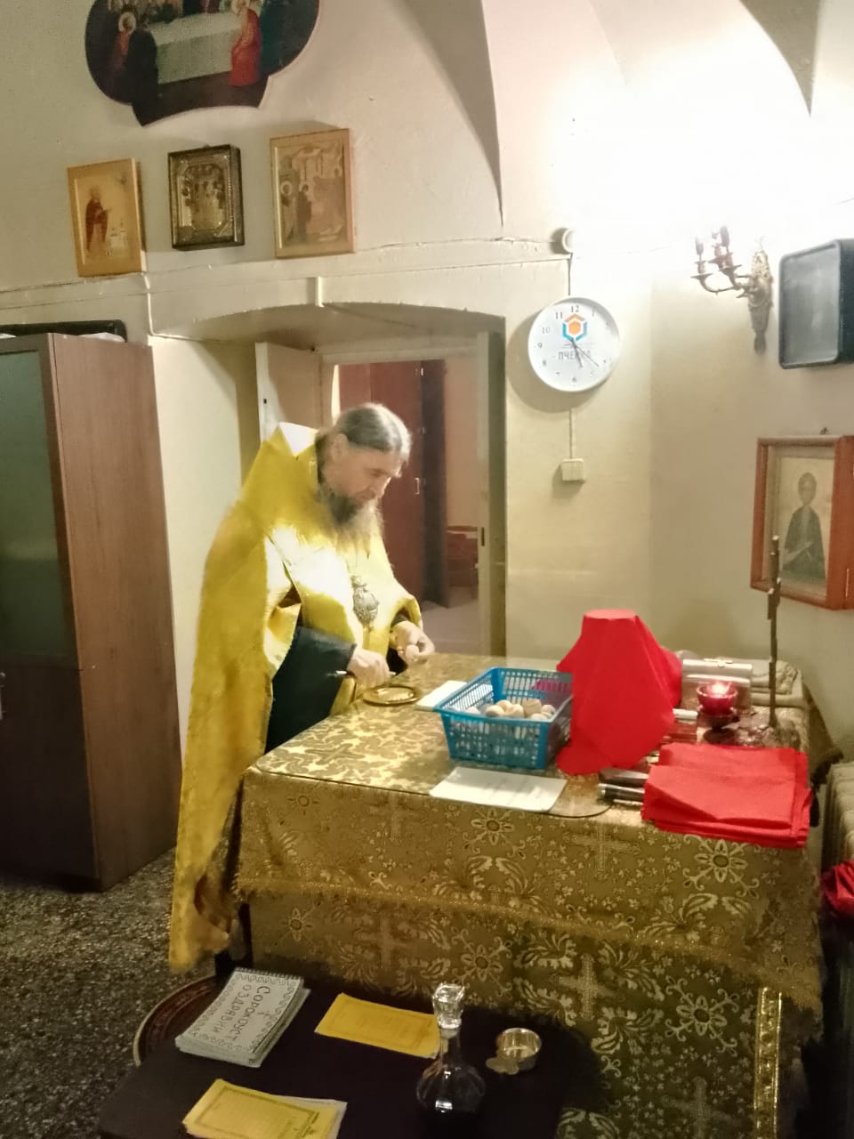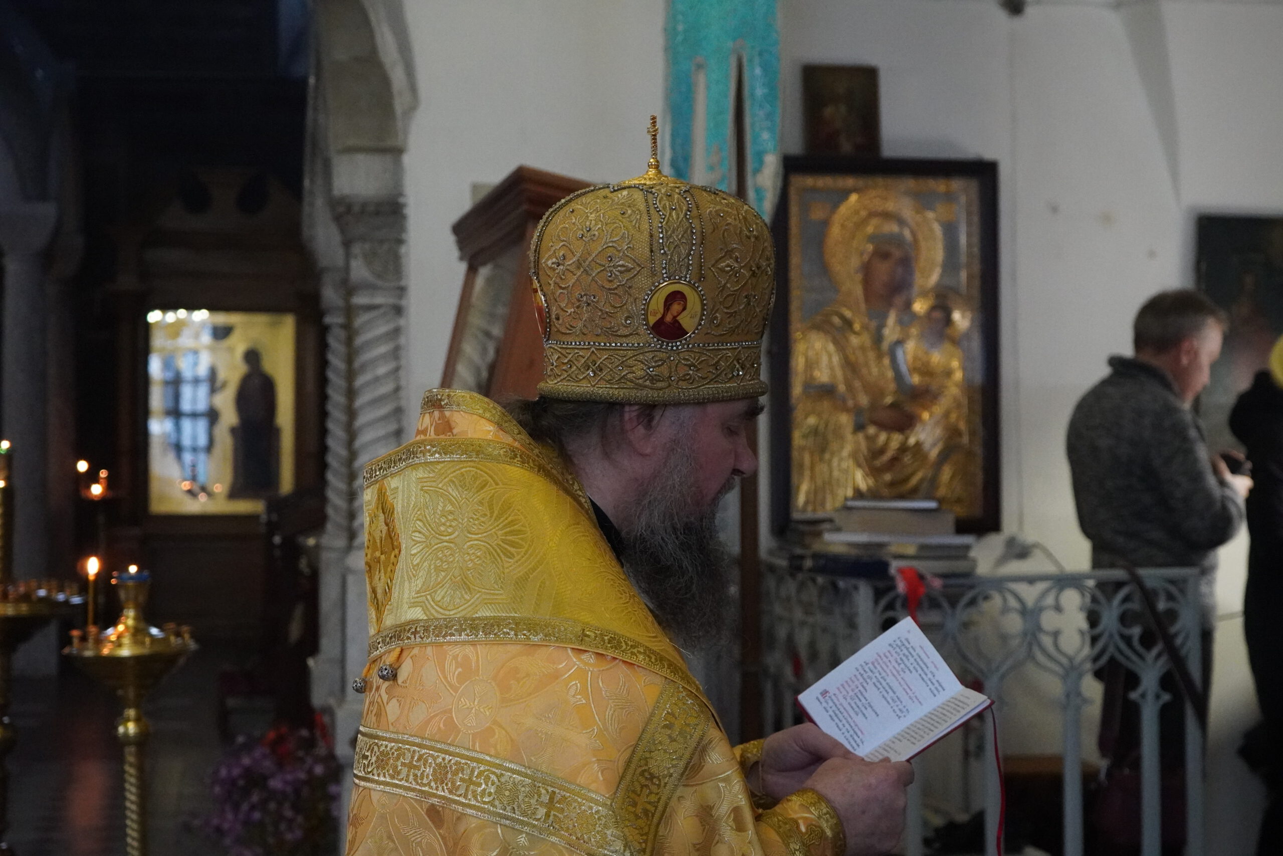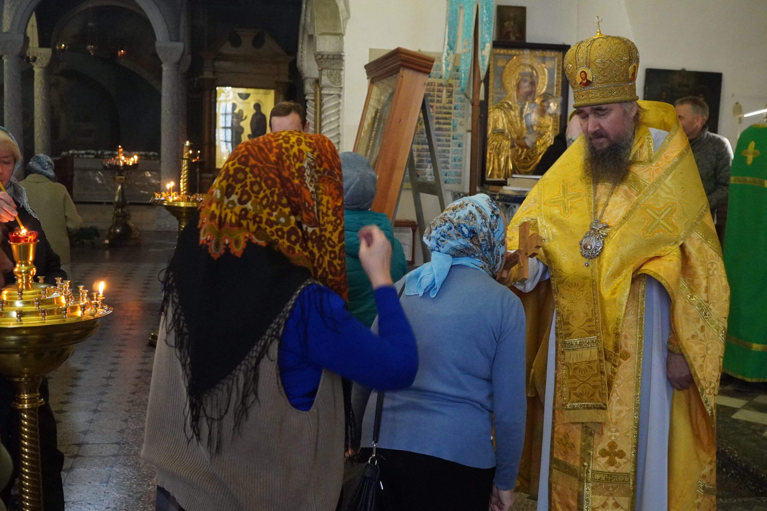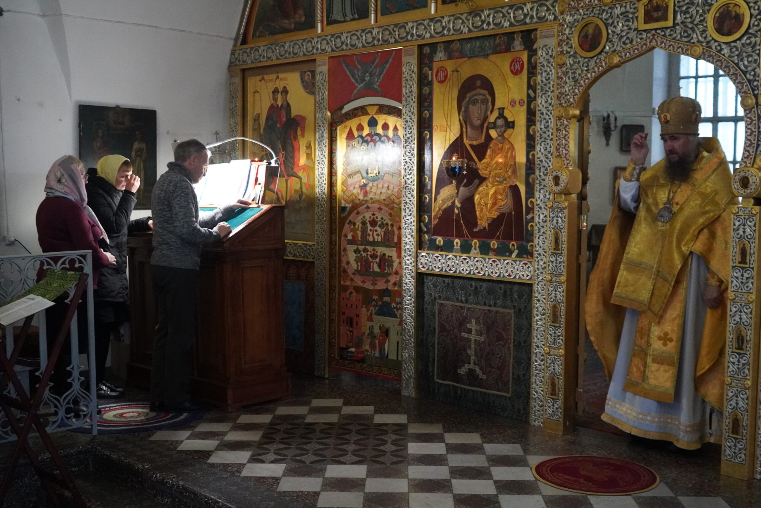 В четверг 23 октября епископ Великоустюжский и Тотемский Фотий совершил иерейским чином Божественную Литургию в Тихоновском приделе Кафедрального собора святого праведного Прокопия Устюжского. Накануне архиерей возглавил вечернее богослужение со славословием.