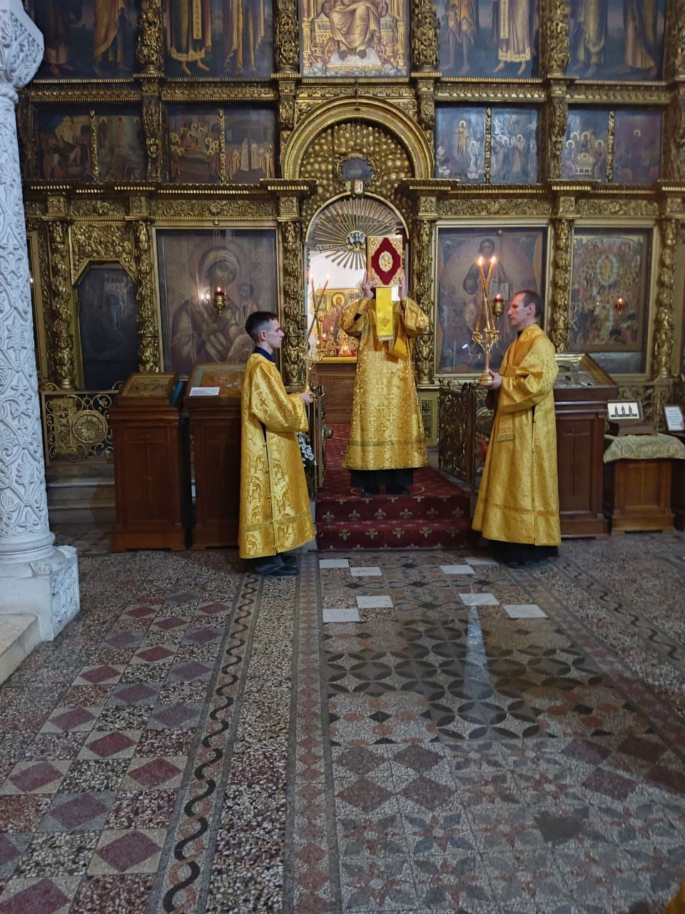 26 октября епископ Великоустюжский и Тотемский Фотий возглавил акафистное пение святому праведному Прокопию Устюжскому в Кафедральном соборе Великого Устюга.