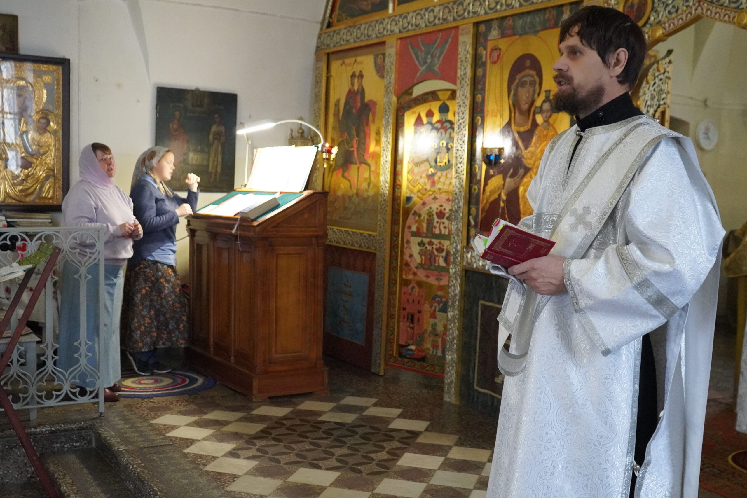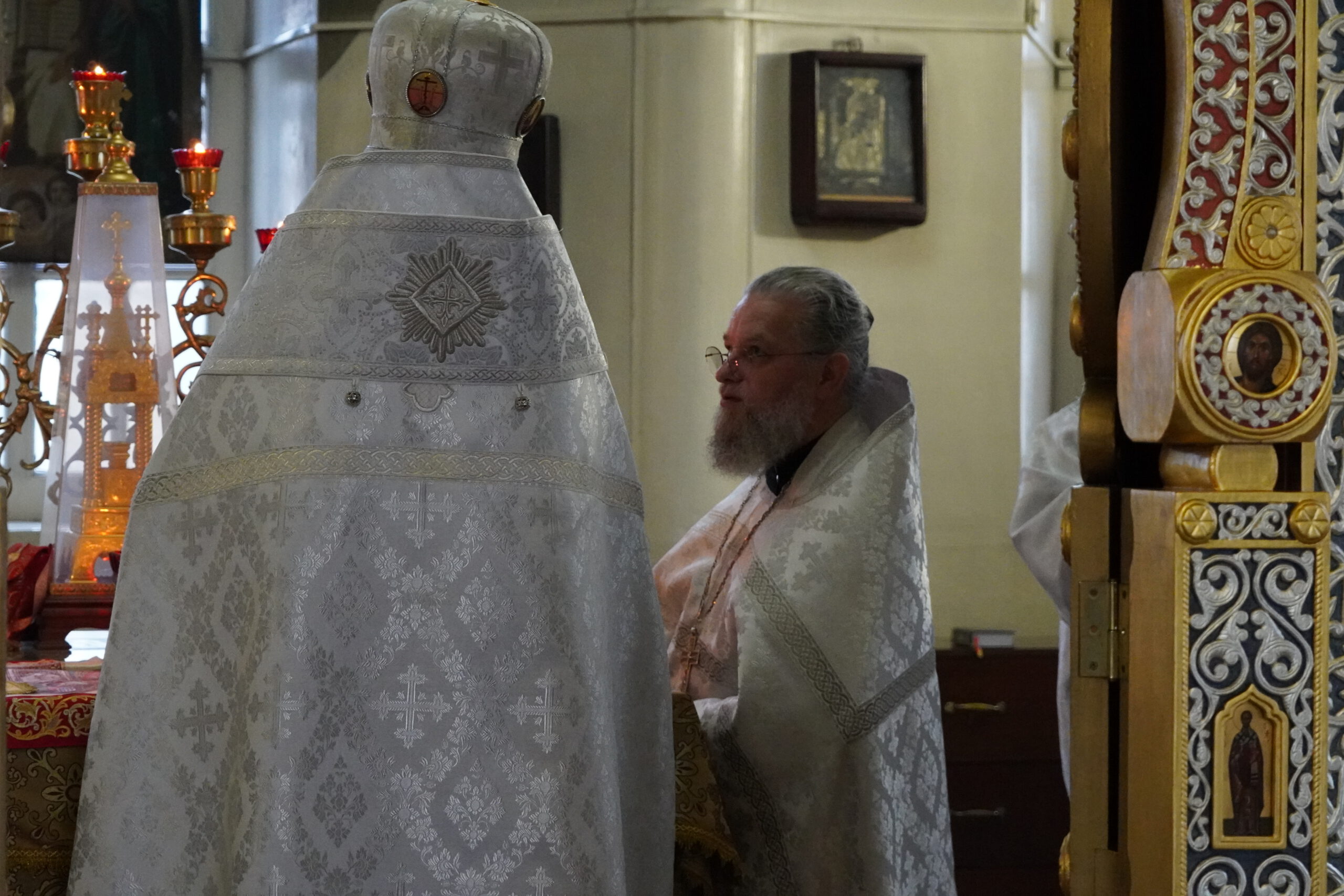 Владыке сослужили: настоятель храма Сошествия Святого Духа на апостолов в Комарово Санкт-Петербурской епархии иерей Александр Энис, а также штатный клирик диакон Иоанн Холодилов.