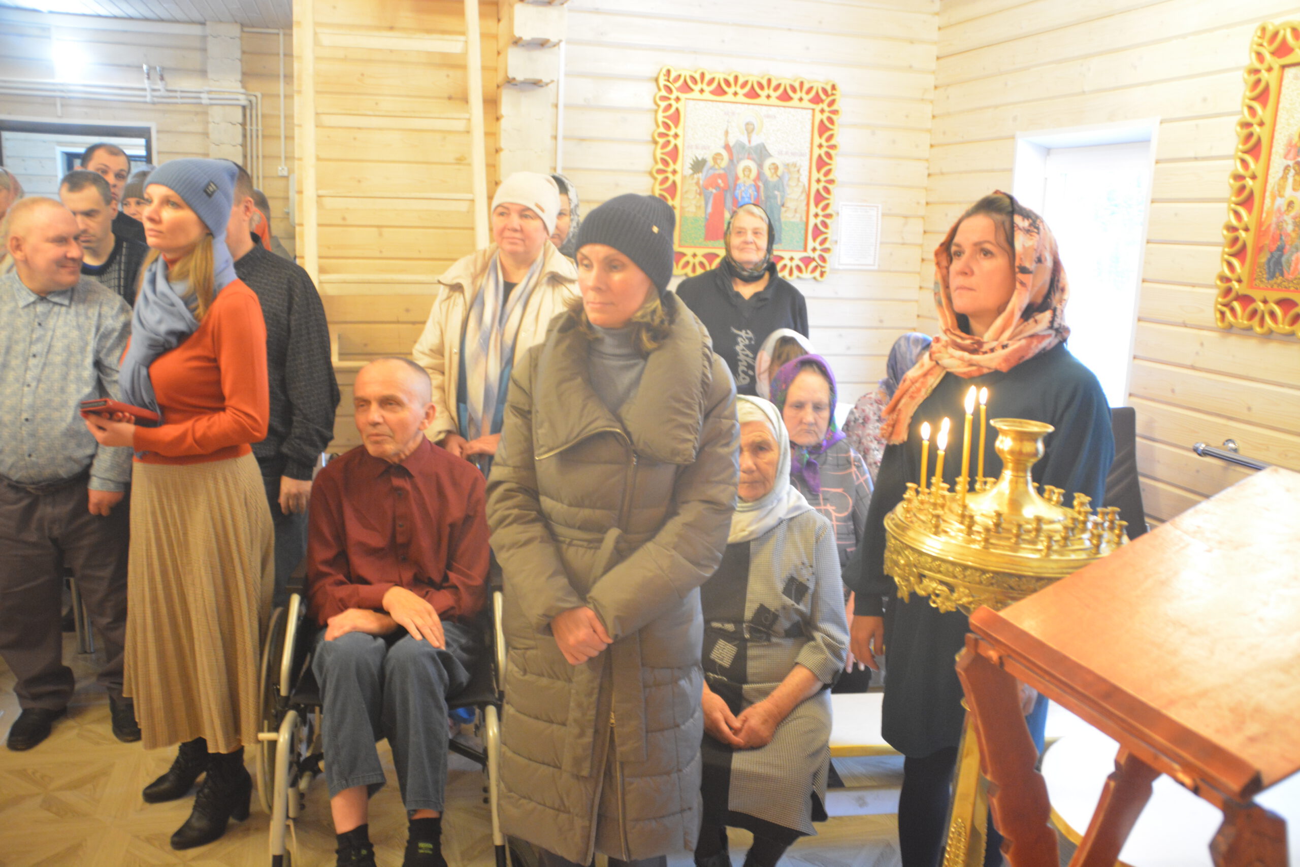 За Литургией Преосвященный Фотий произнёс проповедь, а после богослужения отправился навестить опекаемых Красавинского Дома Социального обслуживания. Вместе с протоиереем Михаилом Волковым, который окормляет Дом Социального обслуживания, владыка навестил жителей учреждения в их комнатах. Архиерей побеседовал с опекаемыми, вручил им образа святых и окропил святой водой.