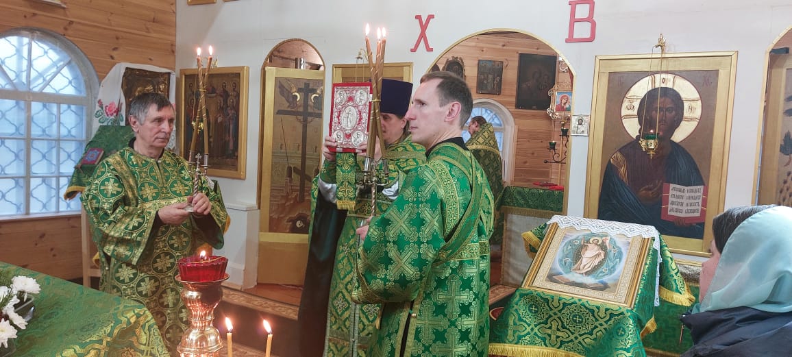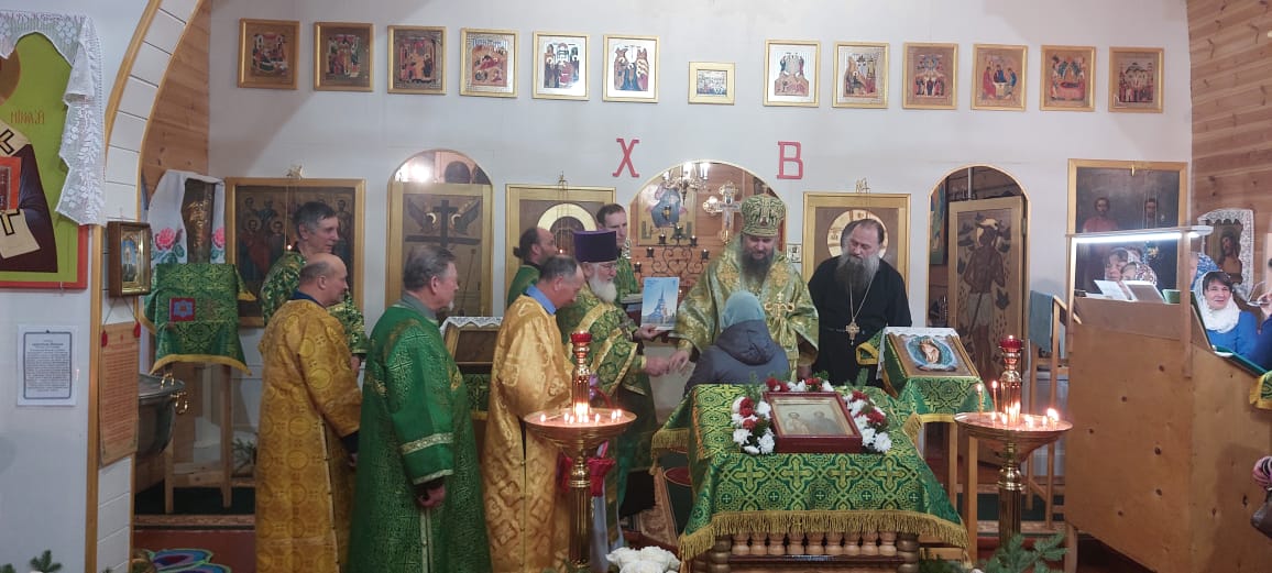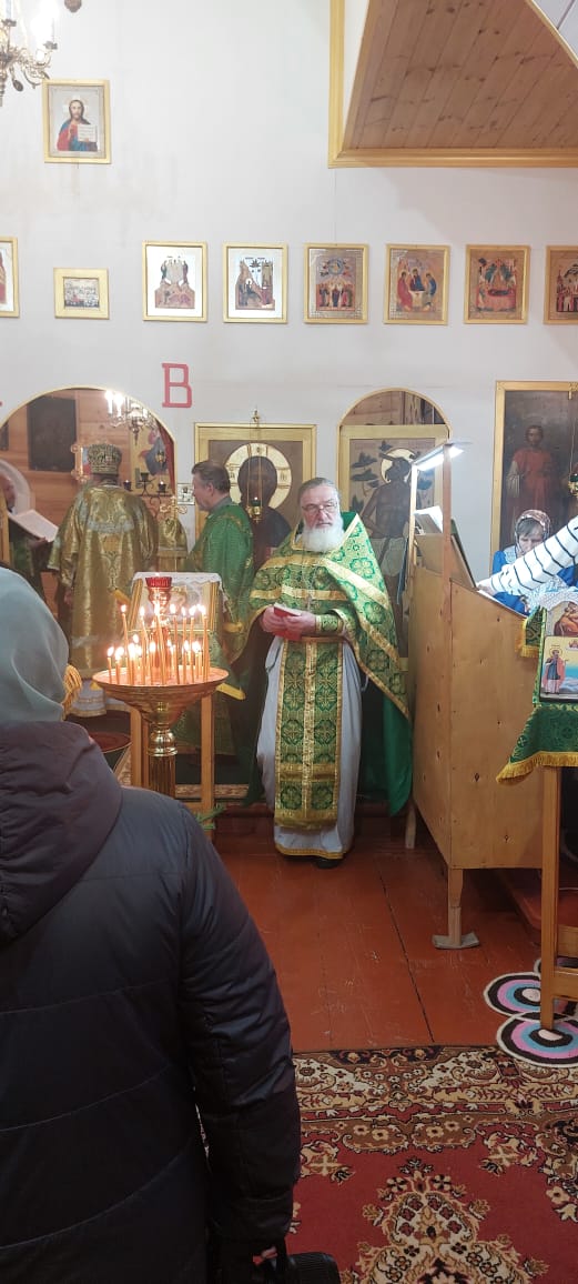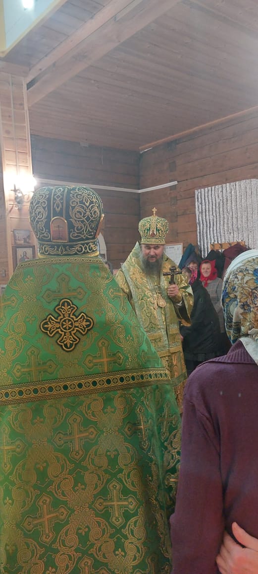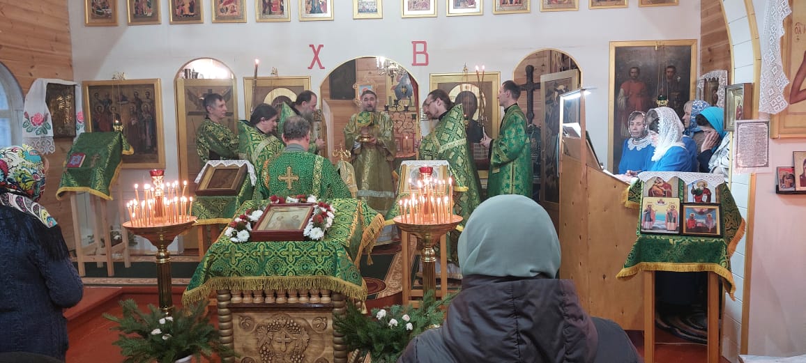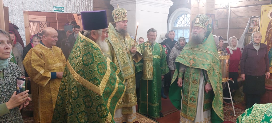 Владыке сослужили: настоятель храма Святых Косьмы и Дамиана, иерей Иоанн Жирохов, настоятель храма Рождества Христова в Тотьме протоиерей Георгий Титов, иерей Александр Мелков, благочинный Никольского округа, а также иерей Иоанн Алешин, настоятель Спасской Леденгской в Бабушкине.