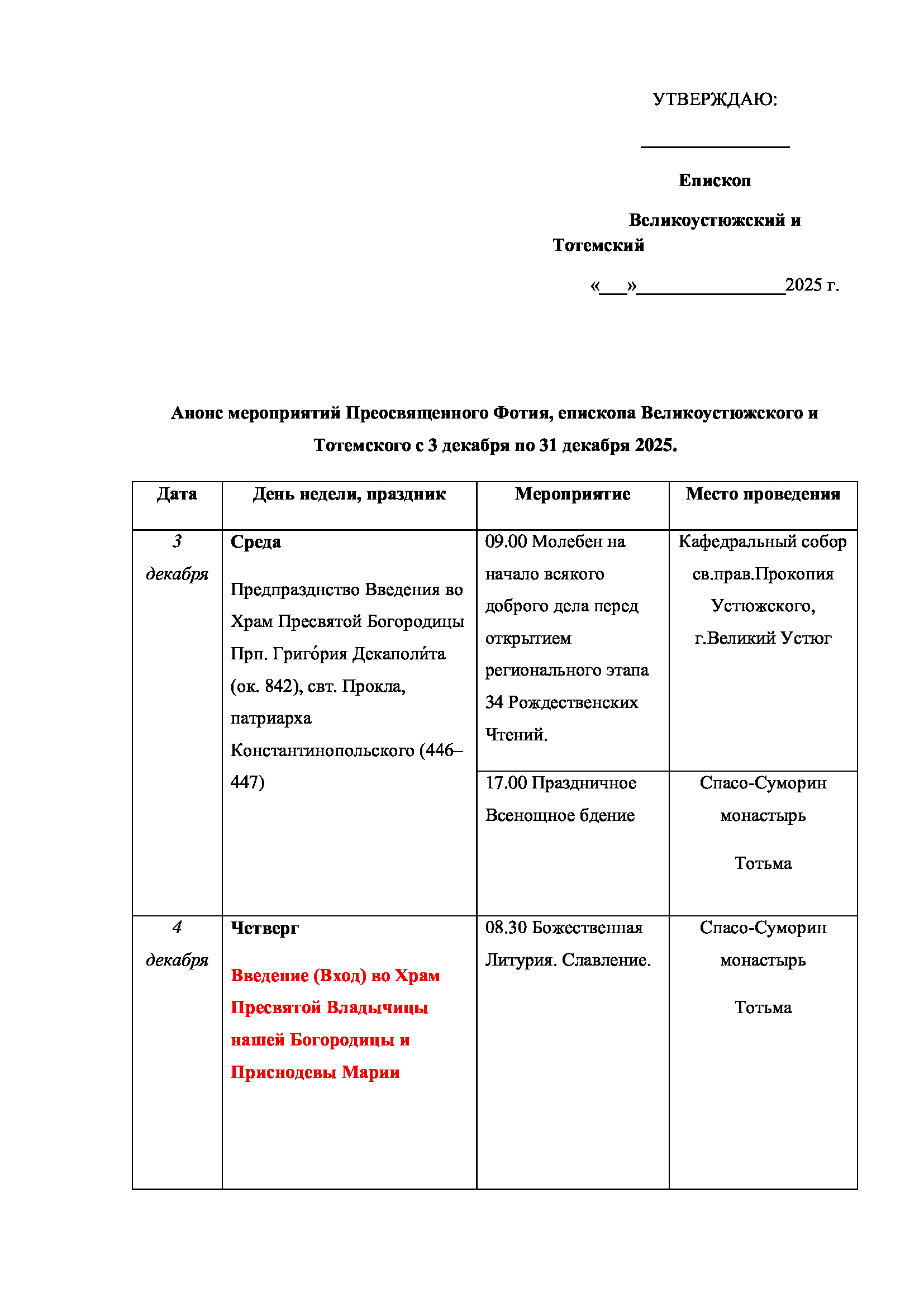 С 20 по 22 марта в Великом Устюге, по благословению