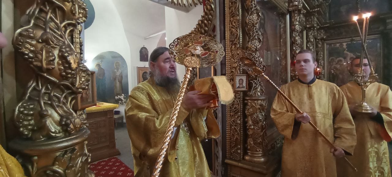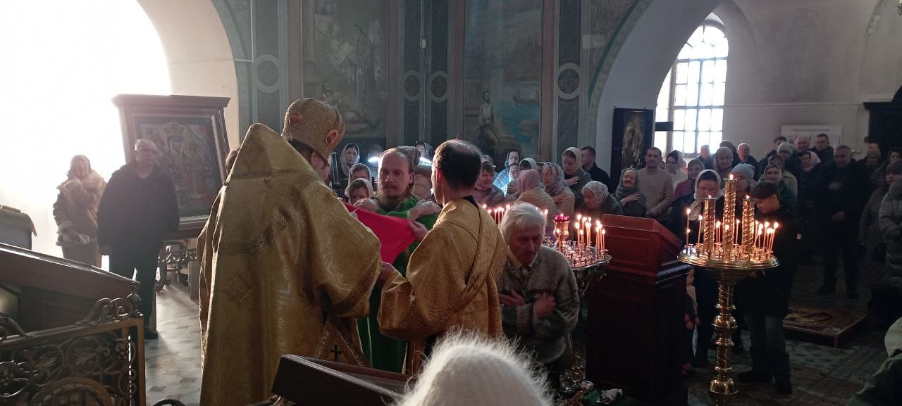 Владыке сослужили: ключарь Прокопьевского собора иерей Вячеслав Бураков, клирик Прокопьевского собора иерей Андрей Игнатьев, а также диакон Иван Холодилов.