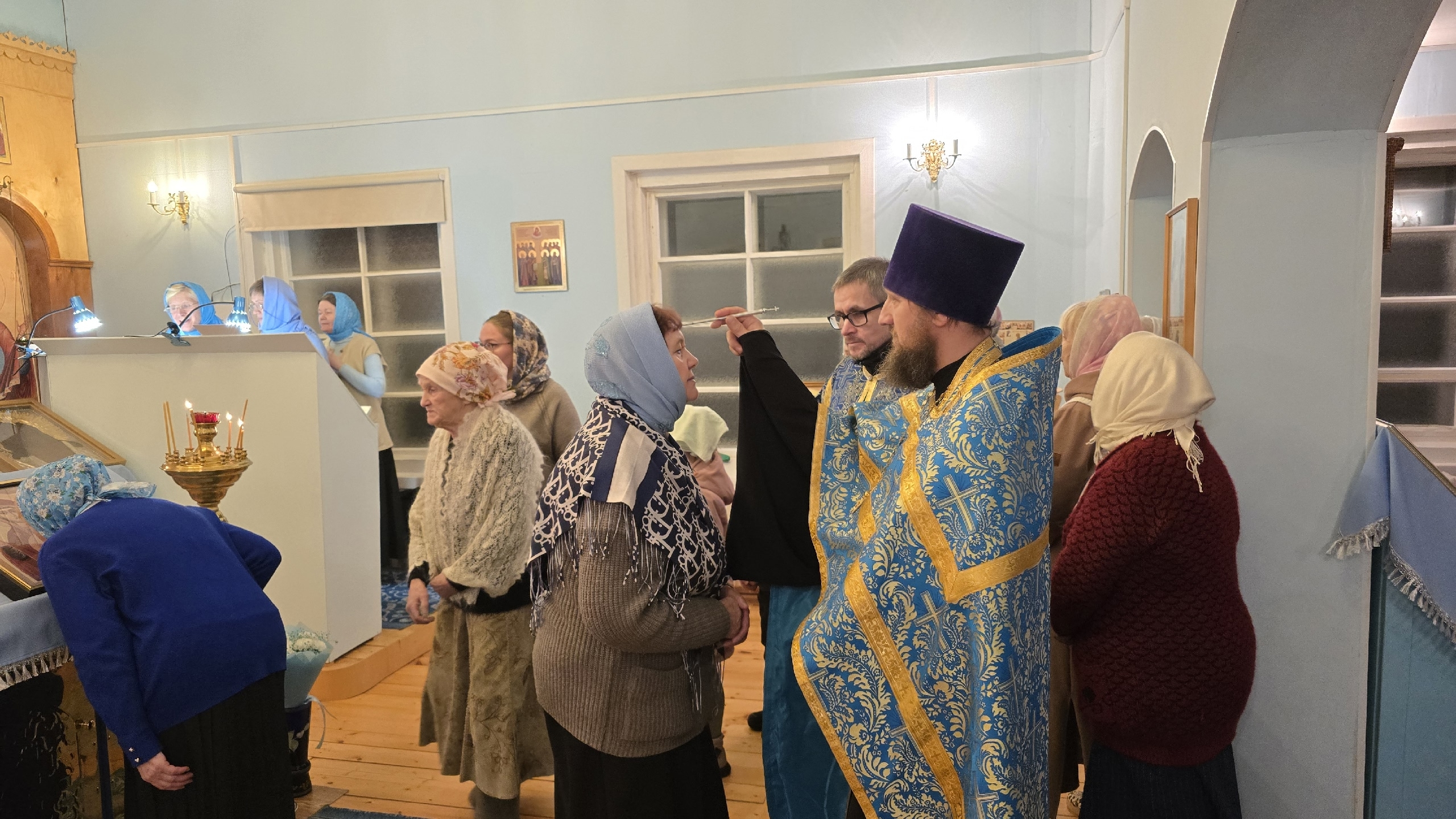 Владыке сослужили: настоятель храма Николая Чудотворца в Тарноге протоиерей Николай Крученых, настоятель храма Рождества Христова в Тотьме протоиерей Георгий Титов, настоятель храма Богоявления в Городищне иерей Александр Чудинов, настоятель храма Агапита Маркушевского в Нюксенице иерей Максим Кривошанов.