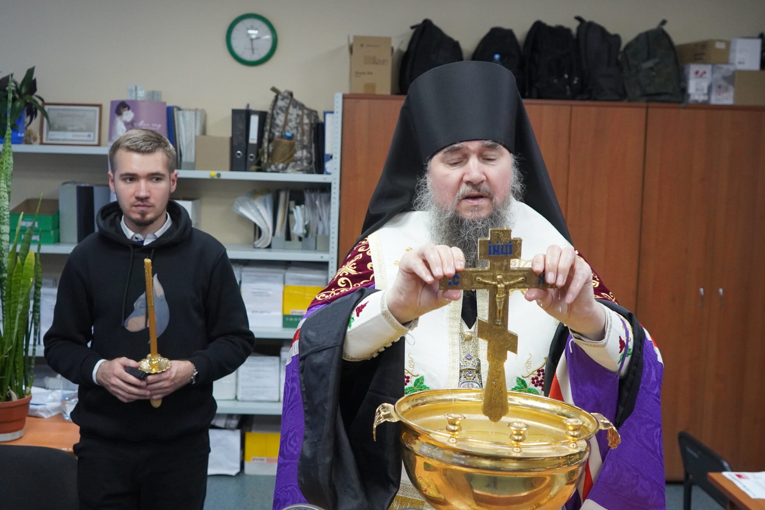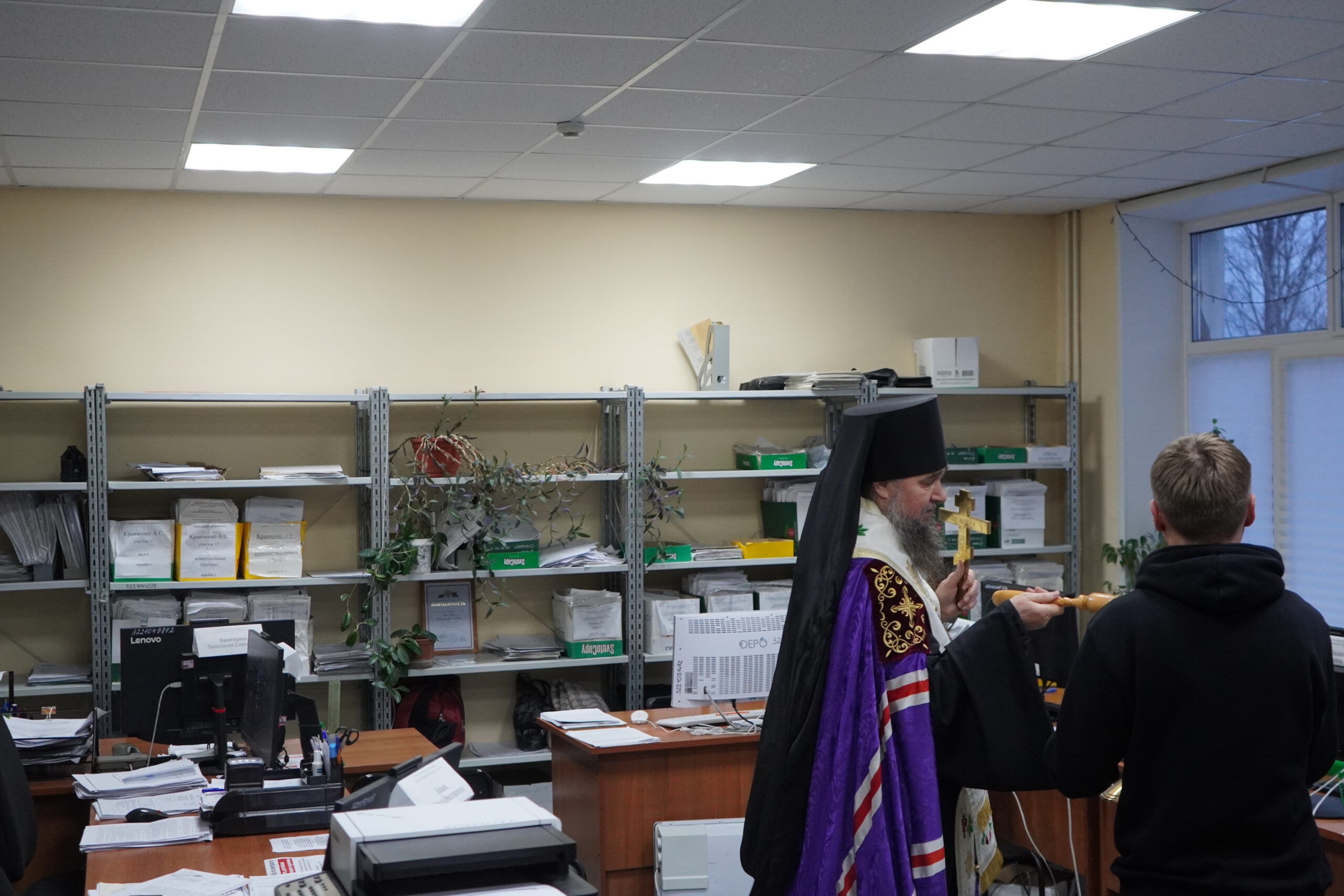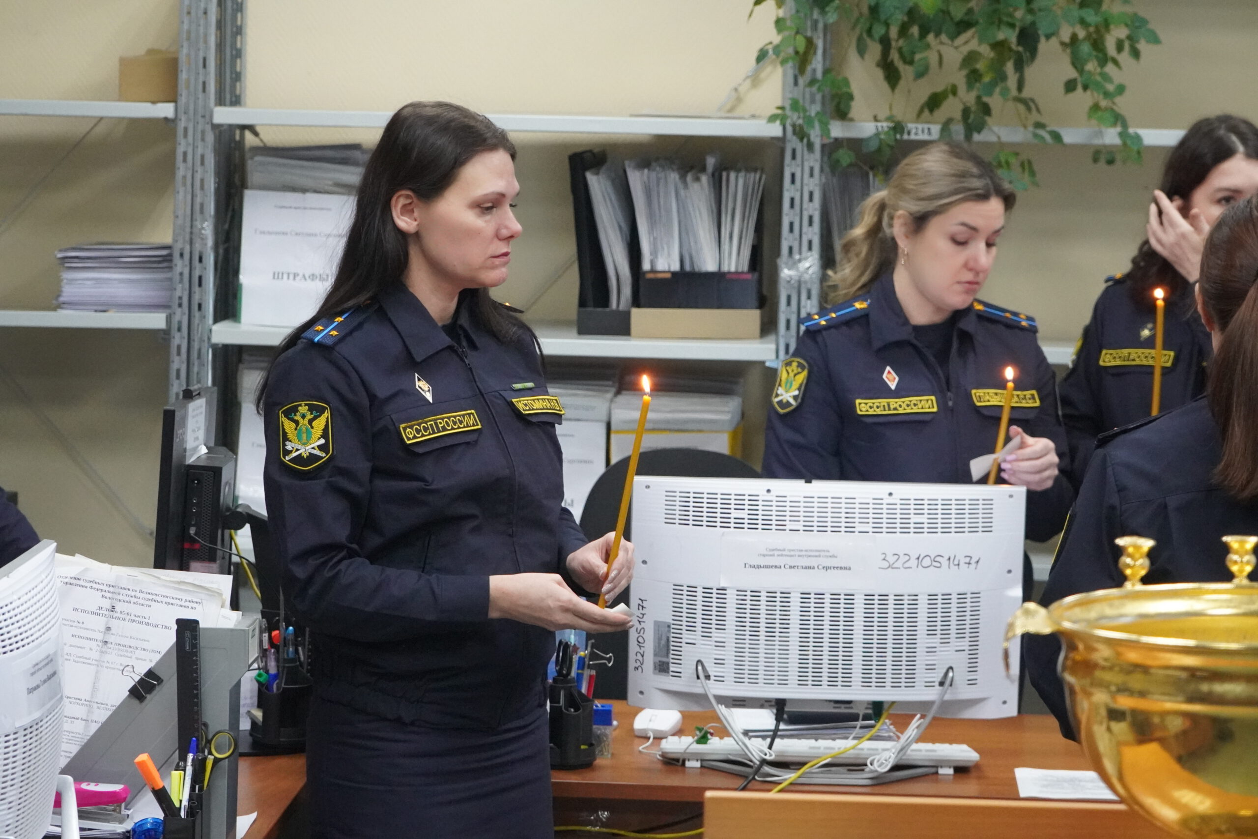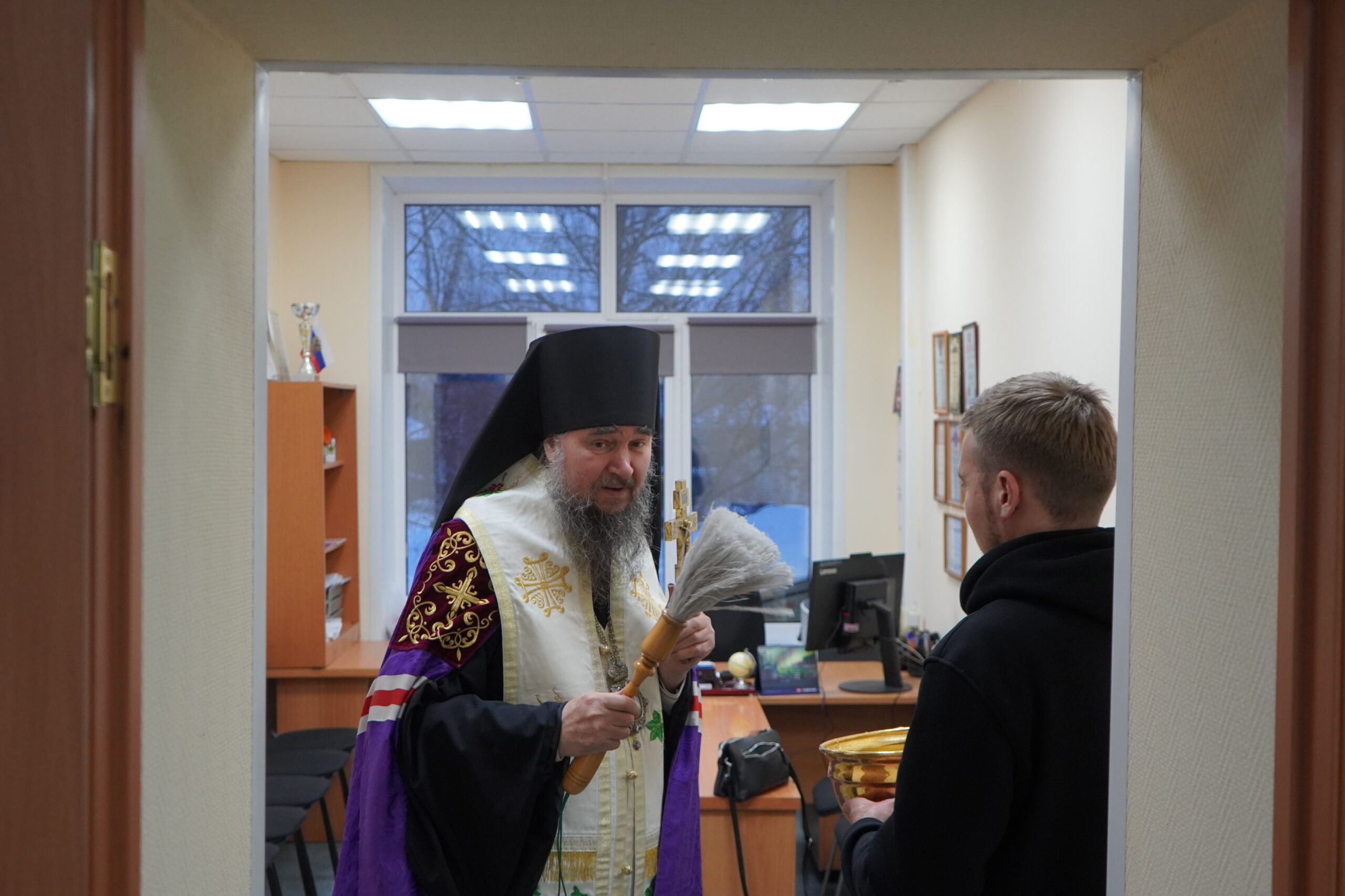 В минувшую пятницу 12 декабря епископ Великоустюжский и Тотемский Фотий посетил судебных приставов Великого Устюга. В здании, где они размещаются недавно завершился ремонт и руководство учреждения приняло решение освятить помещения. Владыка побеседовал с приставами, после чего совершил молебен и окропил святою водою все помещения здания службы приставов, а также подарил образ Христа и Богоматери. После молебна состоялась встреча архиерея с Ириной Александровной Салминой — главным судебным приставом Вологодской области и начальником устюгского отделения Игорем Александровичем Гладышевым, где собравшиеся обсудили возможности сотрудничества епархии и службы судебных приставов.