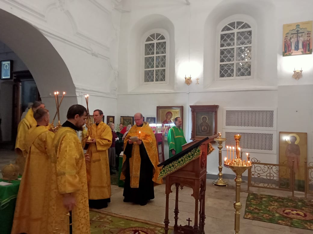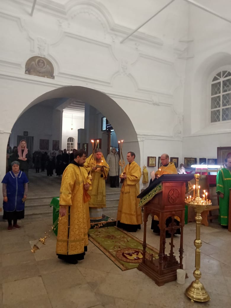 Владыке сослужили: клирик Прокопьевского собора иерей Андрей Игнатьев, а также диакон Иван Холодилов.