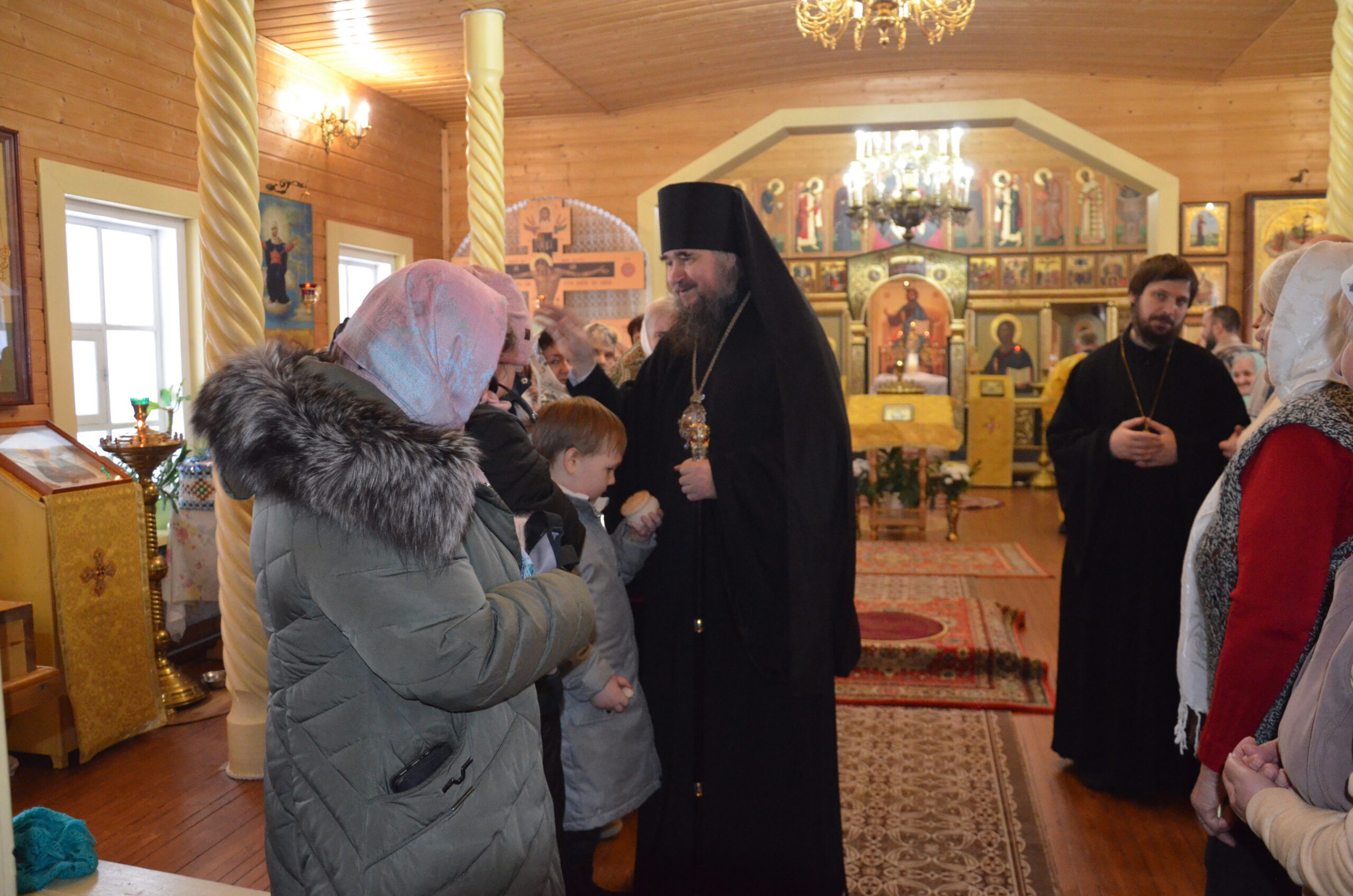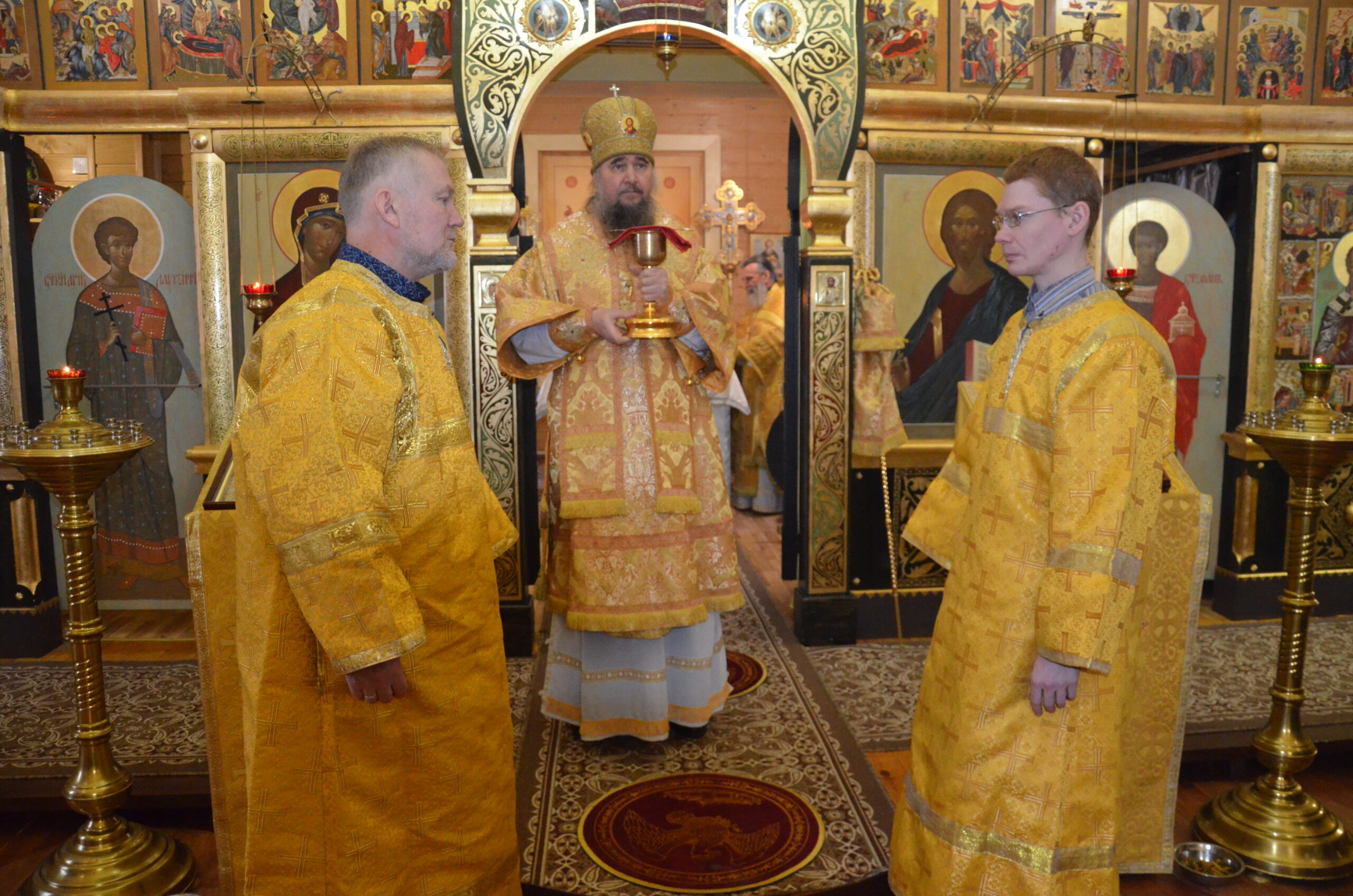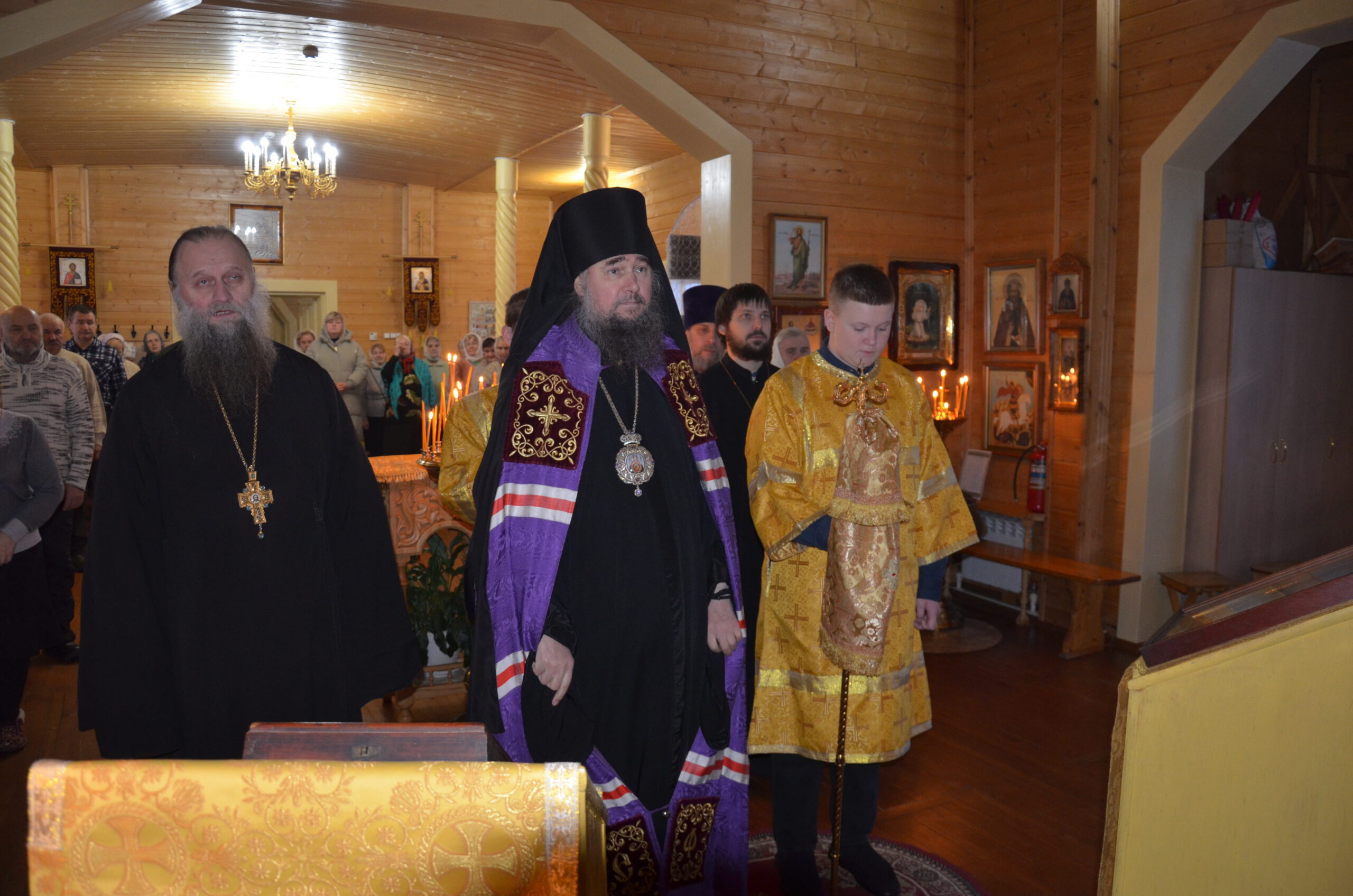 Владыке сослужили: настоятель храма Николая Чудотворца протоиерей Николай Кручёных, настоятель храма Рождества Христова в Тотьме протоиерей Георгий Титов, настоятель храма Вассиана Тиксненского в Юбилейном иерей Серафим Розин, а также настоятель храма Богоявления в Городищне иерей Александр Чудинов.