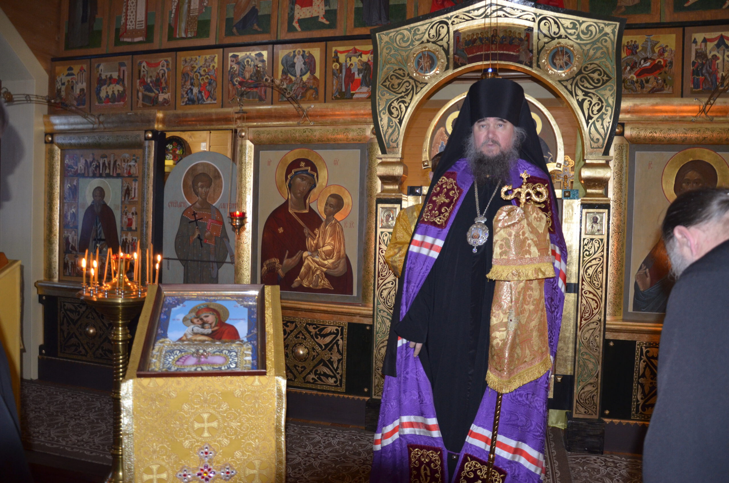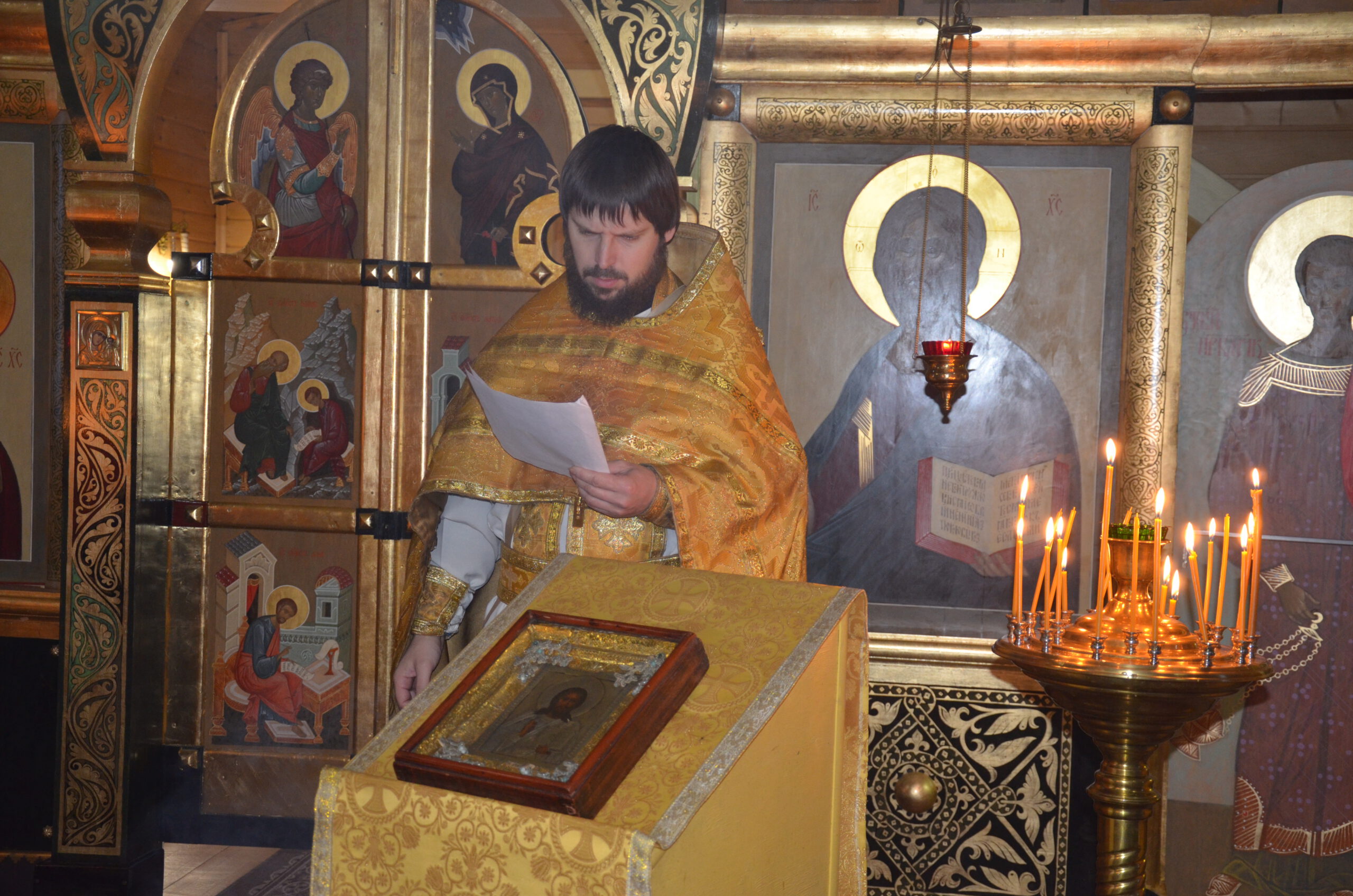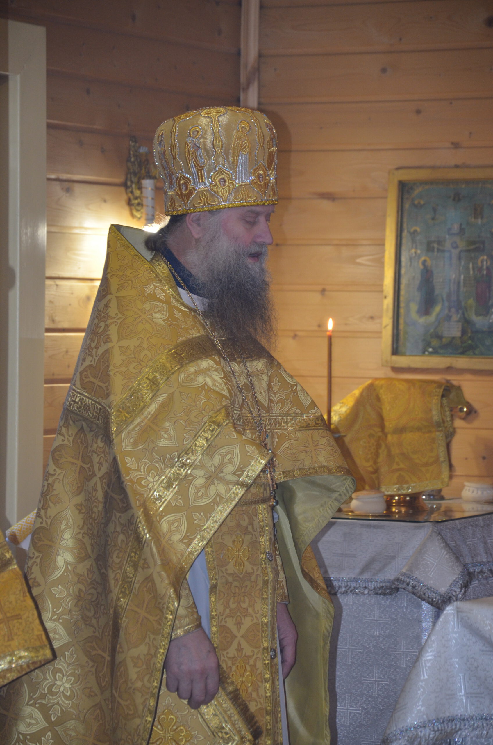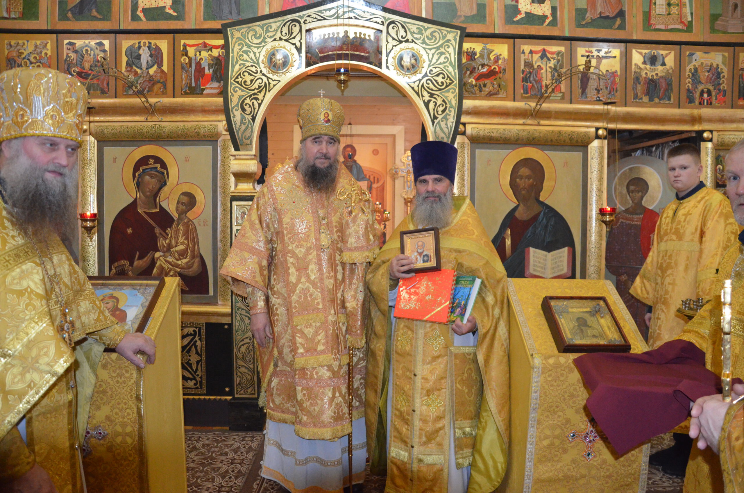 За Литургией Преосвященный Фотий поздравил настоятеля храма Николая Кручёных с двадцатилетием иерейской хиротонии, и подарил ему образ святителя Николая, а также произнёс проповедь: