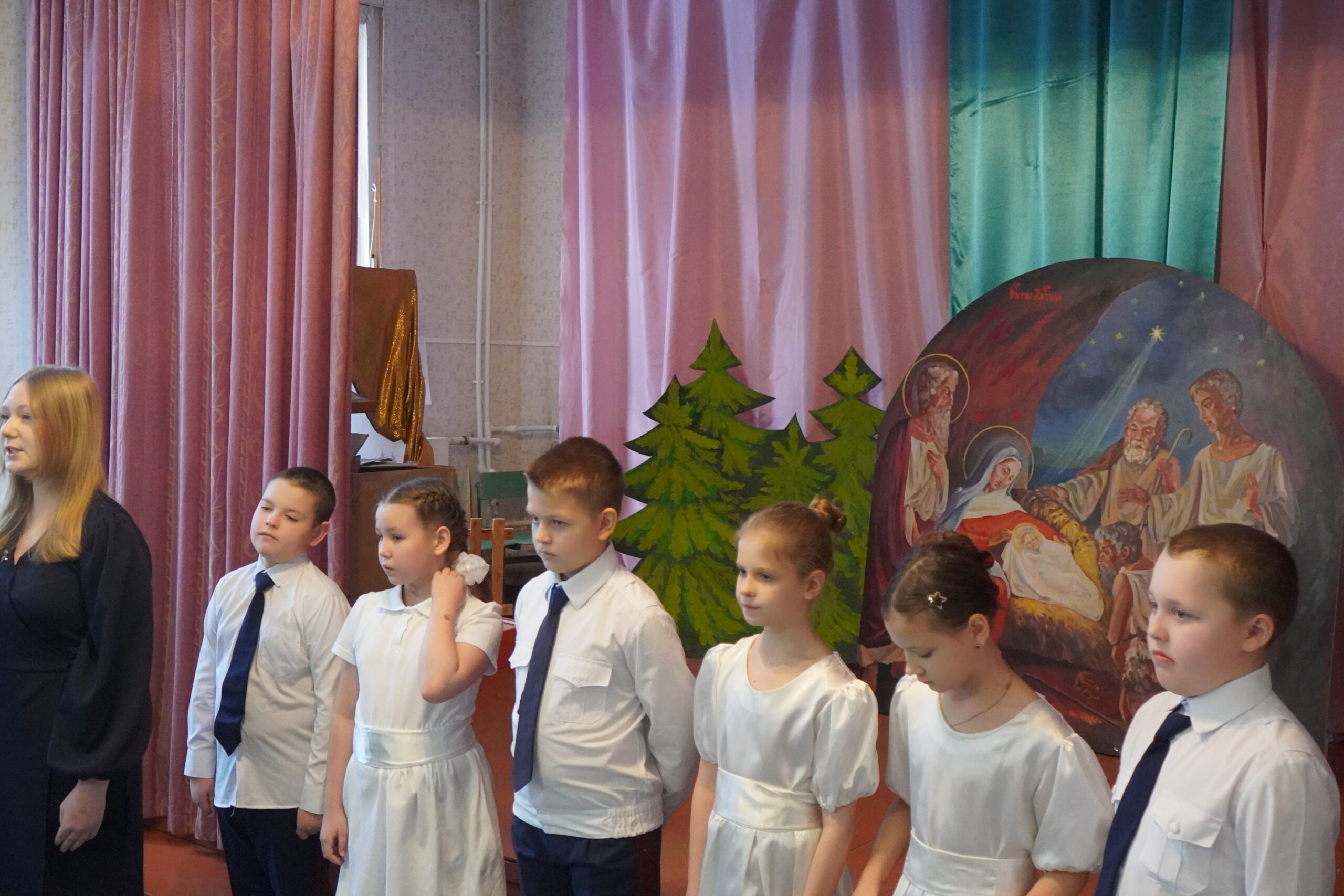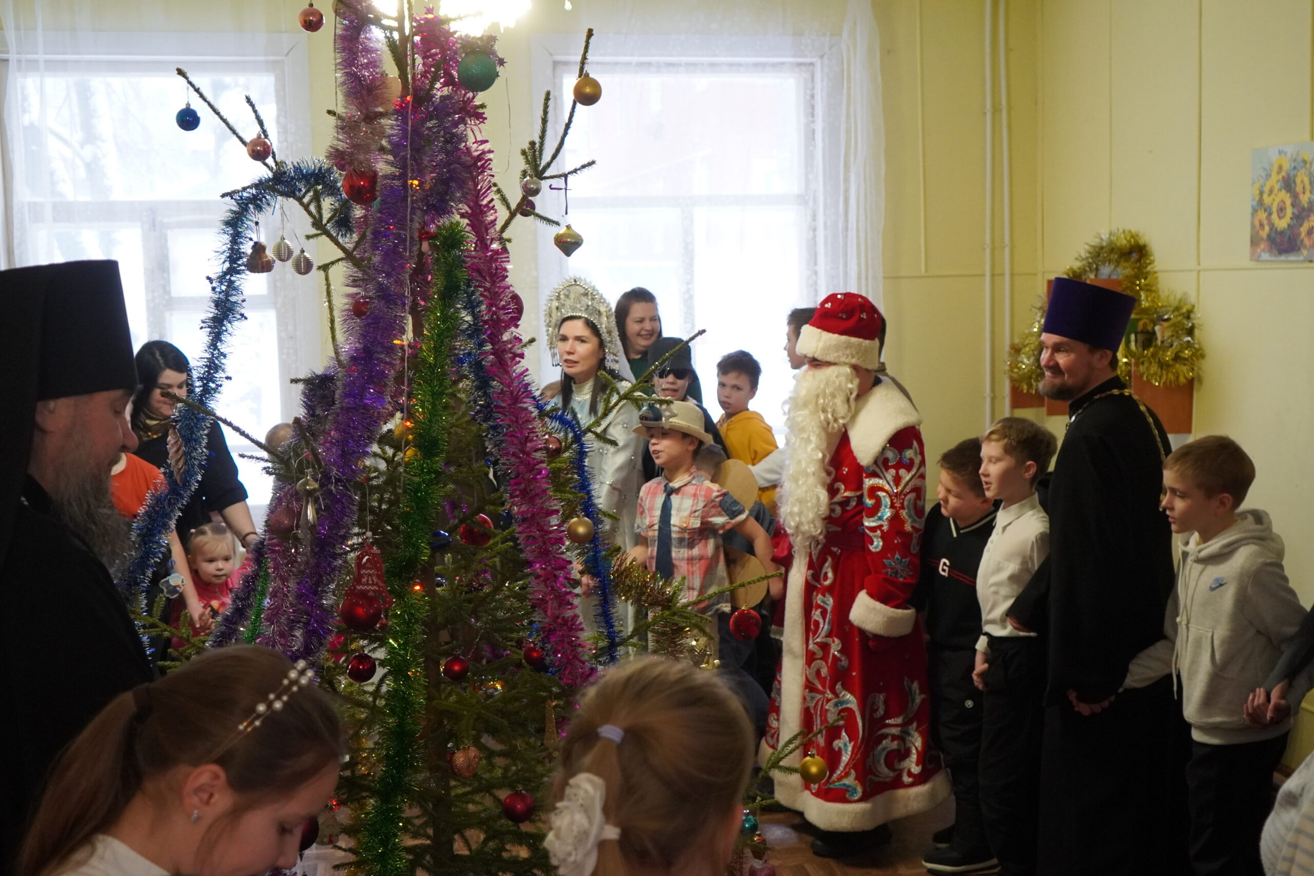 В день Рождества Христова в здании воскресной школы Прокопьевского собора Великого Устюга состоялась традиционная рождественская ёлка. В ней приняли участие ученики воскресной школы, ребята из школы №2 с кадетскими классами, родители и педагоги.