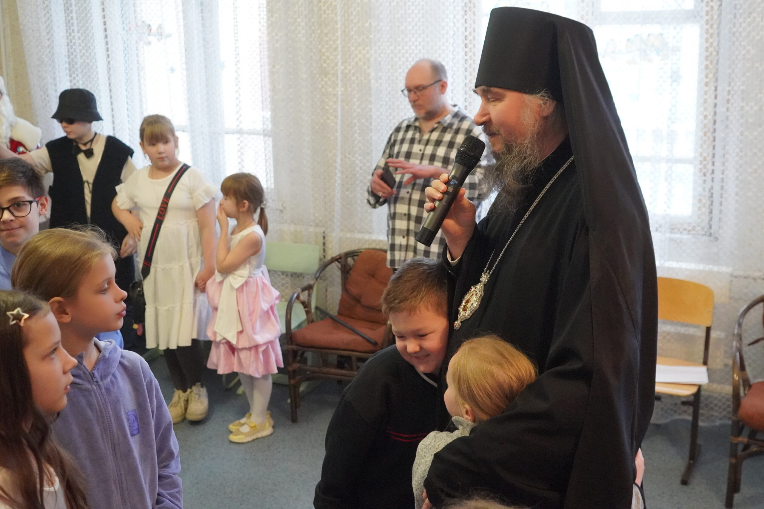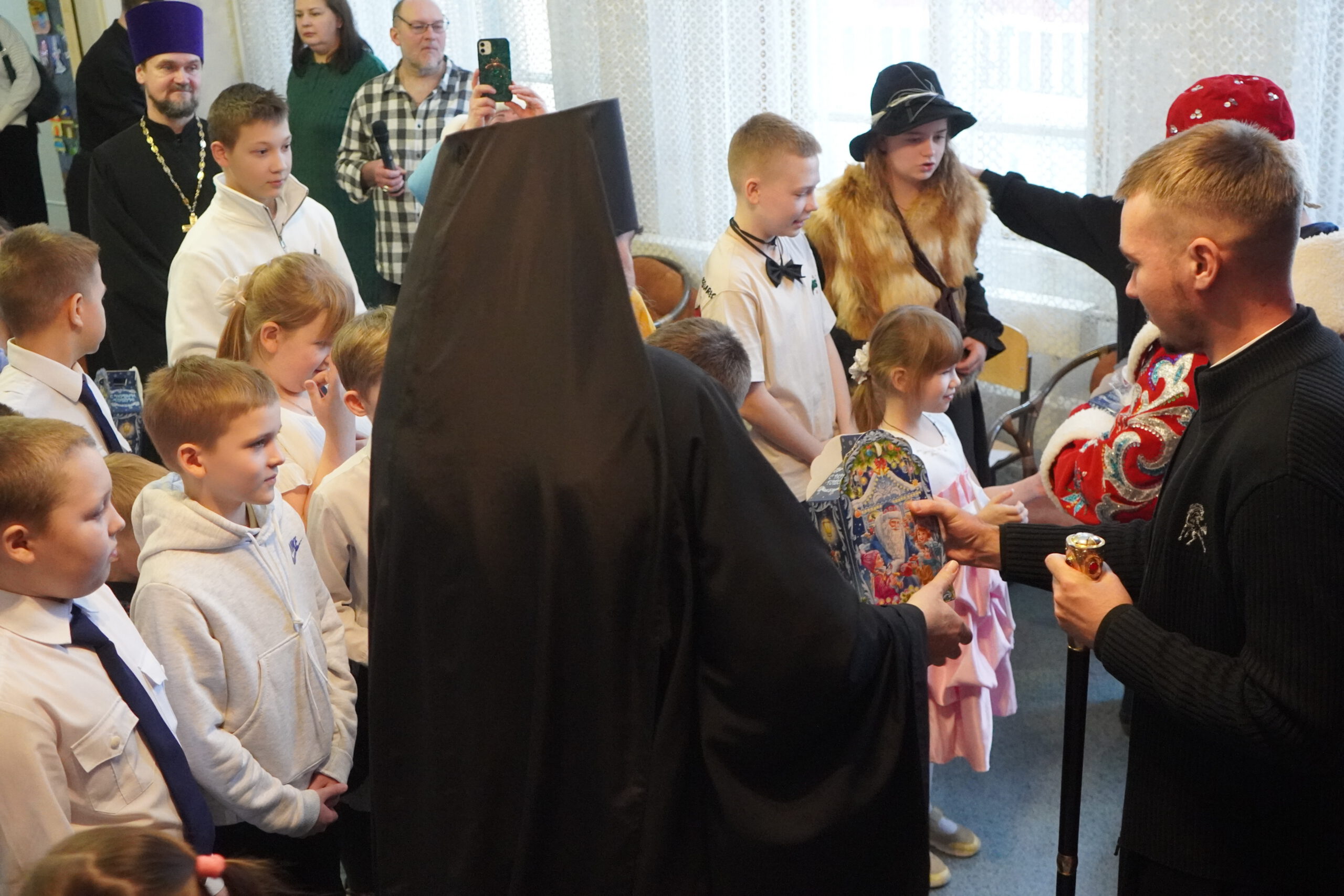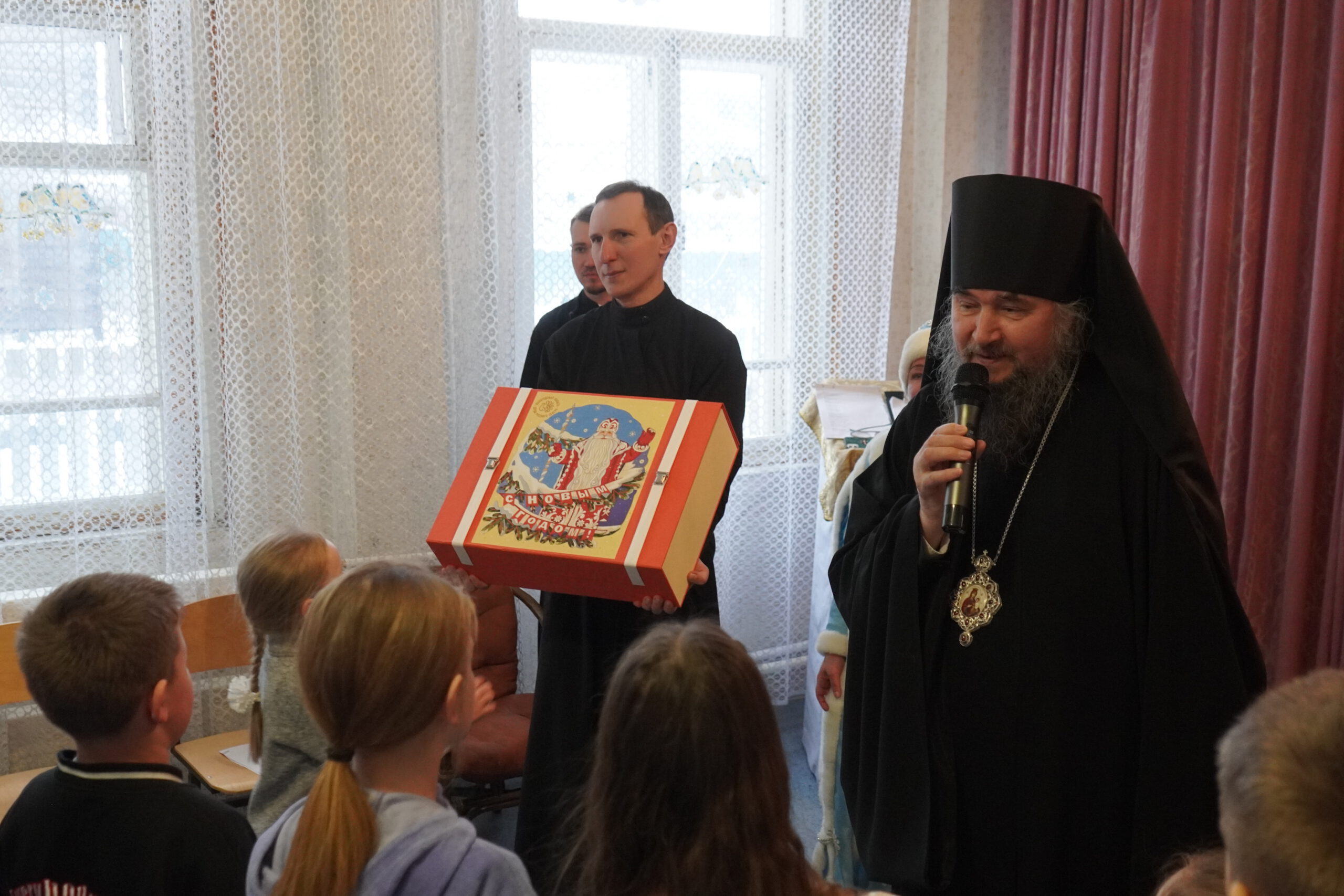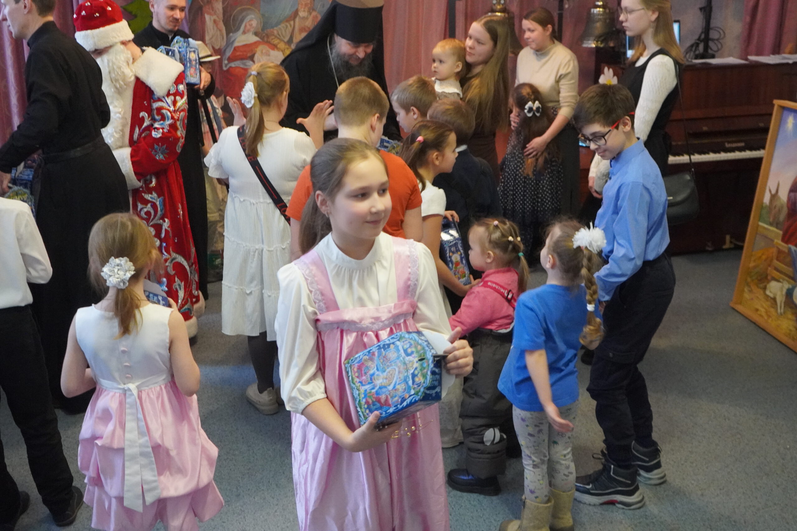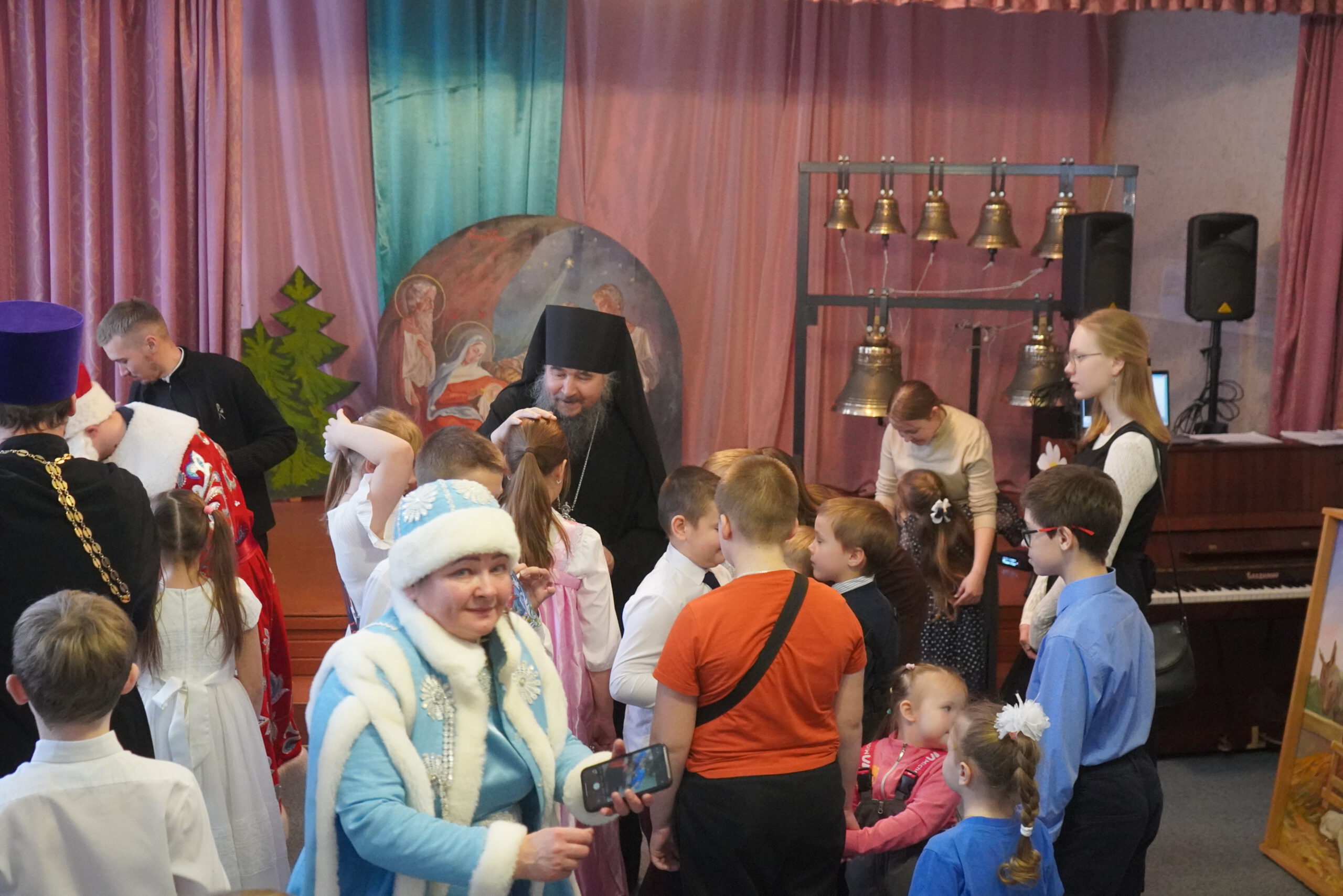 Открыл праздник епископ Великоустюжский и Тотемский Фотий. Владыка поздравил с Рождеством Христовым и благословил всех собравшихся. После чего началось праздничное представление. В поисках Деда Мороза ребята отправились в путешествие по сказкам, где встретились со многими сказочными героями. Представление сопровождалось песнями и танцами. Завершился рождественский праздник хороводом у ёлочки и раздачей подарков.