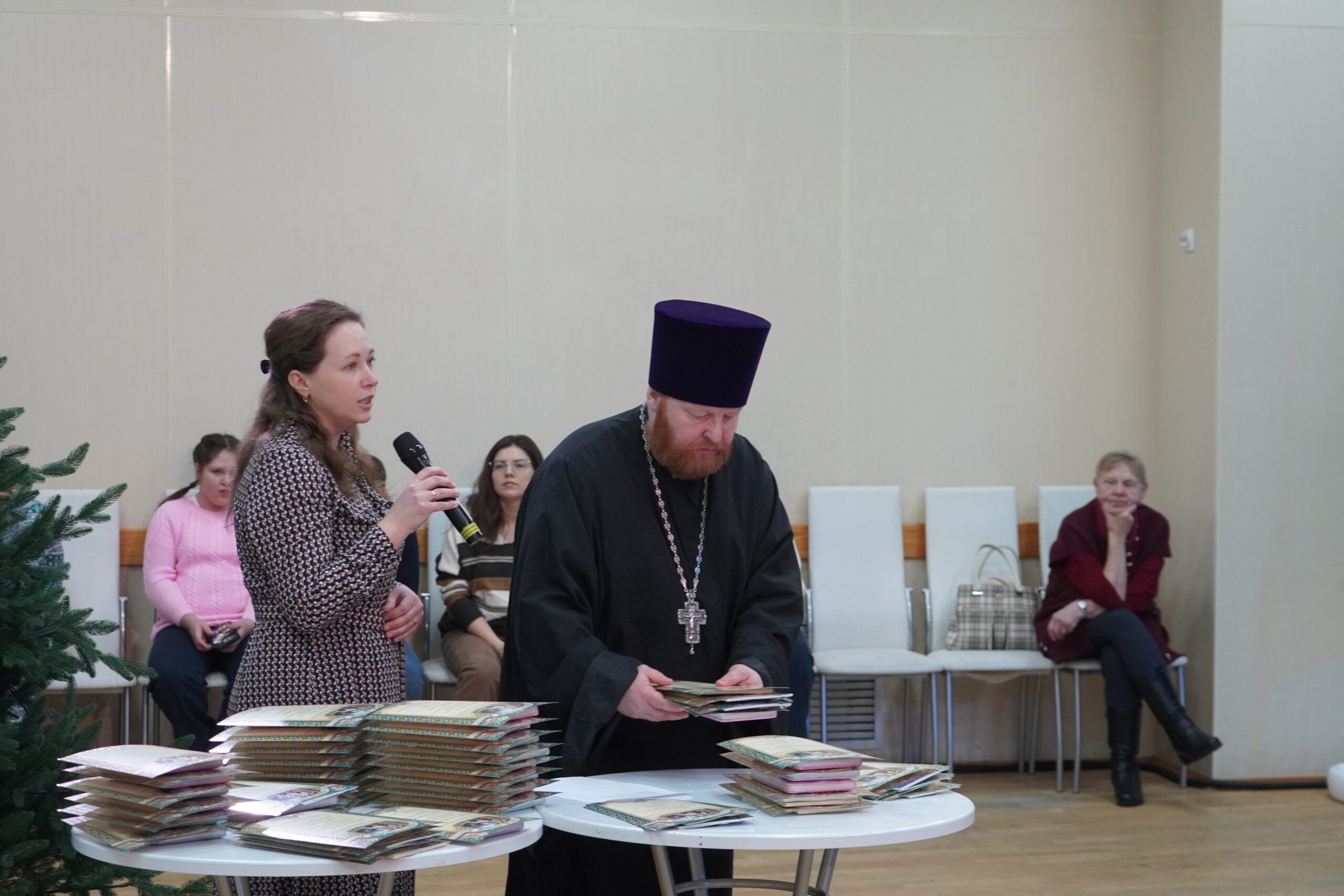 9 января перед гала-концертом фестиваля «Вифлеемская звезда» в Великоустюгском Культурно-Досуговом центре состоялось награждение победителей епархиального творческого конкурса «Свет Рождества Христова». В числе победителей — около сорока ребят из всех благочиний Великоустюжской епархии. По благословению епископа Великоустюжского и Тотемского Фотия награды юным художникам и мастерам декоративно-прикладного творчества вручил благочинный Великоустюгского округа протоиерей Дмитрий Фомин.