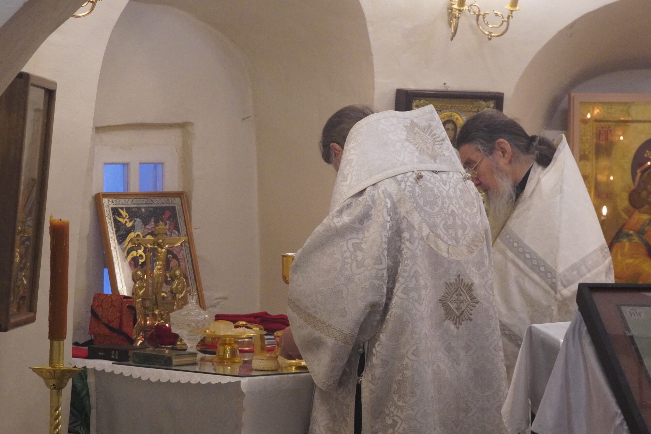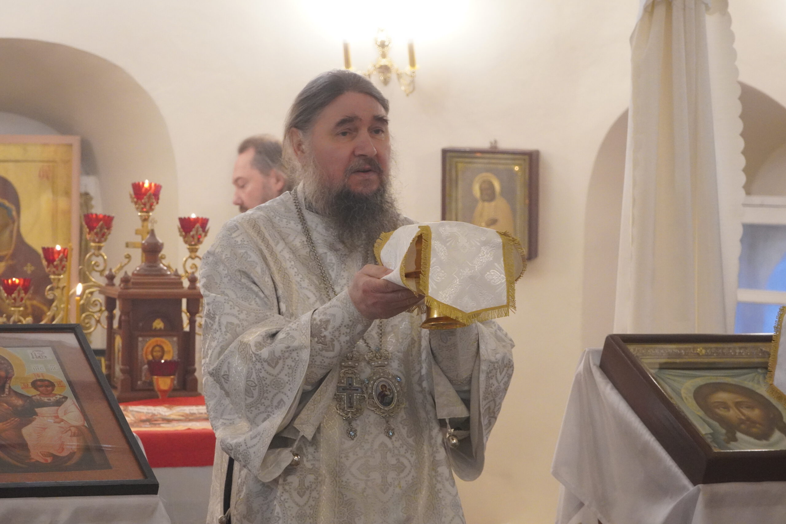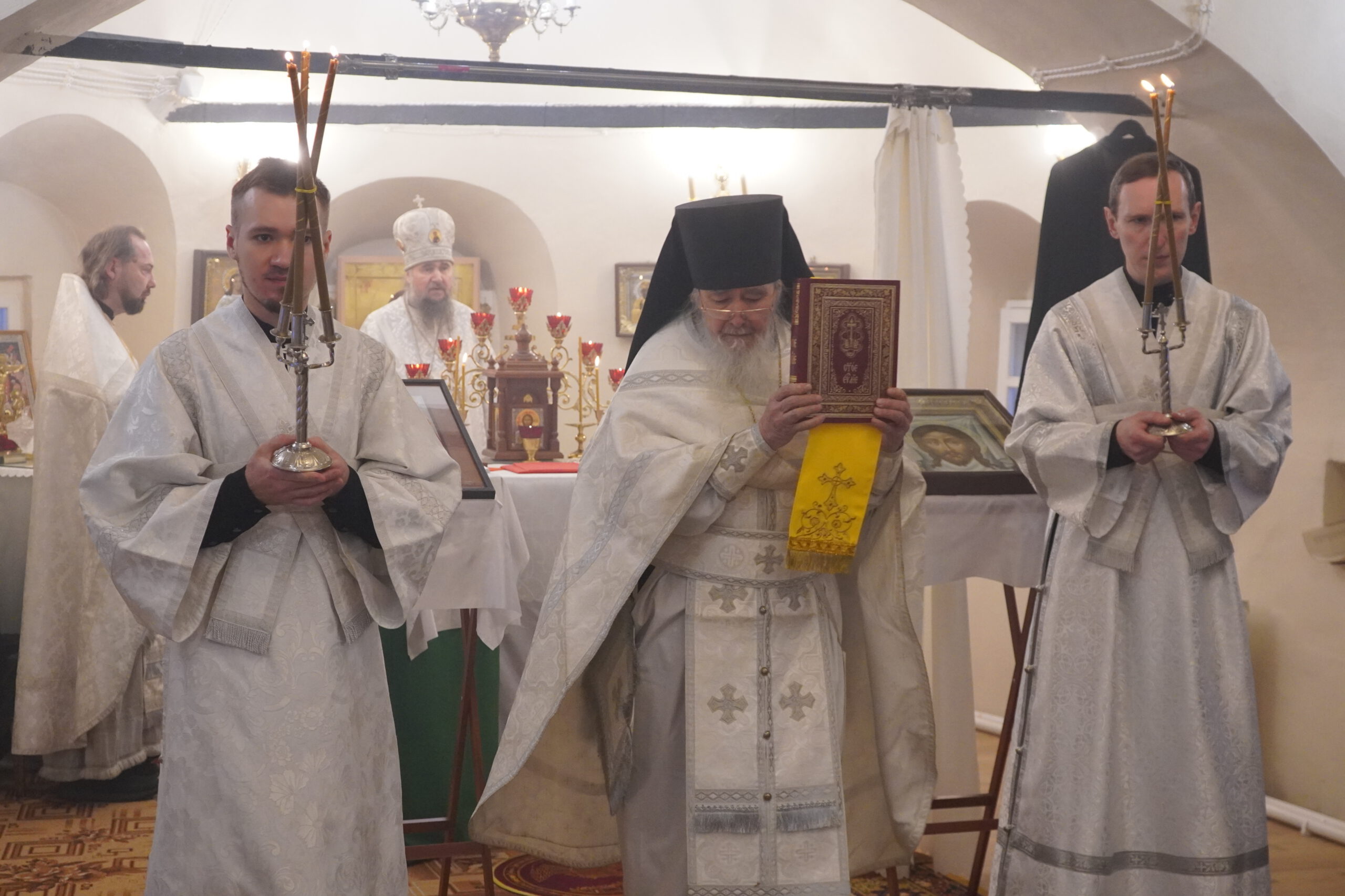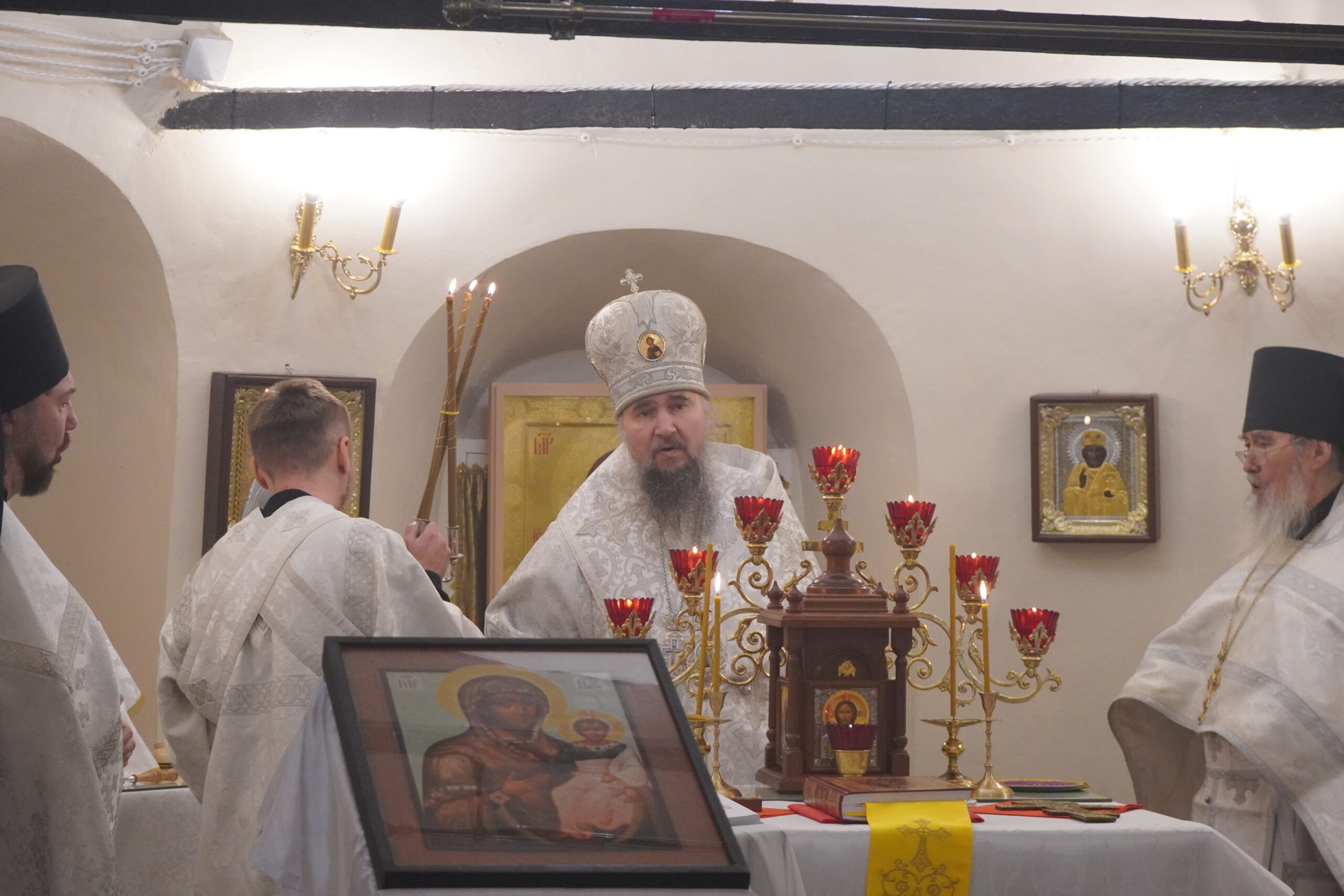 Владыке сослужили: настоятель Михайло-Архангельского монастыря иеромонах Иоаким(Угдужеков), а также клирик Стефановского храма иеромонах Леонид(Конев).