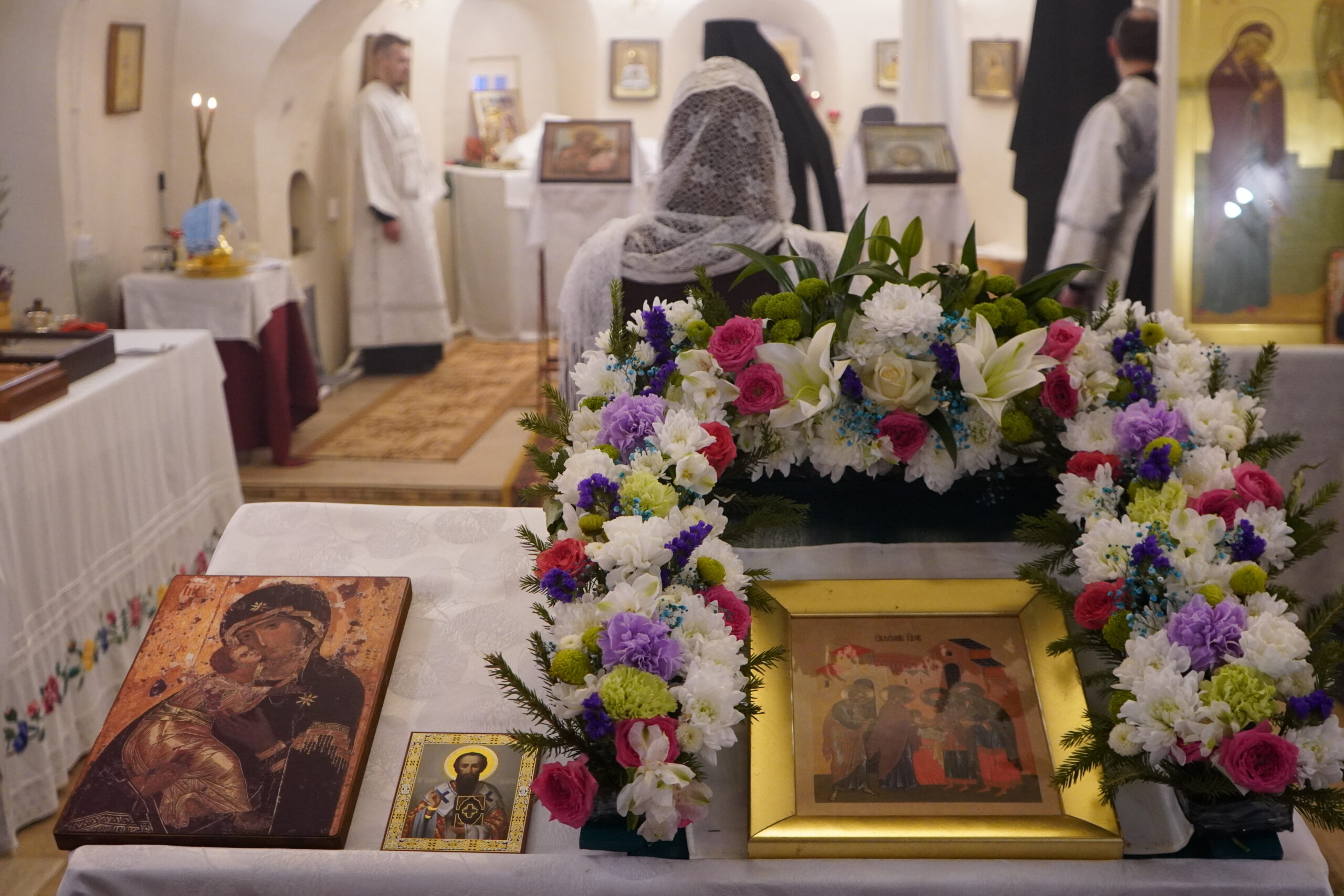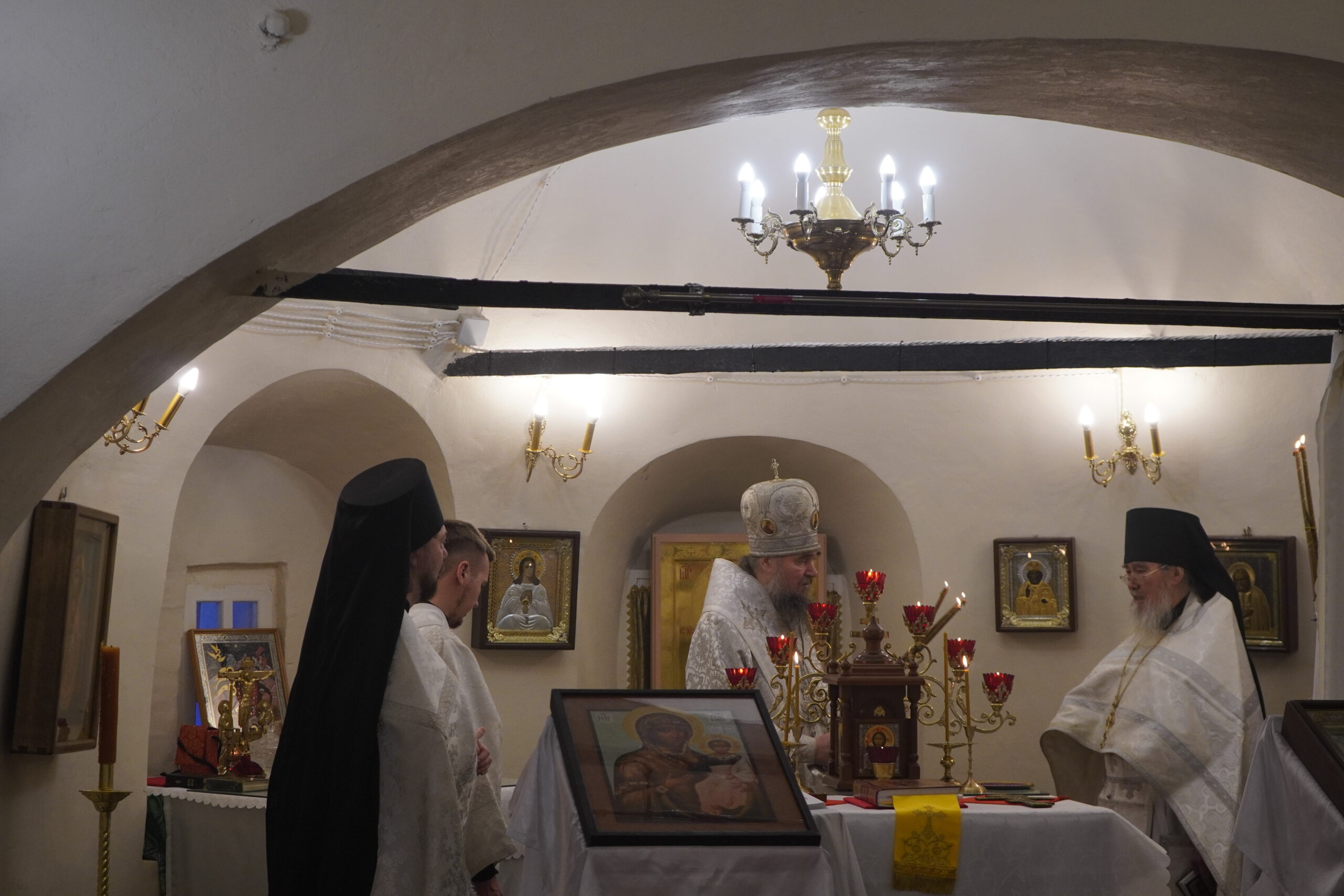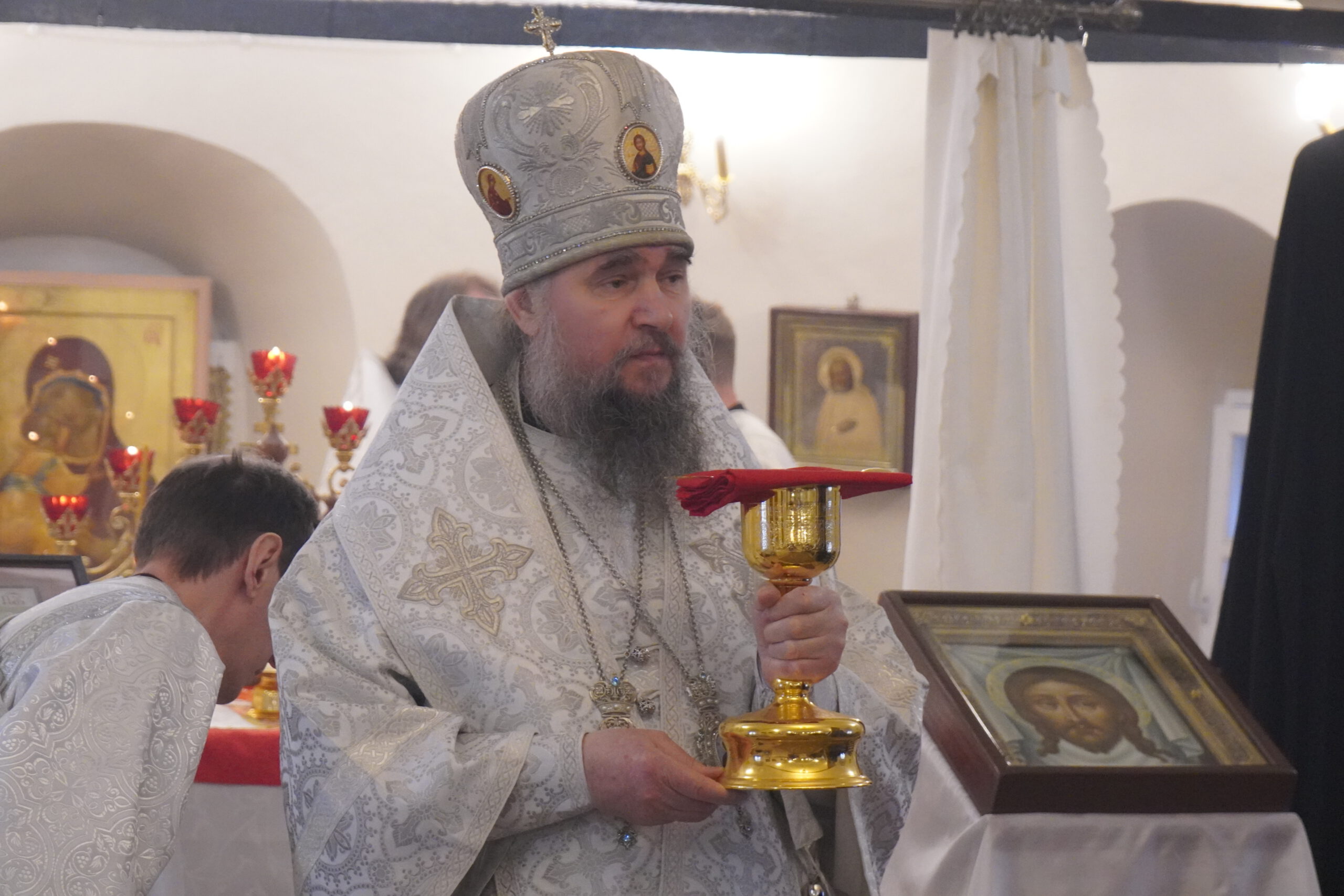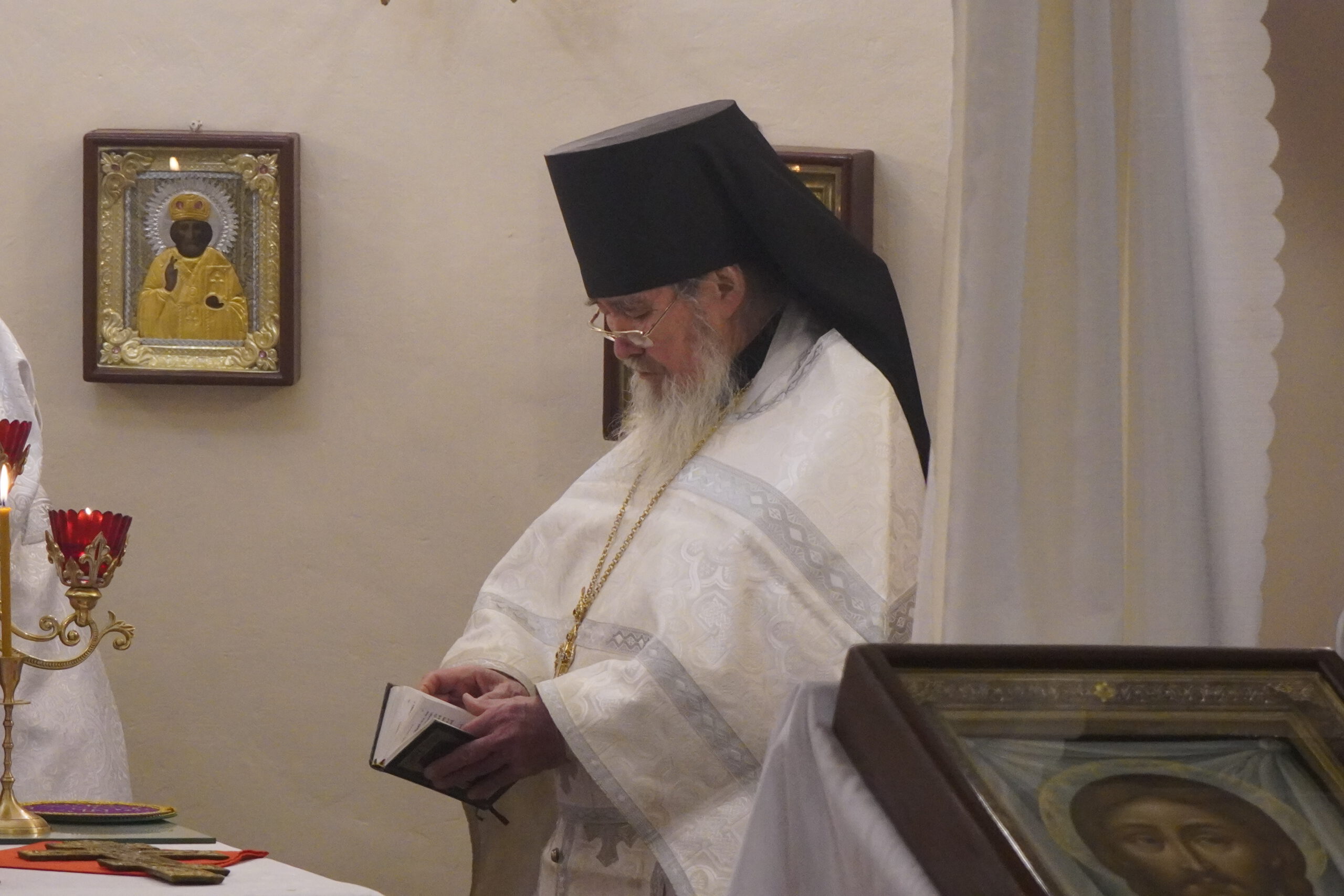 Владыке сослужили: настоятель Михайло-Архангельского монастыря иеромонах Иоаким(Угдужеков), а также клирик Стефановского храма иеромонах Леонид(Конев).