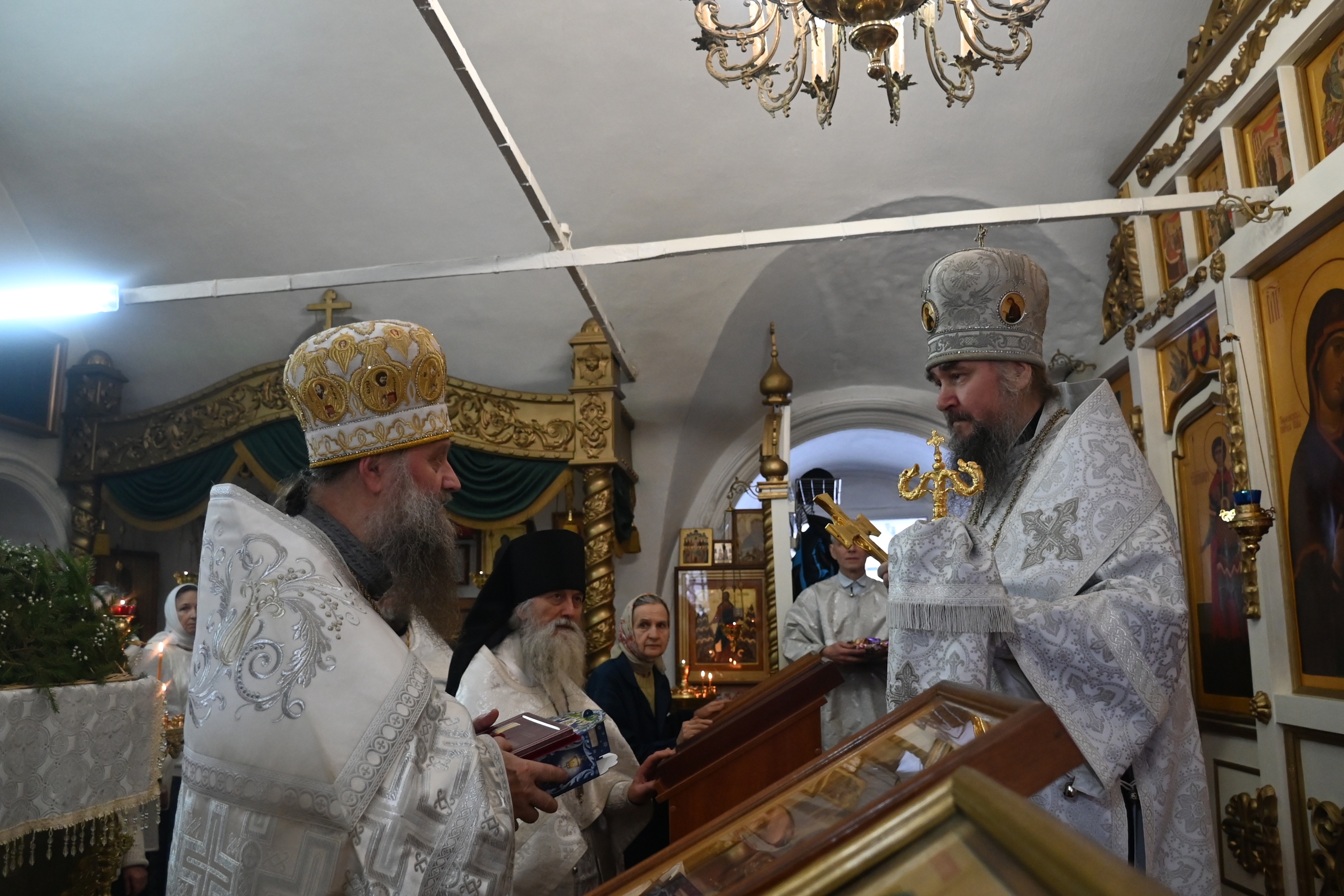 Владыке сослужили: настоятель храма Рождества Христова протоиерей Георгий Титов, настоятель Спасо-Суморина монастыря иеромонах Феодосий (Писарев), благочинный Тарногского округа, настоятель Никольского храма села Тарногский Городок протоиерей Николай Крученых, а также настоятель храма Богоявления Господня села Городищна иерей Александр Чудинов.
