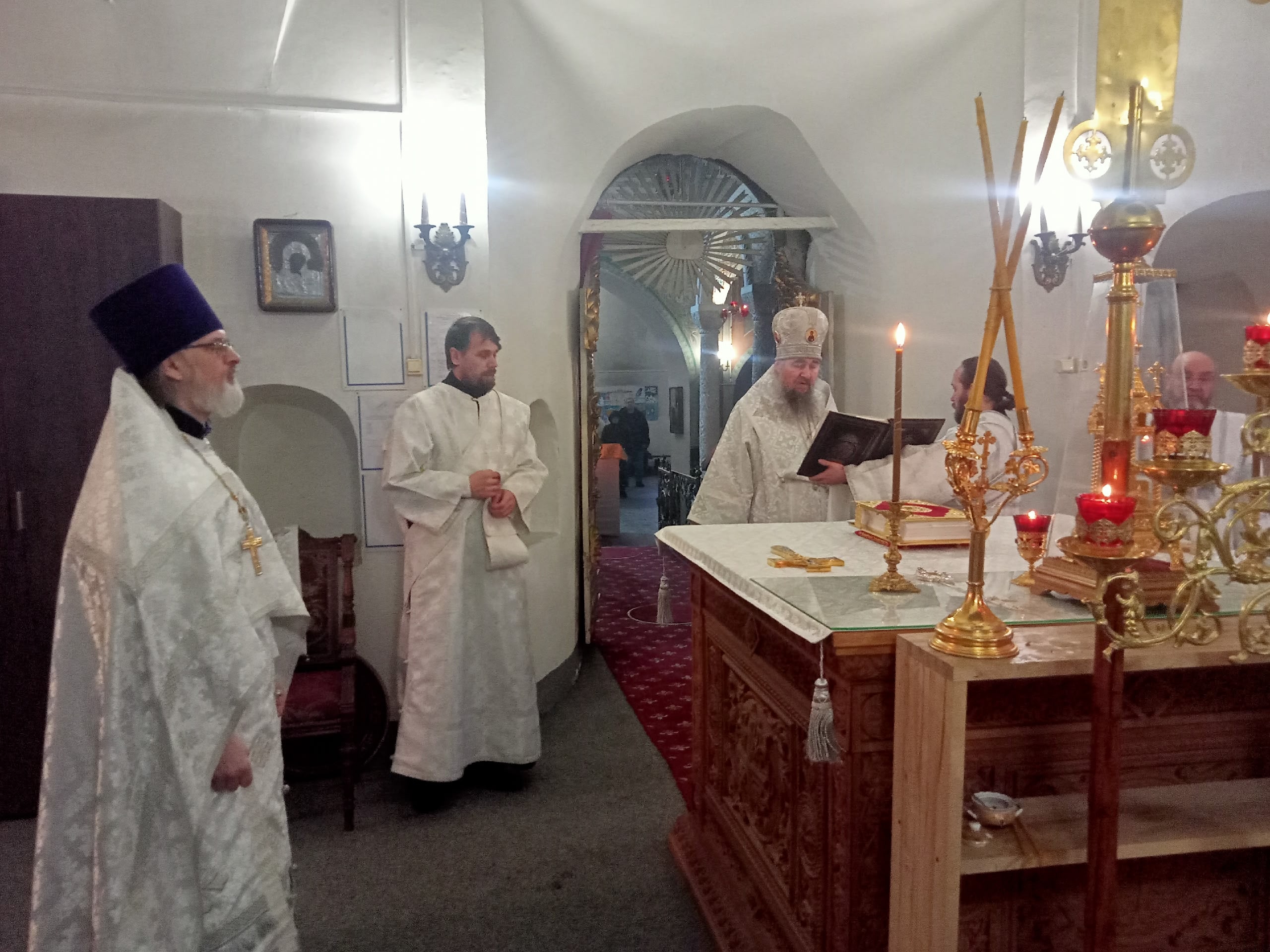 Владыке сослужили: ключарь Прокопьевского собора иерей Вячеслав Бураков, настоятель храма Симона Воломского иерей Дмитрий Живаев, а также диаконы Иоанн Холодилов и Александр Гайкин.