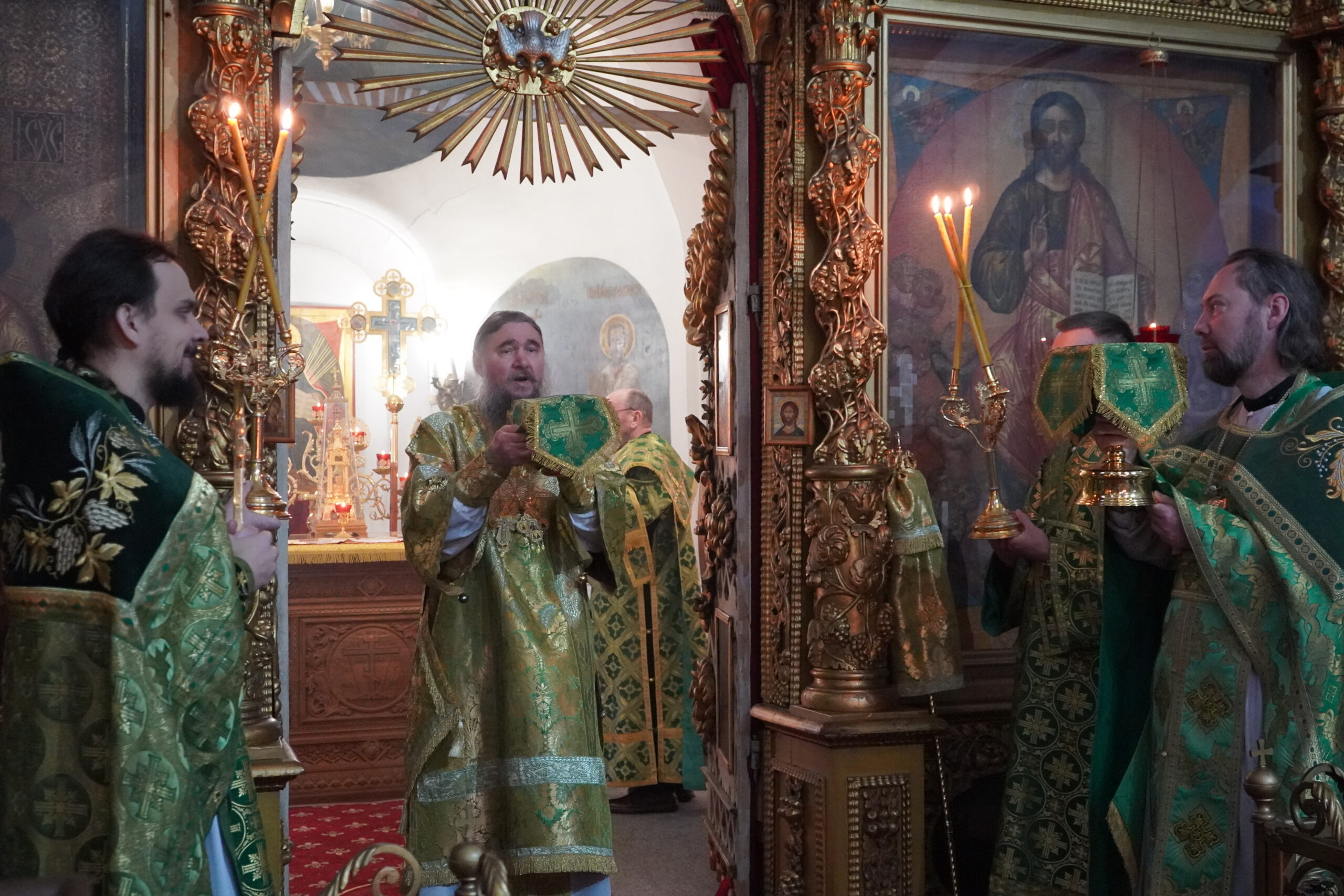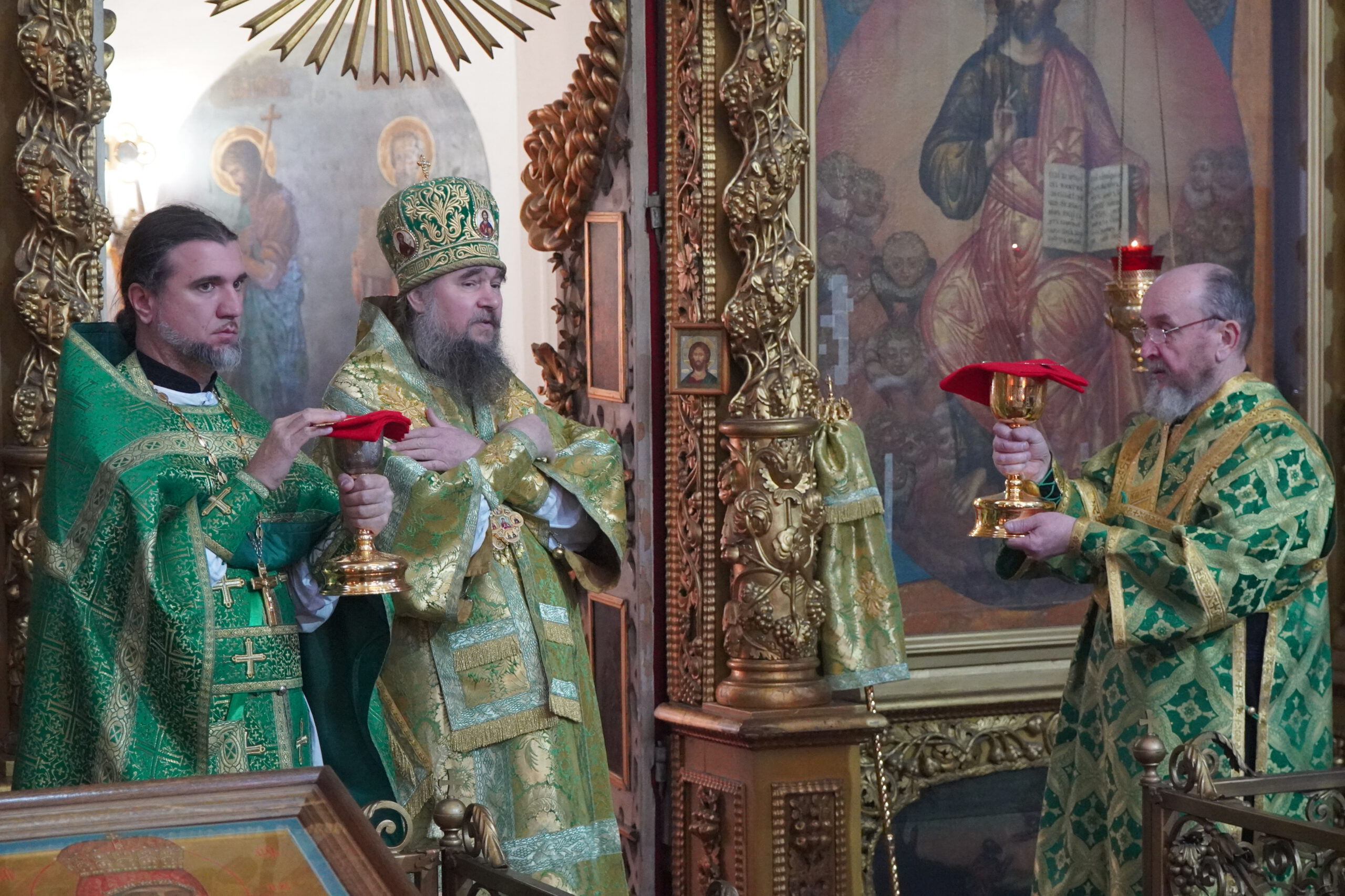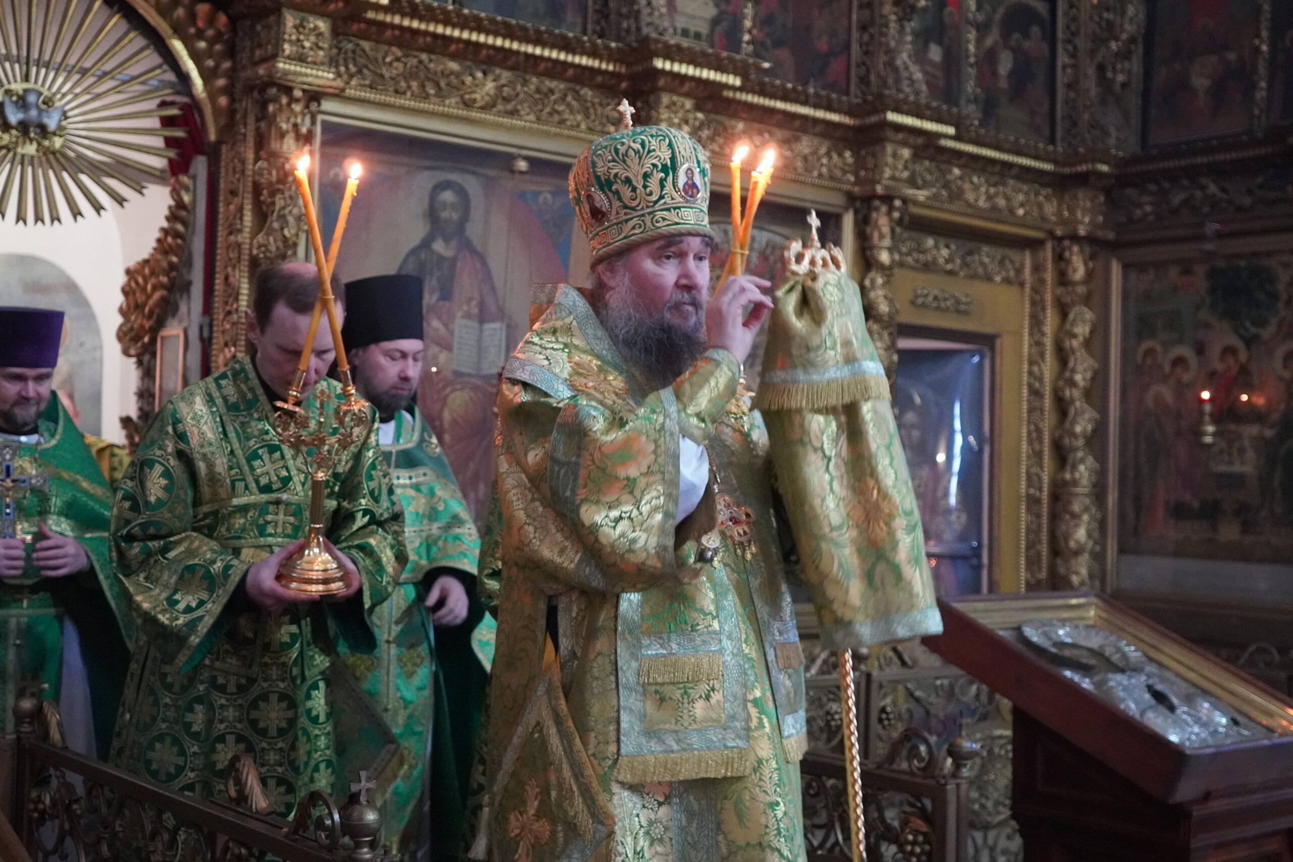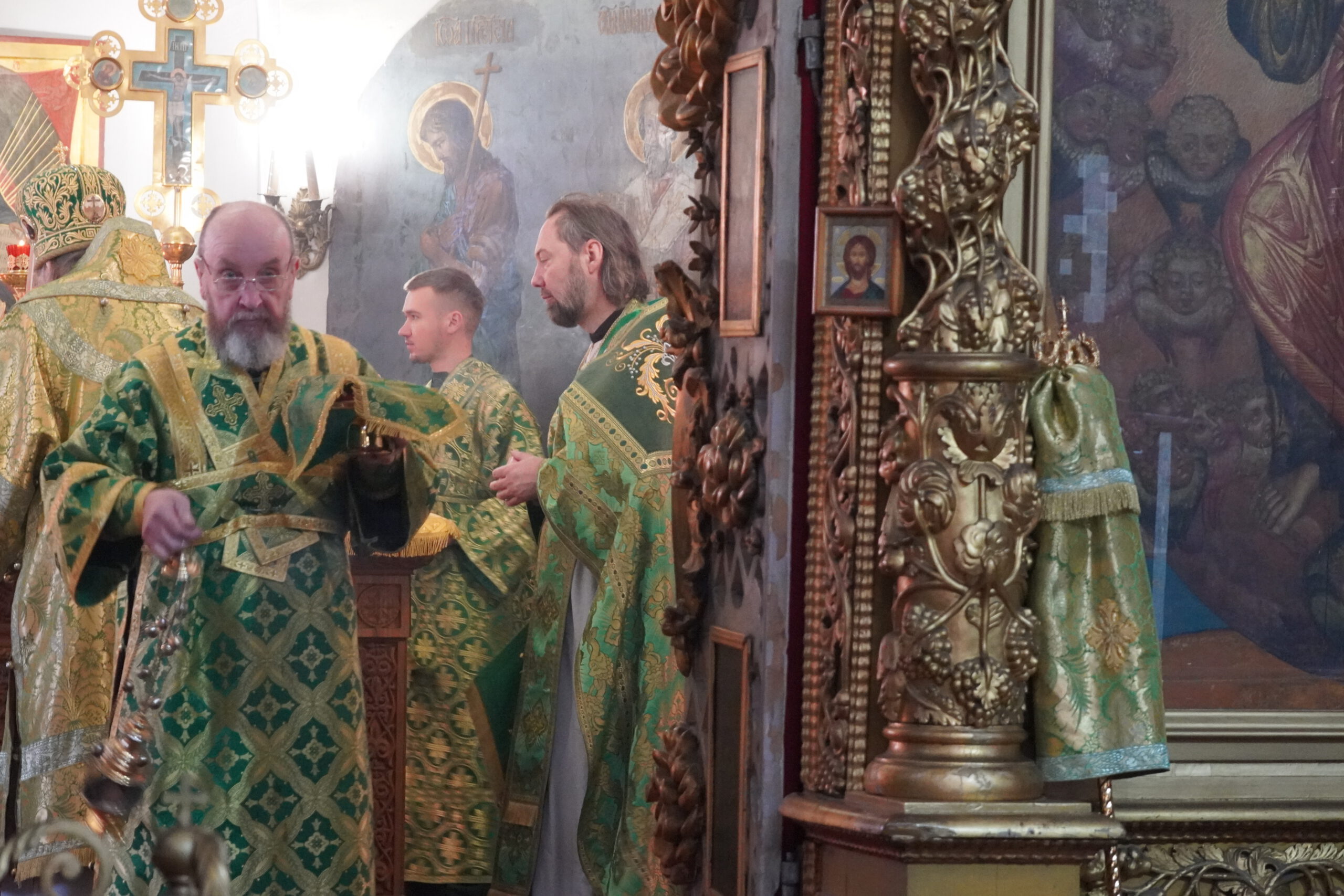 Владыке сослужили: иерей Вячеслав Бураков, ключарь Прокопьевского собора, иеромонах Леонид (Конев), клирик Стефановского храма, иерей Ярослав Ерофеев, настоятель Серафимовского храма в п. Уваровке, Можайского района, иерей Альвиан Тхелидзе, клирик Казанского Собора в Ставрополе, иерей Антоний Пауков, клирик храма Архангела Михаила г. Дно, Псковской области, а также диакон Александр Гайкин.